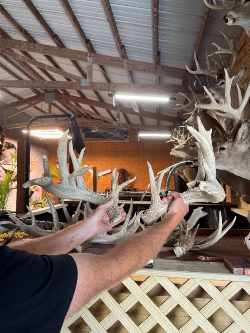 Two aoudad sheep are also part of the high-fenced game population, and all animals will convey with the sale. Prior to the installation of the high fence, the property consistently produced outstanding native whitetail. Most of the mounts and sheds featured in the listing originated on-site, prior to fencing, underscoring the property’s exceptional natural bloodlines.