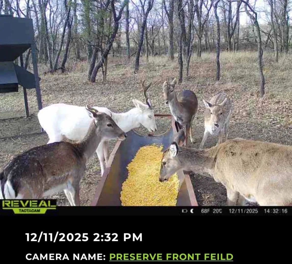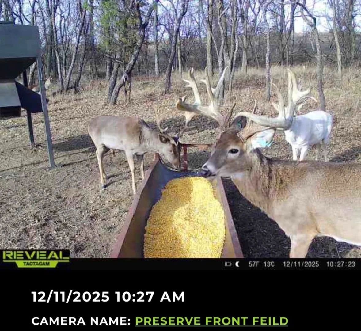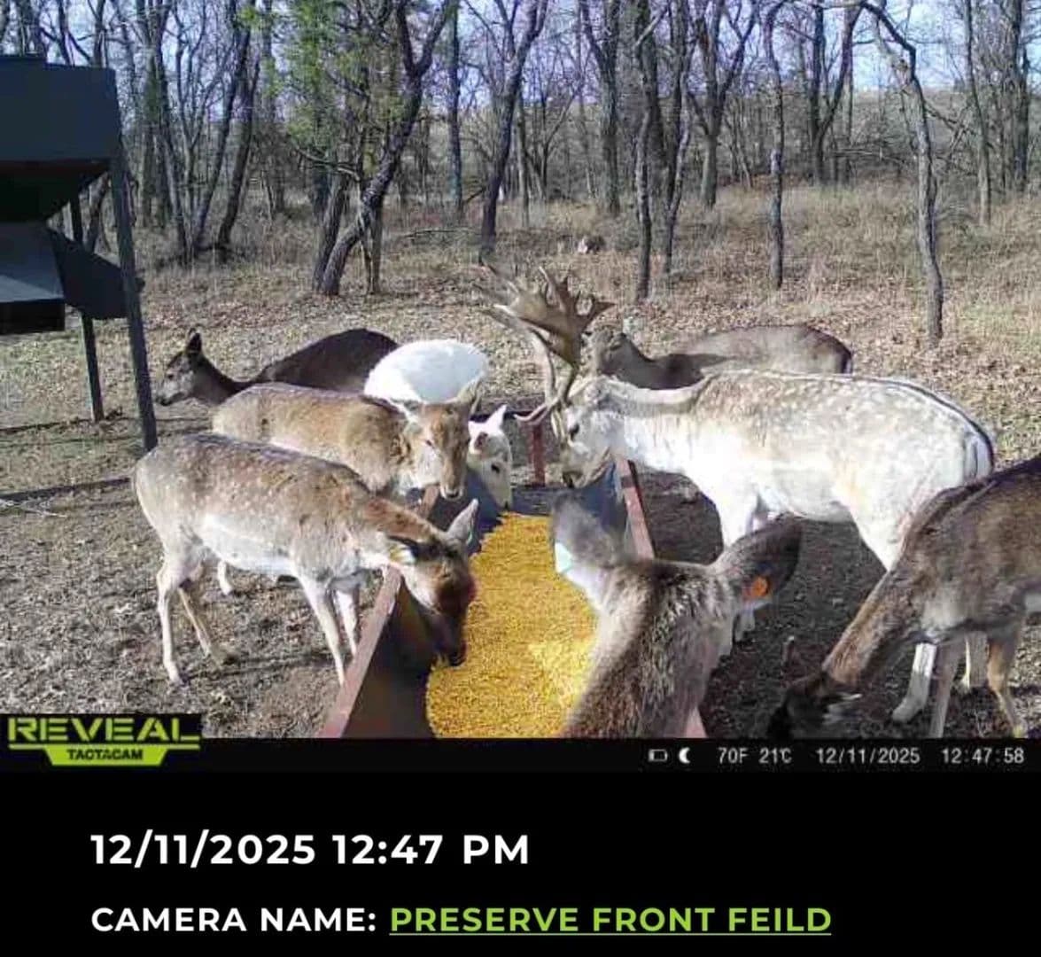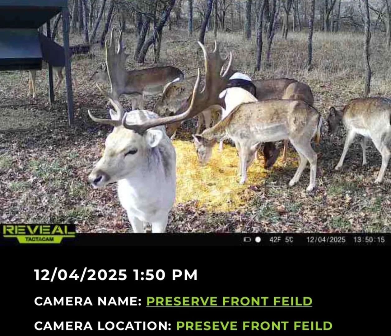 In addition to the exceptional whitetail herd, the preserve includes over 40 mature fallow deer in all three color phases—melanistic, white, and common (tan with white spots). These animals are from award-winning Brad Farmer genetics, a Kansas-based breeder recognized by the North American Deer and Elk Farmers Association.