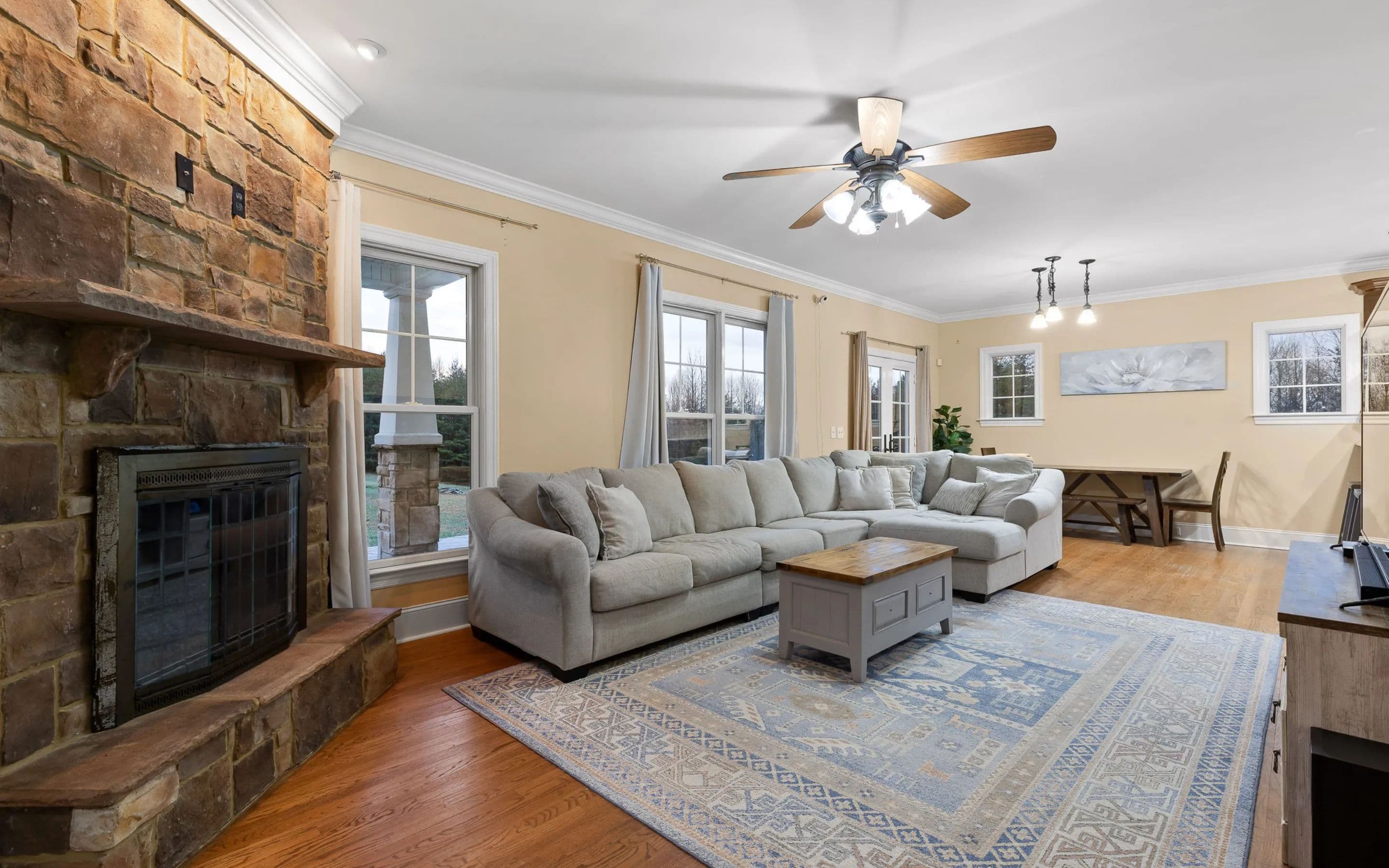 The hilltop home hosts a main level primary suite, hardwood floors, and tall windows that invite natural light and views of the woods beyond. Cozy up by the FIREPLACE in the living area or enjoy the warmth of hardwood floors throughout the home with the convenience of the nearby powder room, laundry closet, and porch walkout. Upstairs, you'll find 3 additional bedrooms and 1 bathroom, ideal for extra living space, HOME OFFICE, or playroom. Serene WRAP AROUND PORCH to take in the stunning landscape and towering trees.