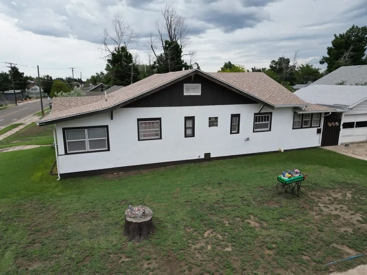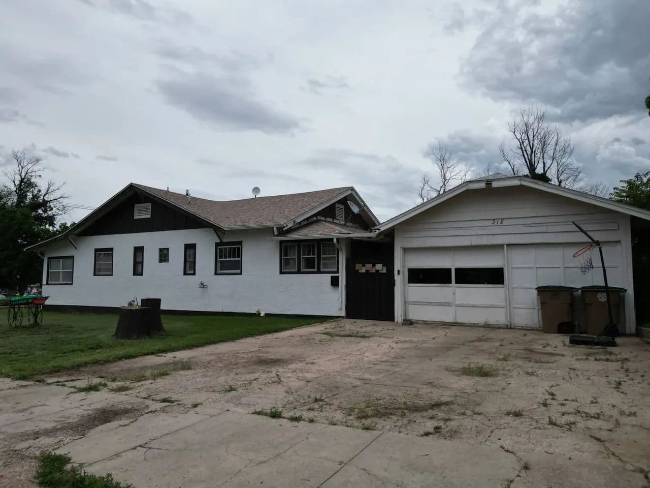 3 bedroom, 2 bathroom home situated on a large open corner lot and a fully fenced backyard with wooden privacy fence. The home is within close proximity to the La Junta City Park, Brick & Tile Park, Arkansas Valley Regional Medical Center, and Valley Wide Health Systems. The front porch welcomes you into the home and would also make a great space to catch jackets, bags, and shoes. Entering into the living room with sprawling vinyl plank flooring, you will find plenty of space for your furniture. Off of the living room, through French Doors, sits the master bedroom with an attached full bathroom. Off of the living room hallway there is a second bedroom and bathroom. The large kitchen includes enough space for a set of table and chairs and also doubles as a wash room. All kitchen appliances stay with the home, including the new washer and dryer, and the new "smart" stainless steel Samsung double door refrigerator with LED screen and water/ice dispenser. Off of the kitchen there is a smaller 3rd bedroom that would also make a nice storage room or office space. Through the back door and covered breezeway you will find the detached 2 car-garage with additional off street parking. This is a great find at this price, schedule your tour today!