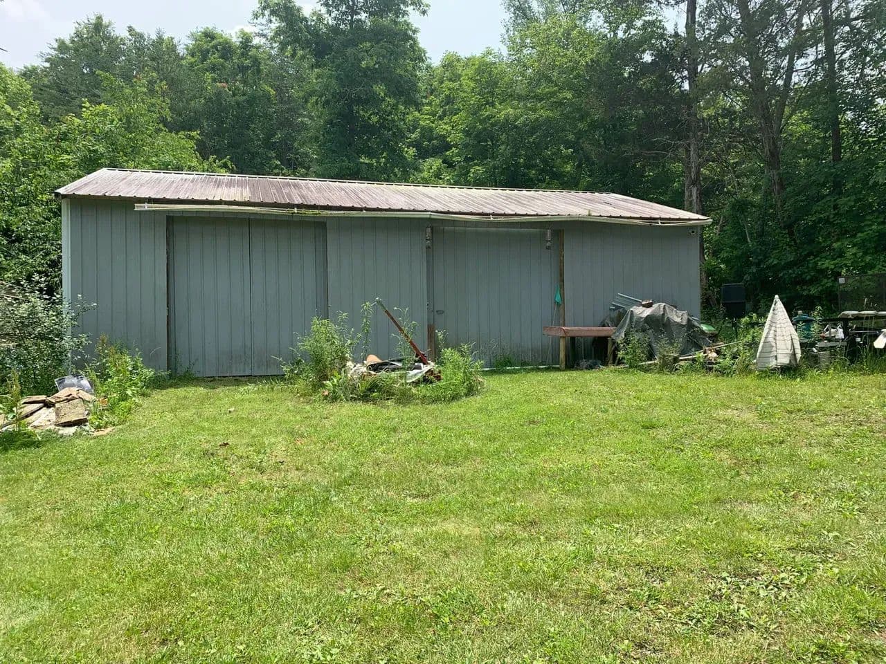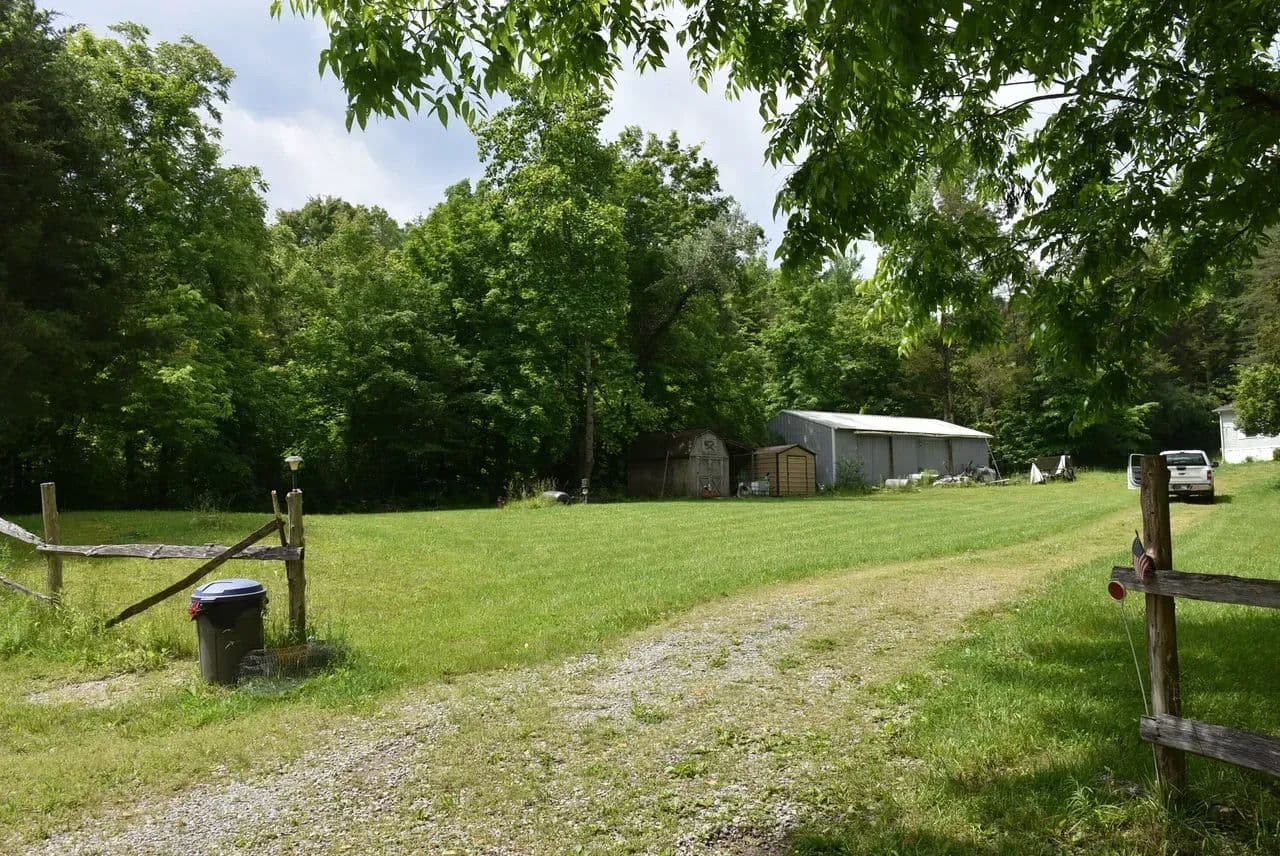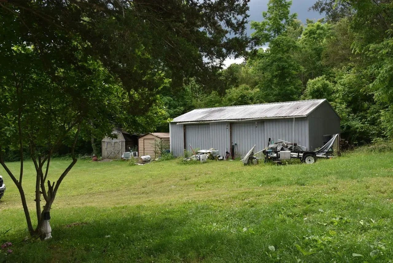 This 31.77 acre tract is the perfect get away and just far enough to have peach and quiet but not too far from shopping and other emenities in Columbia or Edmonton, both of which are less than ten to fifteen minutes away. The property is on both sides of Chestnut Grove Road. The largest tract of woods is behind the house and it would be a great location to lay out a hiking trail through the pine trees and tulip poplar trees. The home was orginally a three bedroom but is currently a two bedroom with two bathrooms. The third bedroom could be easily added back with the addition of a wall and door. There is a new water heater and propane stove. Appliances including washer, dryer, refrigerator are negotiable. You will be able to sit on the front deck every afternnon and a back deck could be easily added onto the rear of the home. The large shaded yard around the house has plenty of room. There is also a nice (approximatly 30 feet x40 feet) metal shed with concrete floor where you could either have a workshop or use for storage. These shed is divided into two rooms. One is well insulated and there is a wood stove inside for heat. The owners are leaving addtional insulation panels so you can insulate the other room. Each room has seperate garage doors for access. The owners are also leaving two work benches, metal storage cabinet, and large air compressor with alternate air tank. There are also two smaller storage sheds.