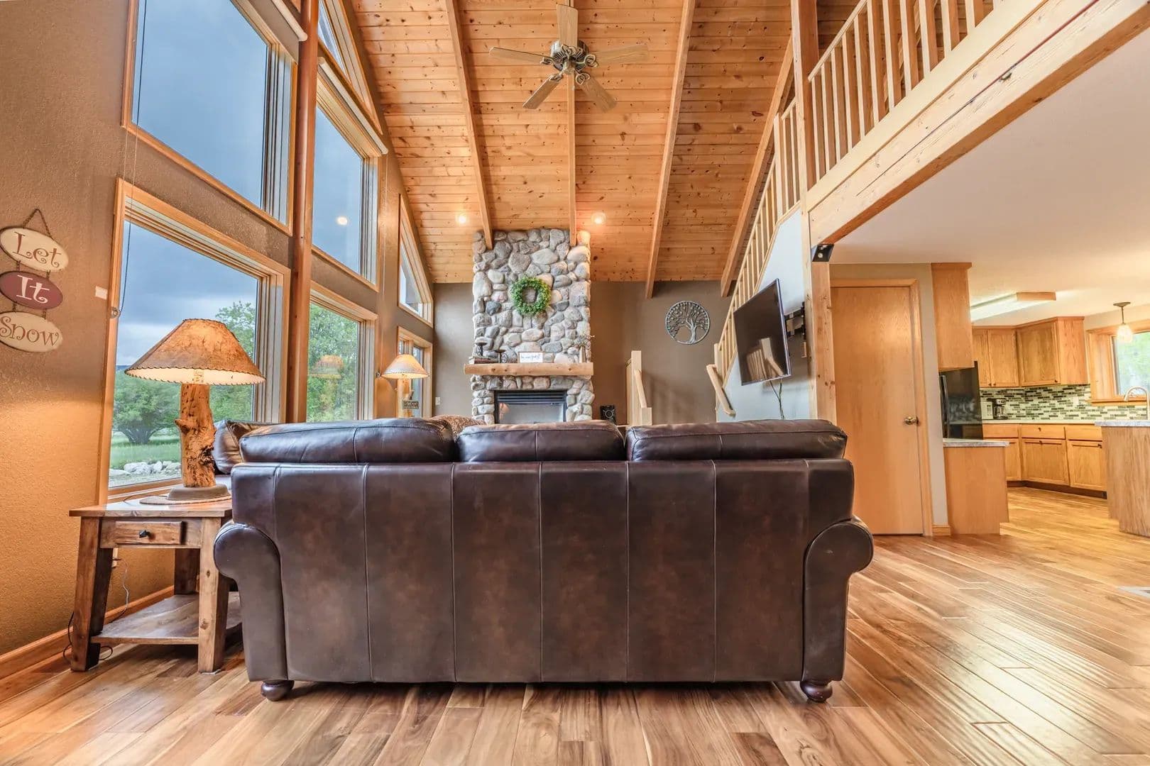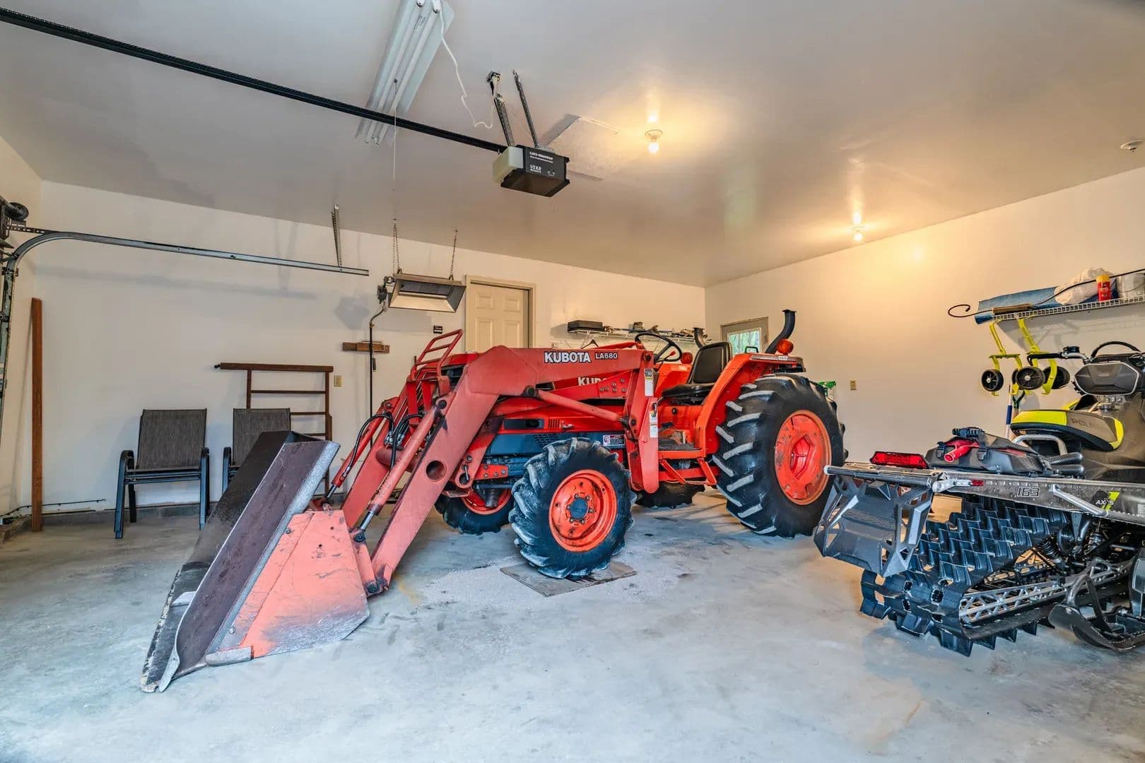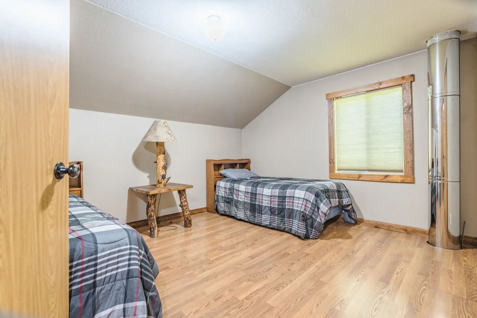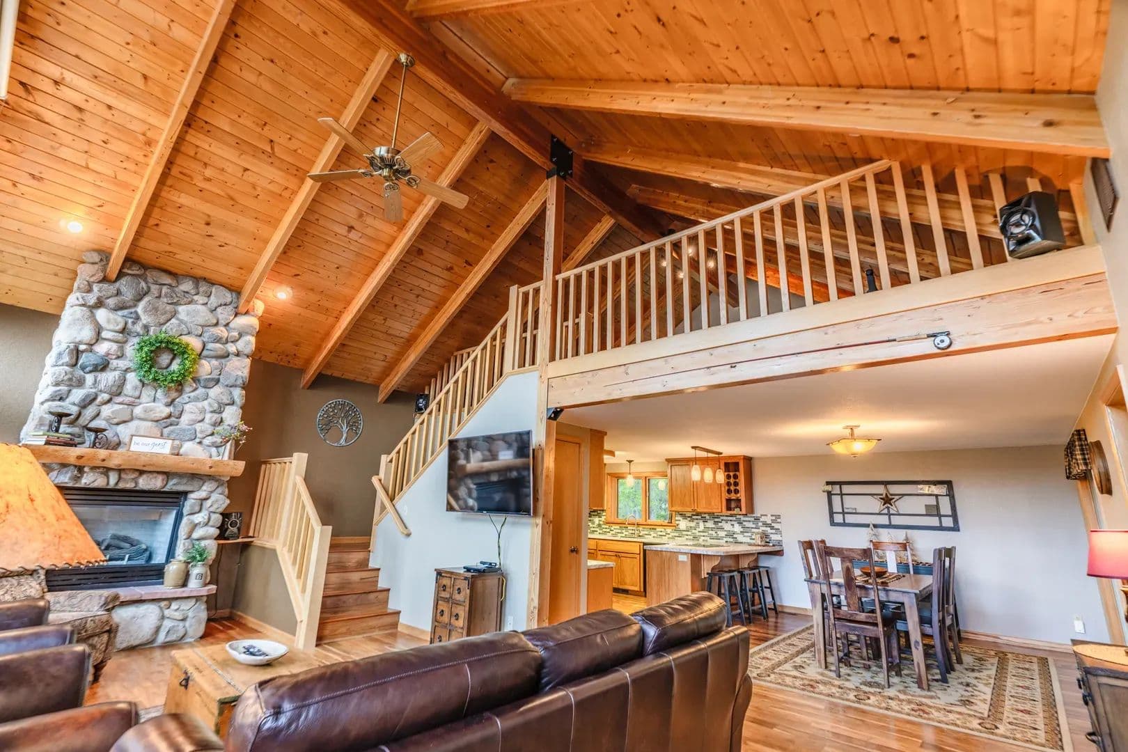 Improvements The inviting home has been thoughtfully renovated. Inside, a striking rock (gas) fireplace warms the open living area where vaulted ceilings and large southern windows provide amazing views and warmth. The main floor features 2 bedrooms for easy living including a master suite, and a spacious loft upstairs is a versatile room that could be used for guests or kids. Gleaming hardwood floors flow throughout. An attached 2-car garage is convenient for winter months, while the additional fully insulated 40’x40′ detached garage, with shop space adds exceptional value! All furniture is included, making this property MOVE-IN READY for the next owner!