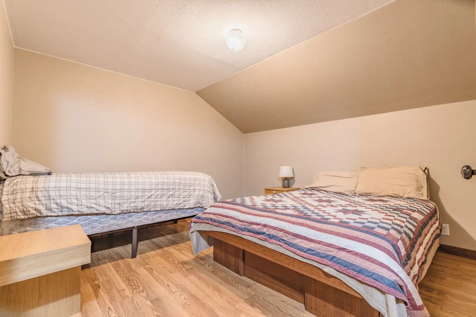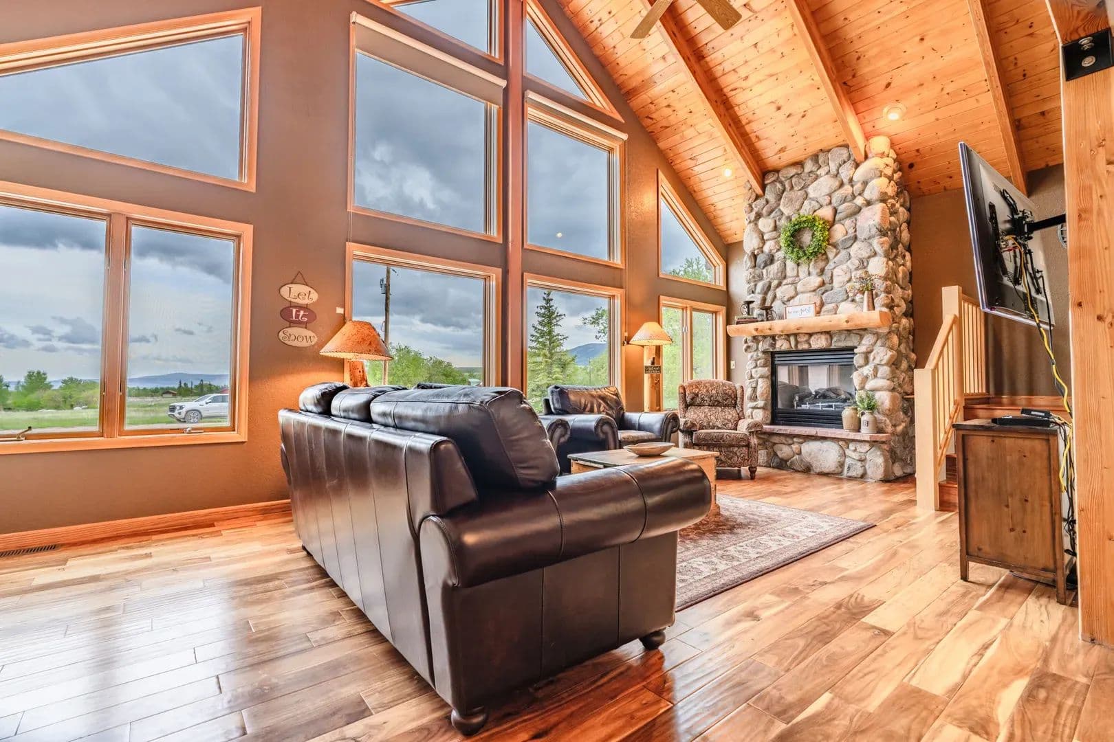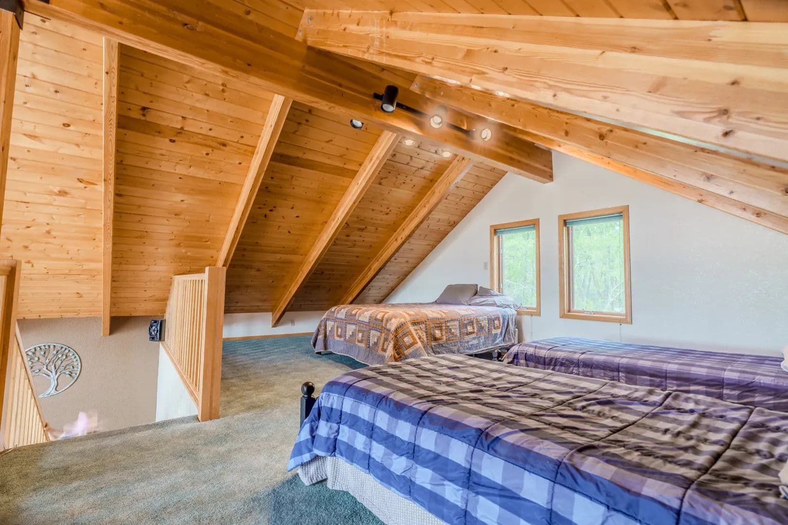 Improvements The inviting home has been thoughtfully renovated. Inside, a striking rock (gas) fireplace warms the open living area where vaulted ceilings and large southern windows provide amazing views and warmth. The main floor features 2 bedrooms for easy living including a master suite, and a spacious loft upstairs is a versatile room that could be used for guests or kids. Gleaming hardwood floors flow throughout. An attached 2-car garage is convenient for winter months, while the additional fully insulated 40’x40′ detached garage, with shop space adds exceptional value! All furniture is included, making this property MOVE-IN READY for the next owner!