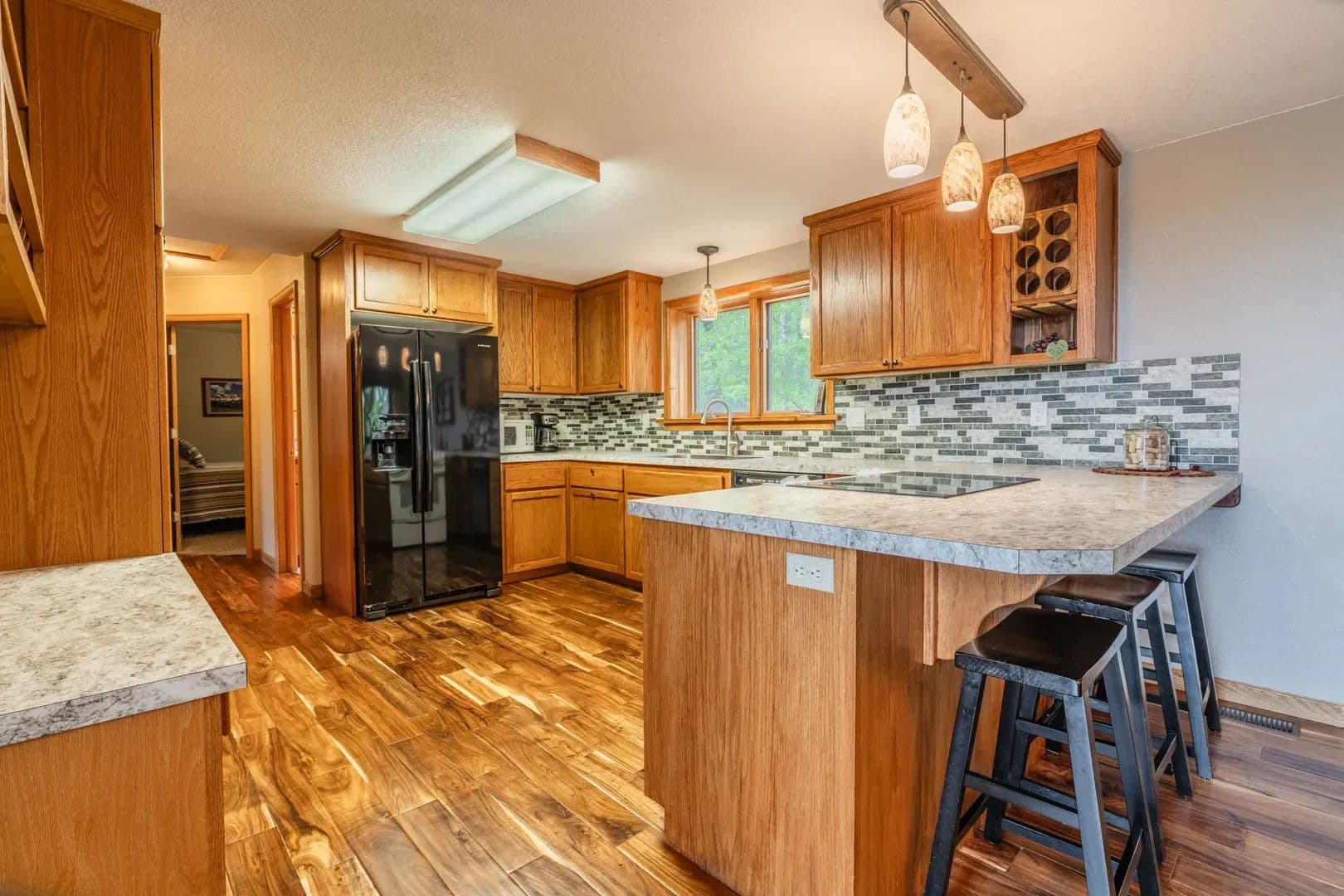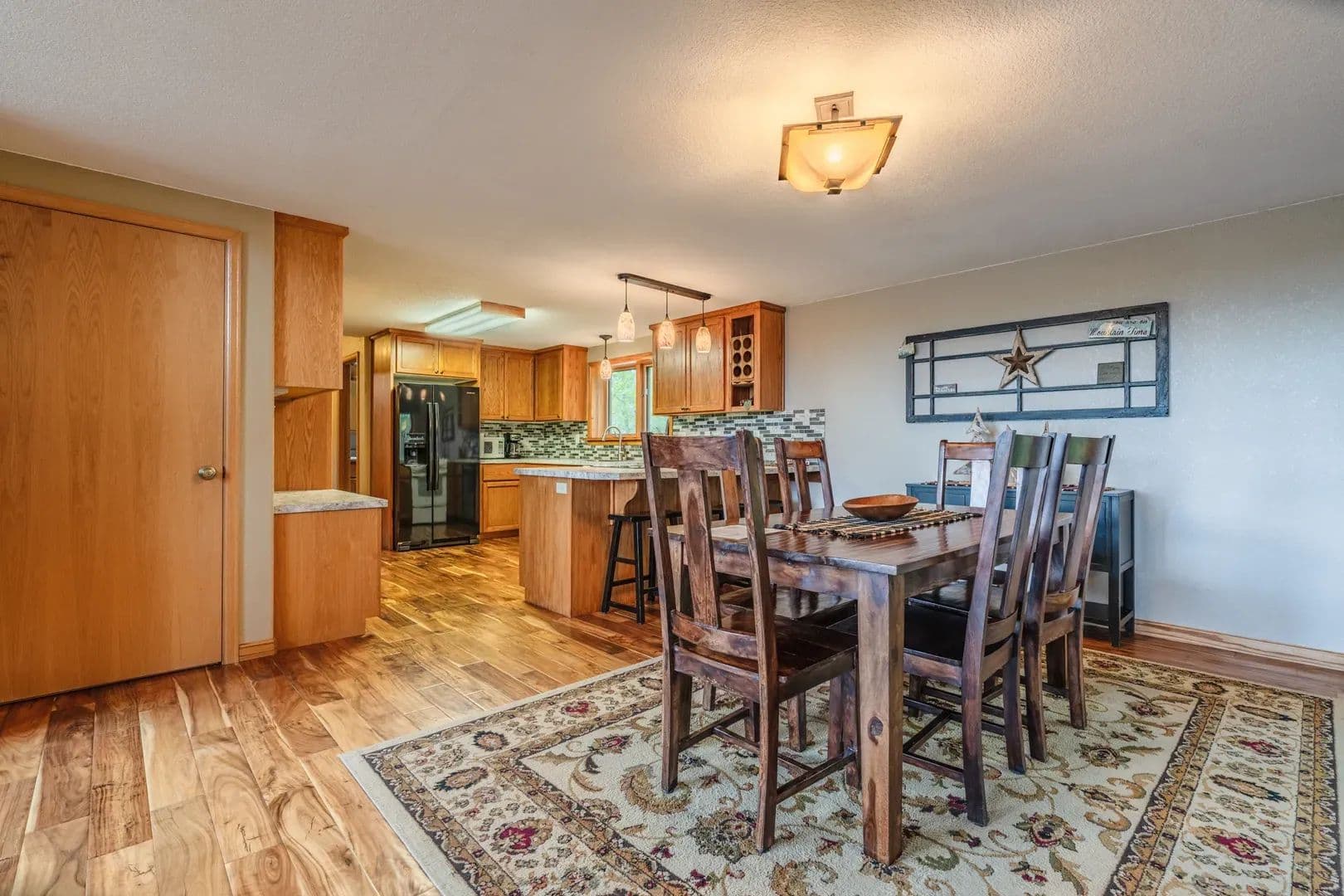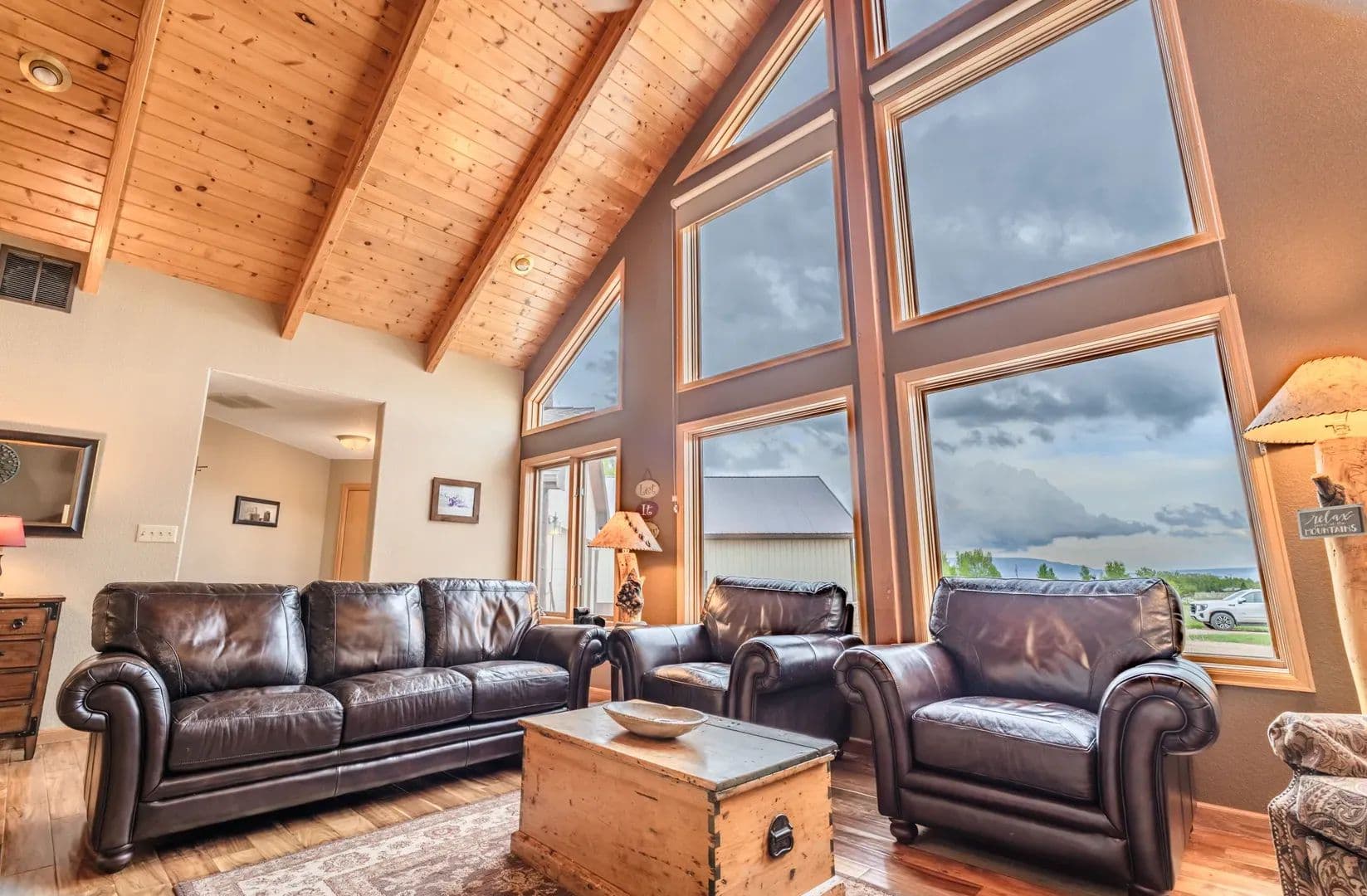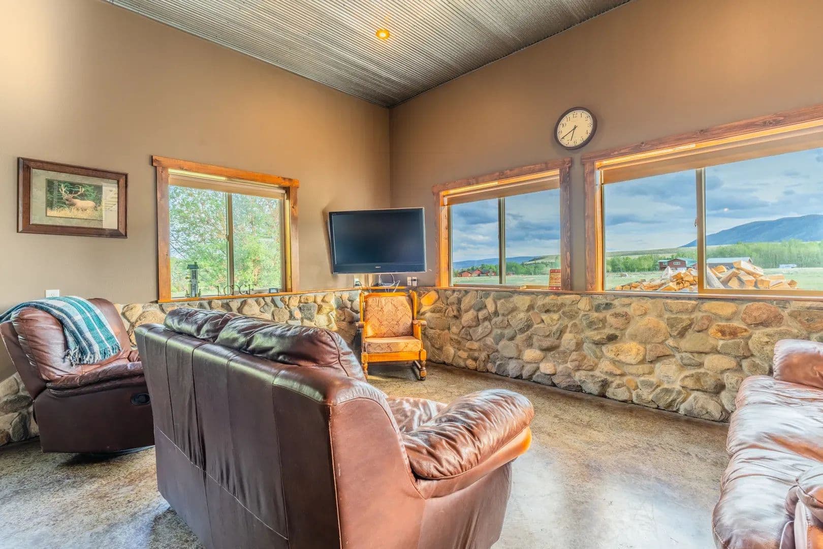 Improvements The inviting home has been thoughtfully renovated. Inside, a striking rock (gas) fireplace warms the open living area where vaulted ceilings and large southern windows provide amazing views and warmth. The main floor features 2 bedrooms for easy living including a master suite, and a spacious loft upstairs is a versatile room that could be used for guests or kids. Gleaming hardwood floors flow throughout. An attached 2-car garage is convenient for winter months, while the additional fully insulated 40’x40′ detached garage, with shop space adds exceptional value! All furniture is included, making this property MOVE-IN READY for the next owner!