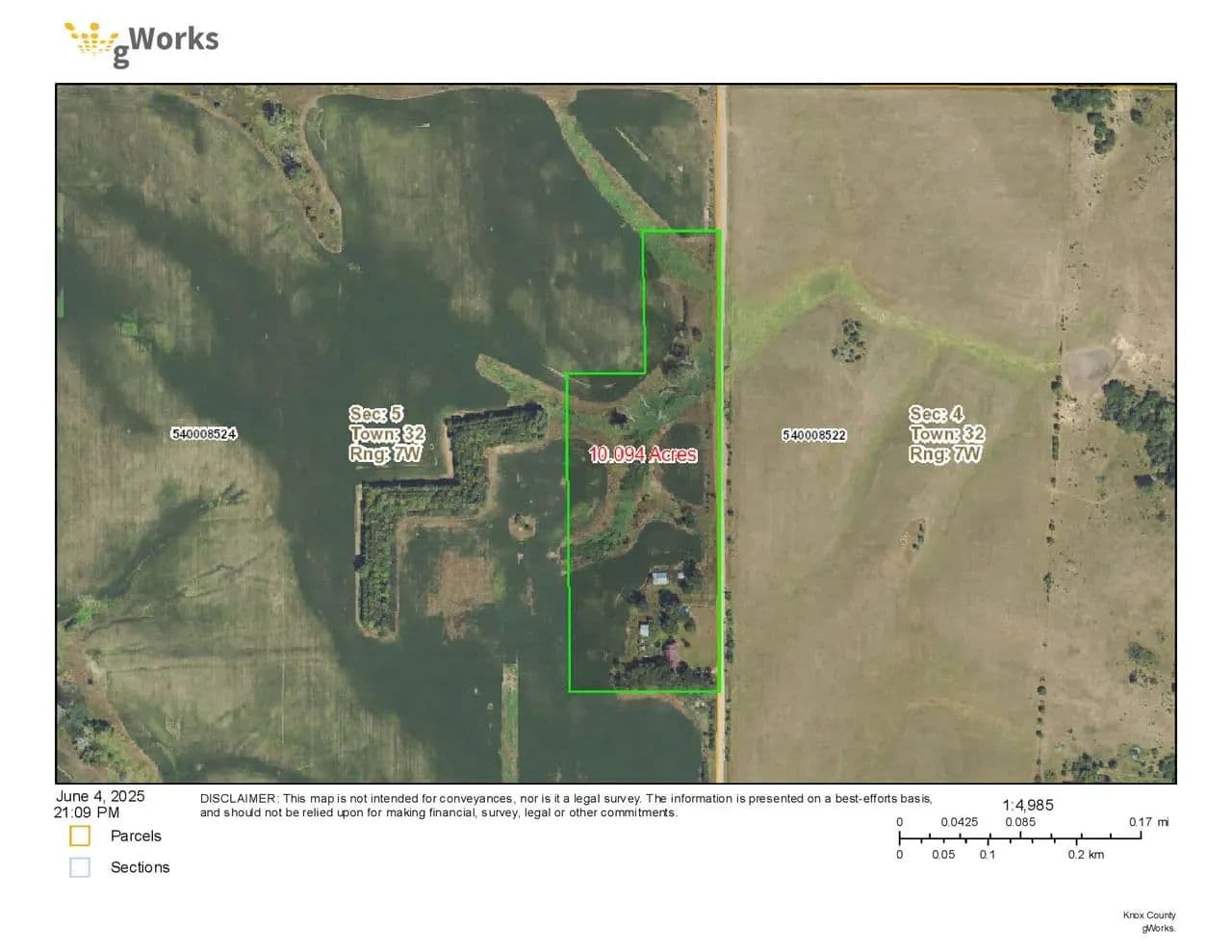 Acreage for Sale89331 518 Ave., Niobrara, NE Description: This acreage is all about location! This is a 10.01 acre property (subject to completion of survey) conveniently situated approximately 4 miles south of the Missouri River (Lazy River Acres) and 4 miles north of the Niobrara River. The land lies up in the hills overlooking the Missouri River Valley and safely up away from the flood plain issues many have dealt with down on the river bottom. Improvements include an older 1 1/2 story farmhouse in need of updates along with an older wood framed barn, garage, and livestock buildings. The property has electrical service onsite and access to a recently updated well. The house could be renovated into a river area cabin or the buyer may wish to build their dream shouse, camper/RV site, or boat storage shed. Finding 10 acres in this area close to the river and nearby public boat dock is extremely difficult. Call for more details! Directions: From Verdel, NE: Go East on Hwy 12 for 2 miles to 518 Ave. (Lazy River Acres Corner), then follow 518 Ave. approximately 2 1/2 miles south Taxes: To Be Determined- Part of Tax Parcel #540008524