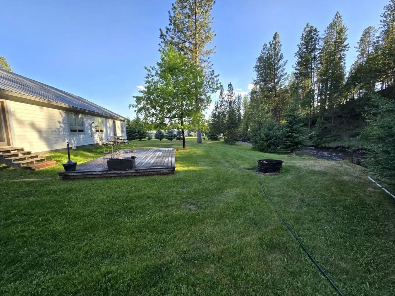 This 2.41 acres finds year-round Trail Creek out your backdoor, complemented by a fire pit and covered porch. The 2,720 sq ft single-family, one level home has 3 bedrooms (2 non-conforming) and 2.5 bathrooms. Built in 2005, it features a large open-concept kitchen, dining, and living area, perfect for entertaining. The expansive primary bedroom includes an ensuite bathroom with a footed tub and separate tiled shower. Additional amenities include a detached, partially insulated garage with covered lean-tos and a versatile separate studio. There is plenty of room to add a shop for all your toys or a barn to house your horse. There are no HOAs or CCRs. Located minutes from downtown Seeley Lake, this property is your recreational hub for boating, ATV/UTV, snowmobiling, hiking, fishing, hunting out your backdoor with miles and miles of public land.