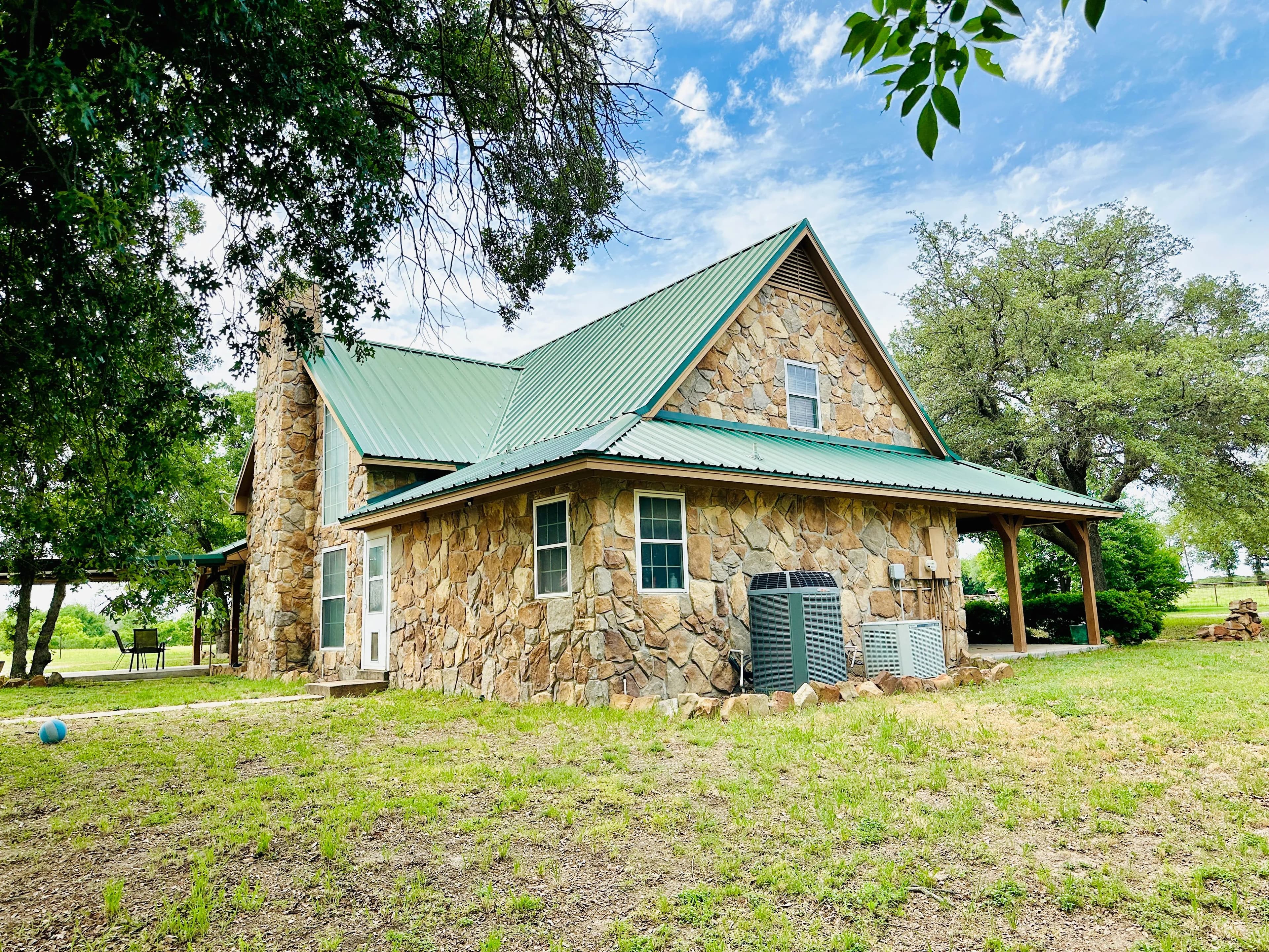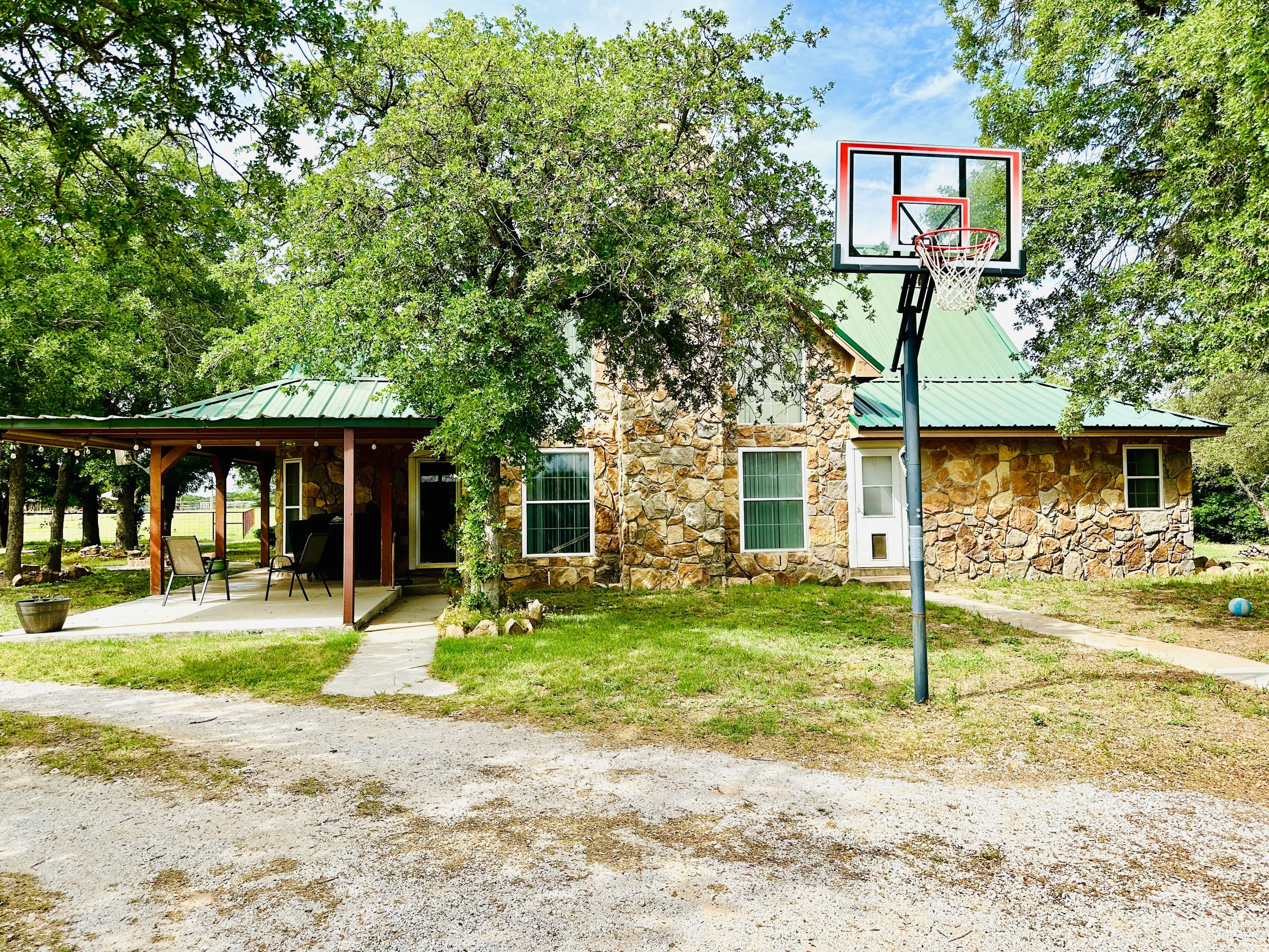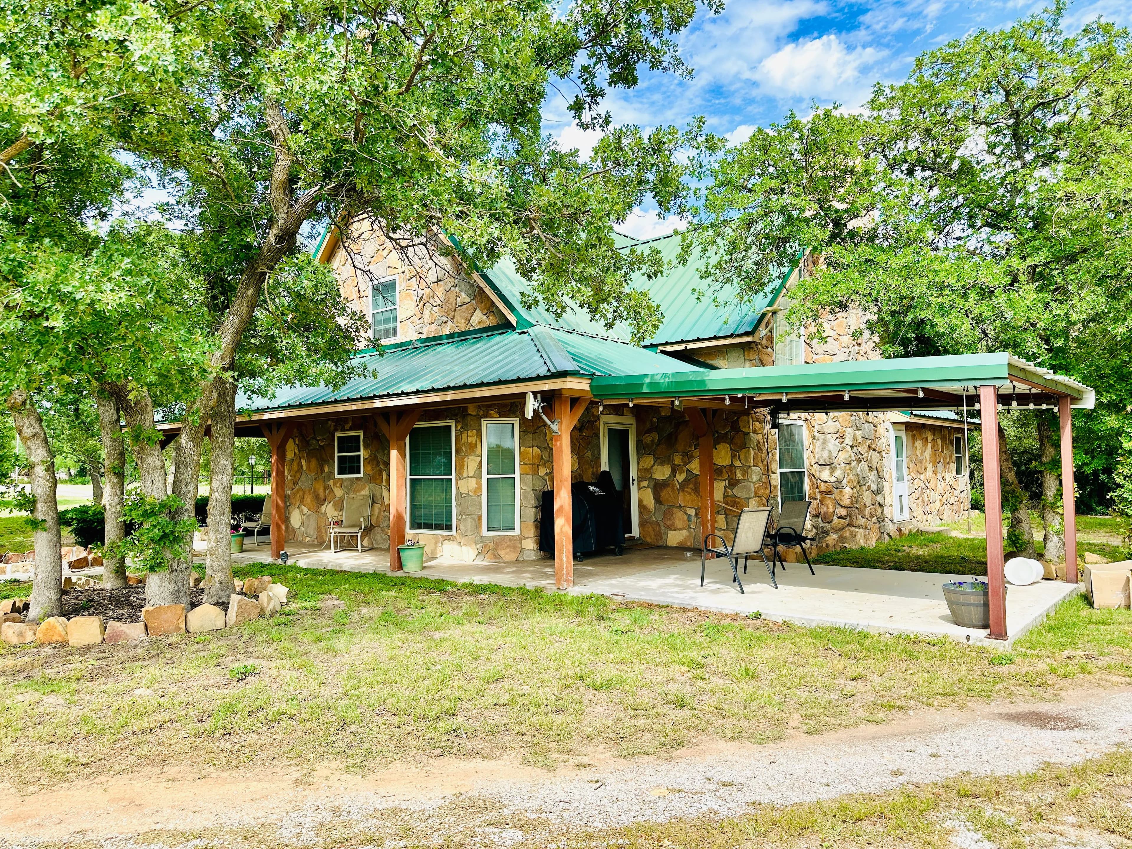 Small acreage and home off of paved road FM 374 barely outside of Cross Plains city limits only minutes from downtown. This 11-acre property has a 4 Bed 2.5 Bath 2,289 sq ft rock home built in 1988 is nestled among beautiful Post Oak trees. The sq footage consists of 1,479 sq ft downstairs and 810 sq ft upstairs. As you enter through the front door, you come into the living room and view the floor to ceiling rock fireplace with an insert. There are floor to ceiling windows flanking each side of the fireplace and there are vaulted ceilings and stained concrete floors. The eat-in kitchen has solid oak cabinets, ceramic tile floors and plenty of room for an island.