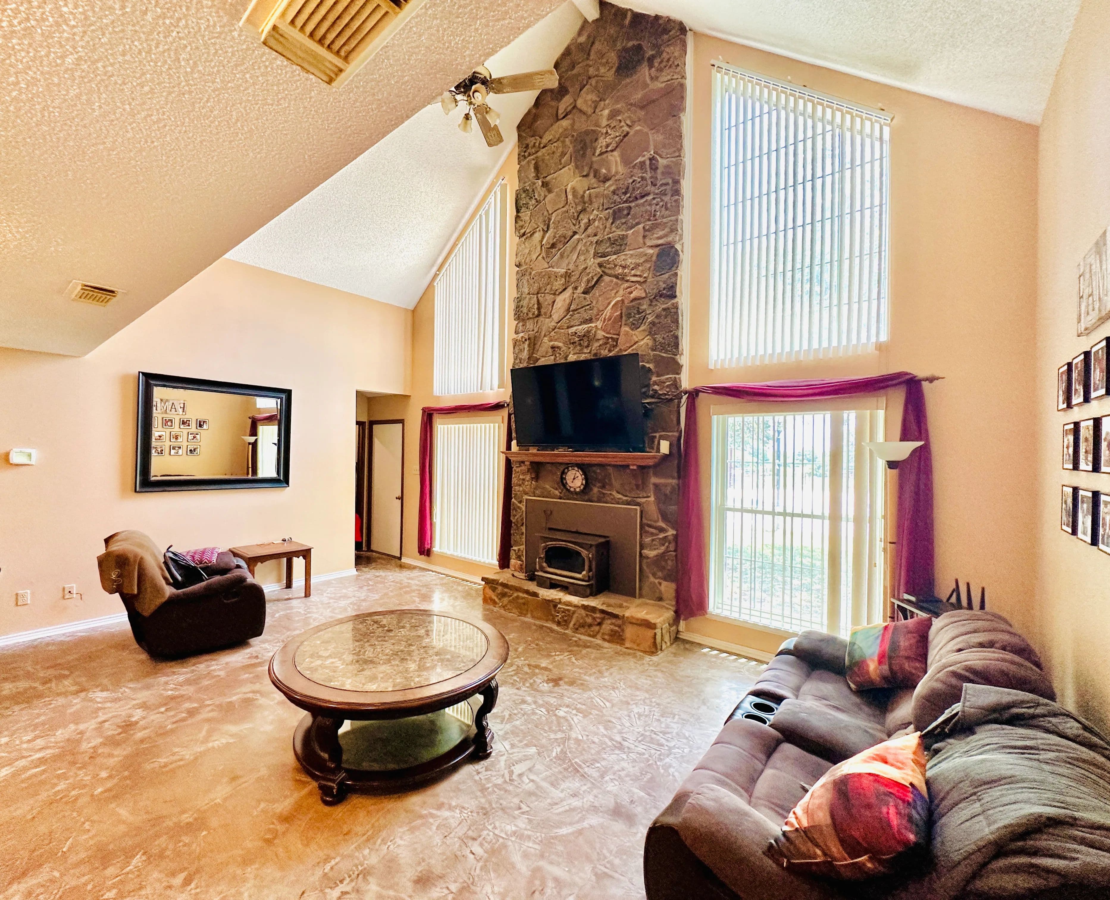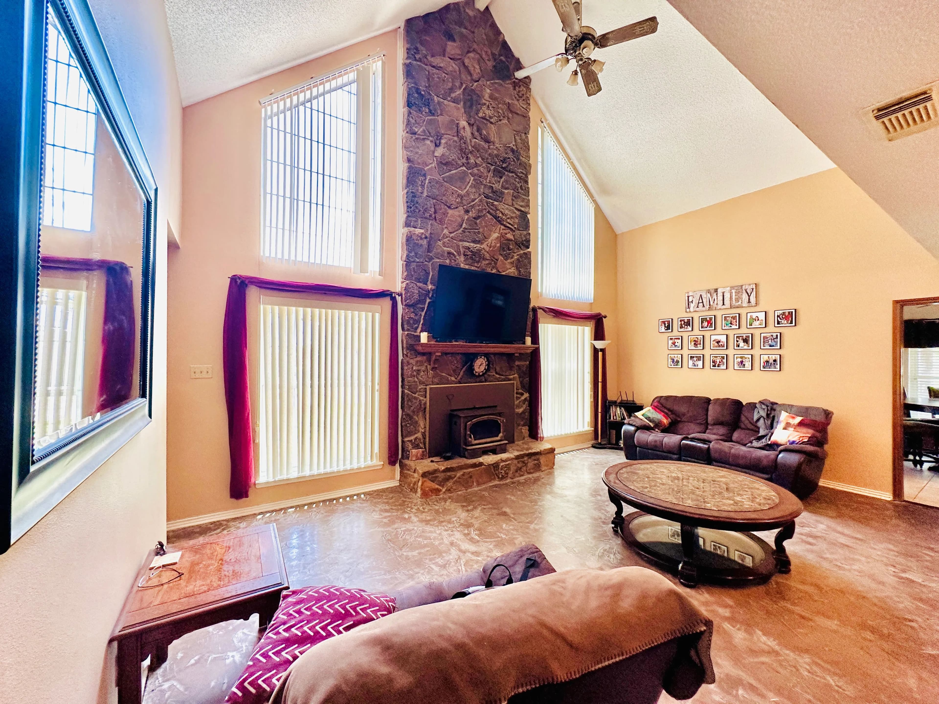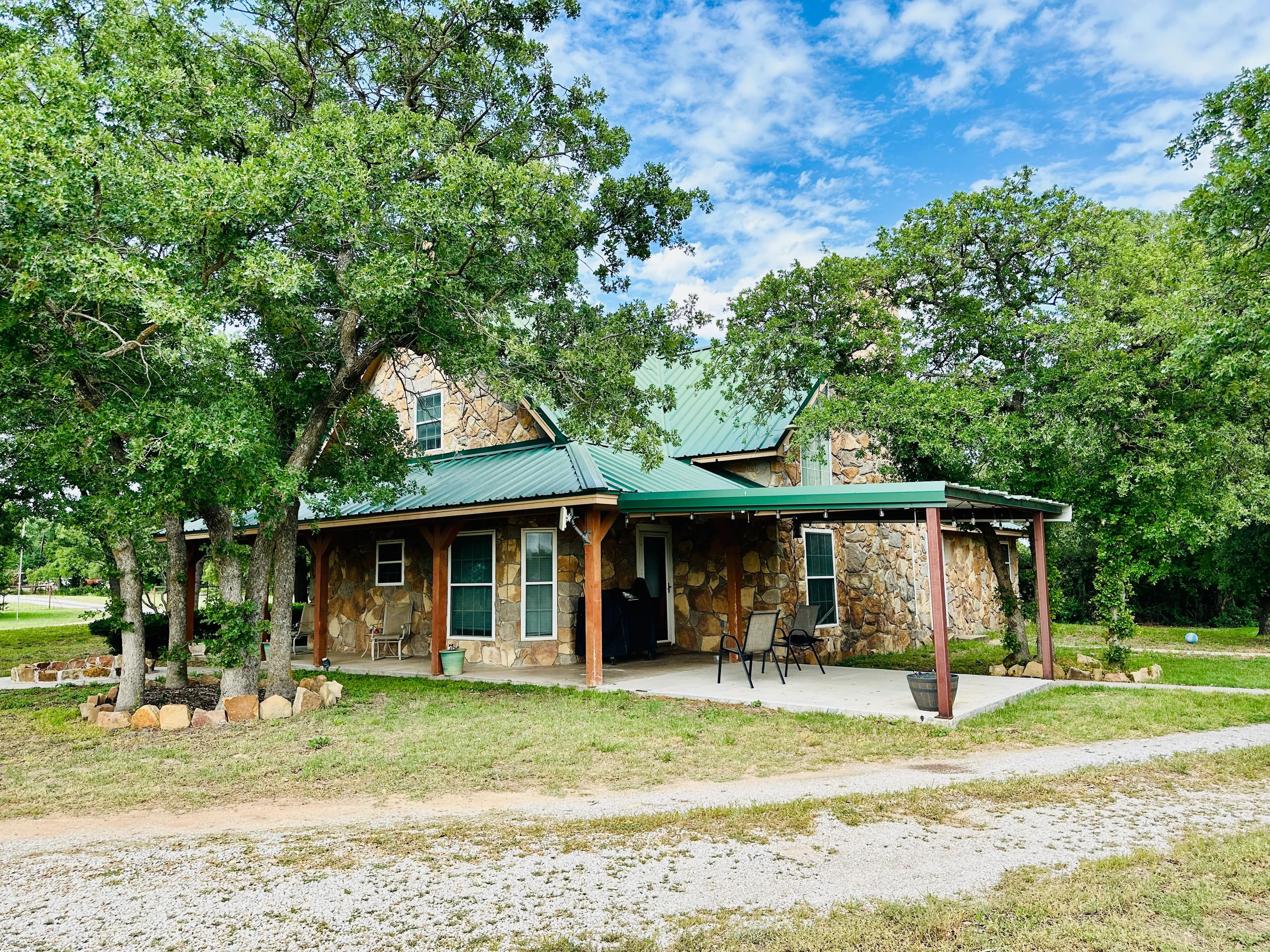Small acreage and home off of paved road FM 374 barely outside of Cross Plains city limits only minutes from downtown. This 11-acre property has a 4 Bed 2.5 Bath 2,289 sq ft rock home built in 1988 is nestled among beautiful Post Oak trees. The sq footage consists of 1,479 sq ft downstairs and 810 sq ft upstairs. As you enter through the front door, you come into the living room and view the floor to ceiling rock fireplace with an insert. There are floor to ceiling windows flanking each side of the fireplace and there are vaulted ceilings and stained concrete floors. The eat-in kitchen has solid oak cabinets, ceramic tile floors and plenty of room for an island.