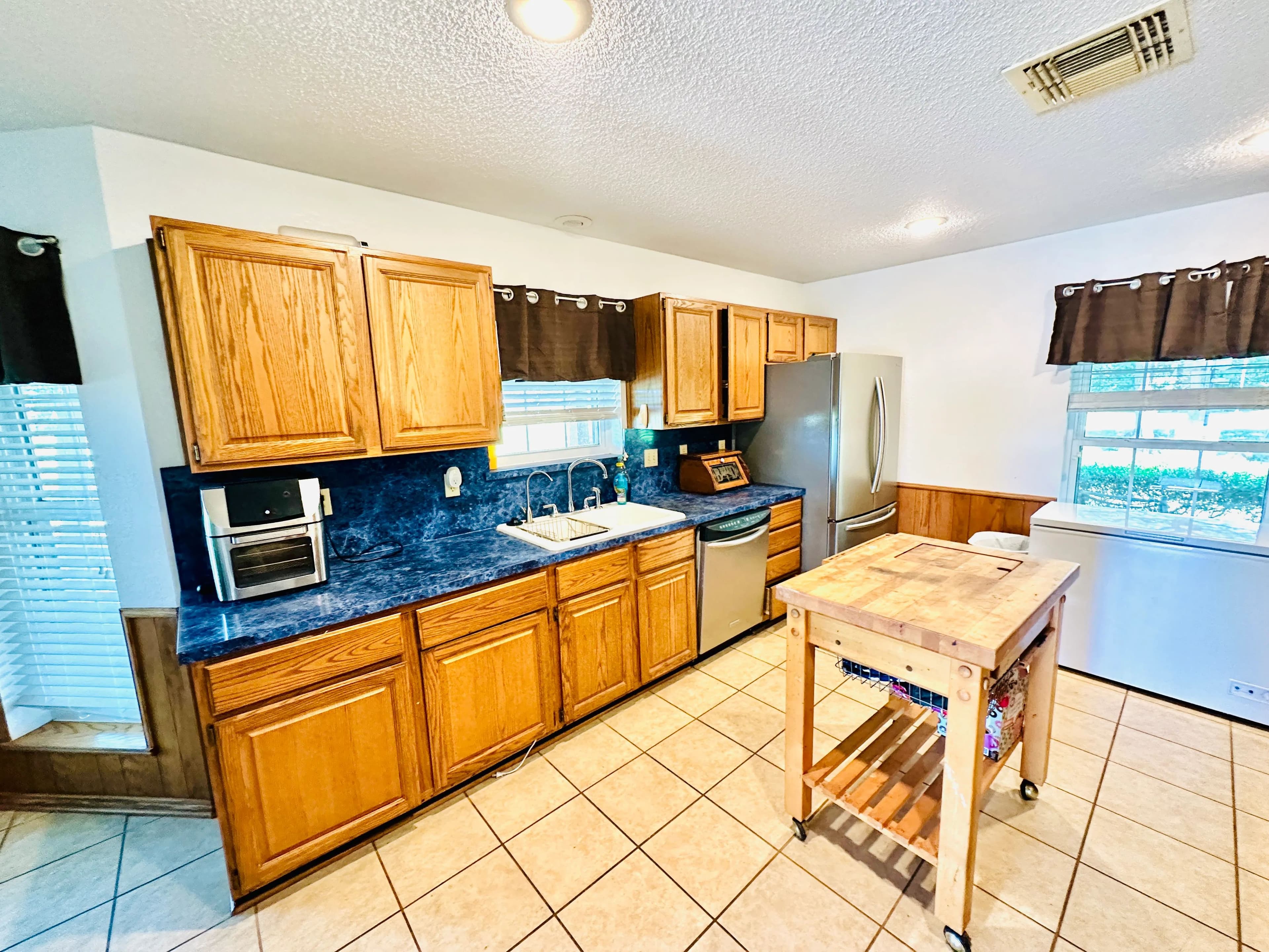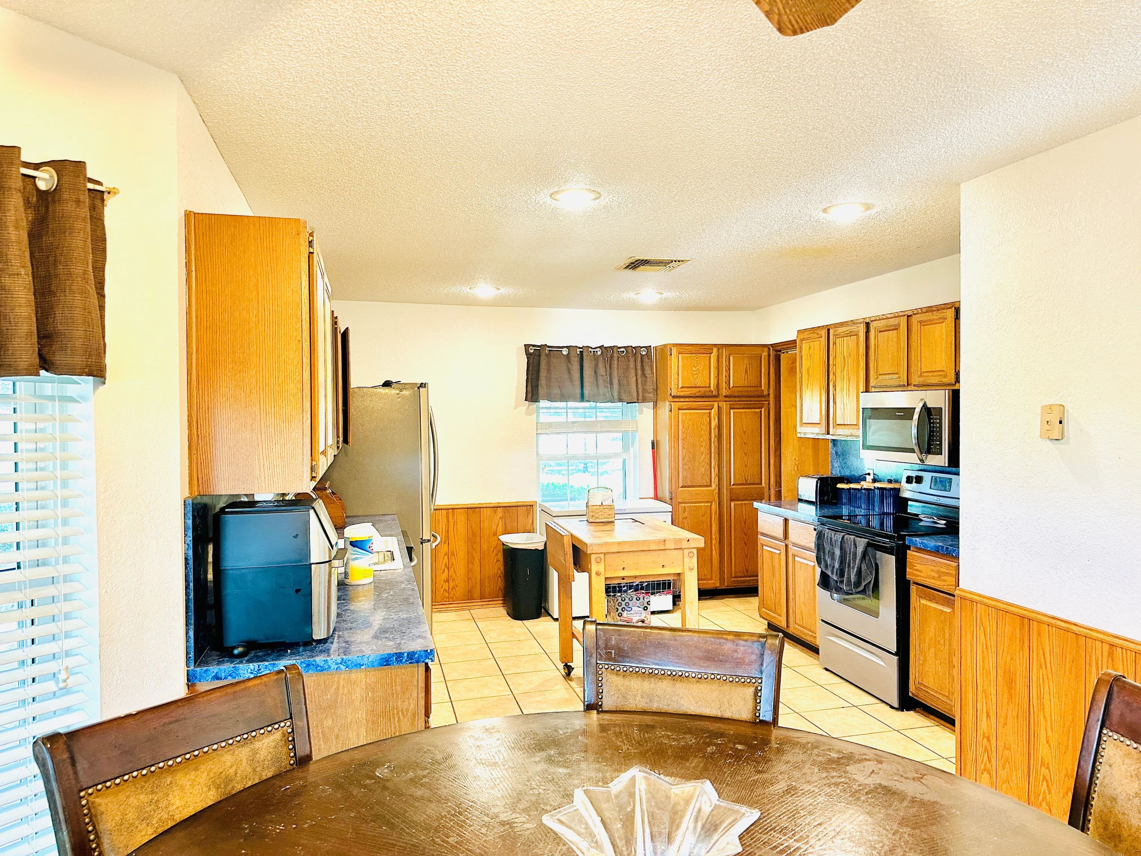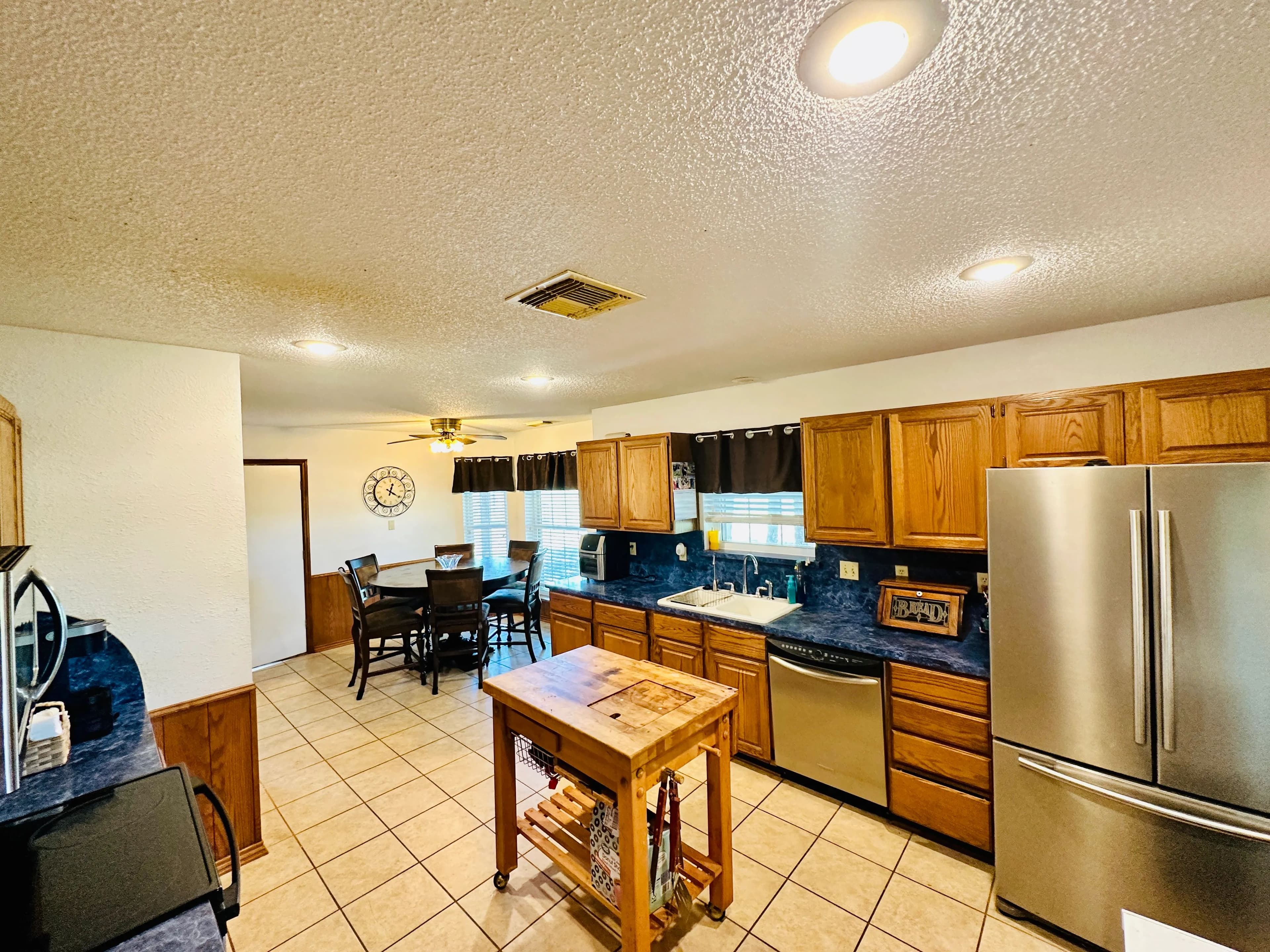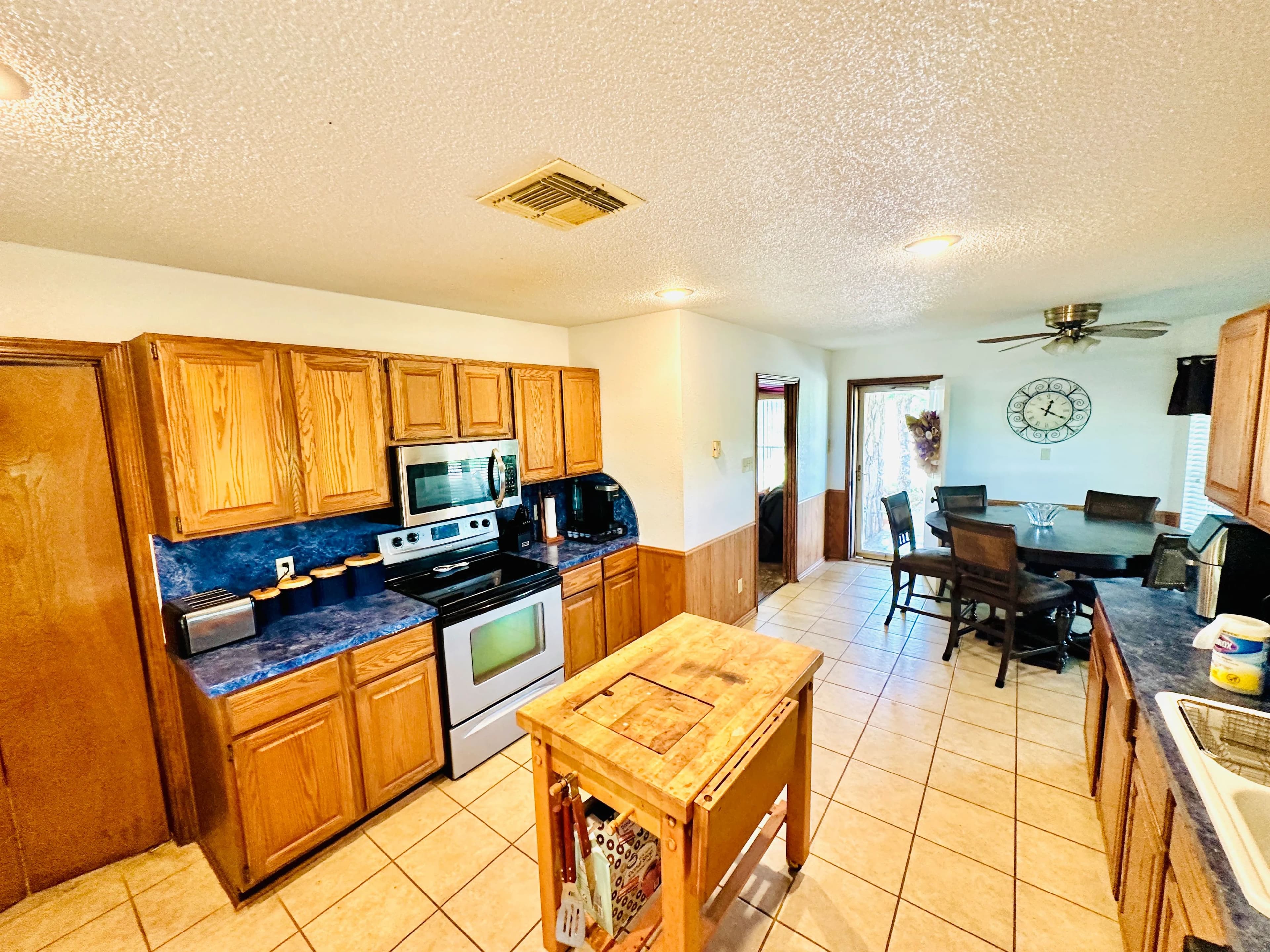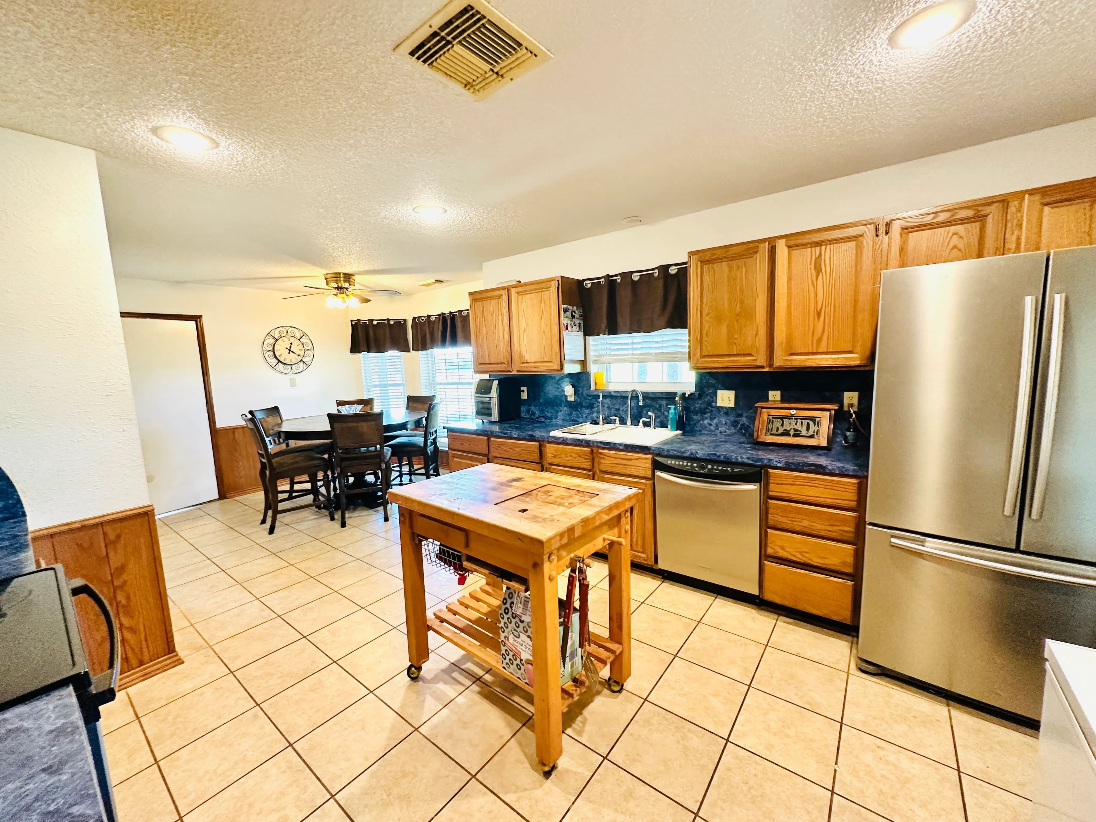There are covered porches on 2 sides and a back patio along with a fire pit. Behind the house is a 675 sq ft garage built in 2005 with a concrete floor and new cement siding. There is also a 2-stall metal carport 550sq ft with a gravel floor built in 2015 and an equipment shed that is 700 sq ft built in 1995. The home is fenced with a cattle guard entrance so that your animals can roam but not come in the yard. The pasture has Coastal Bermuda grass and a stock pond which they sometimes keep full using one of the water wells. There happen to 2 water wells on the property servicing the house, sprinkler system and the pond.