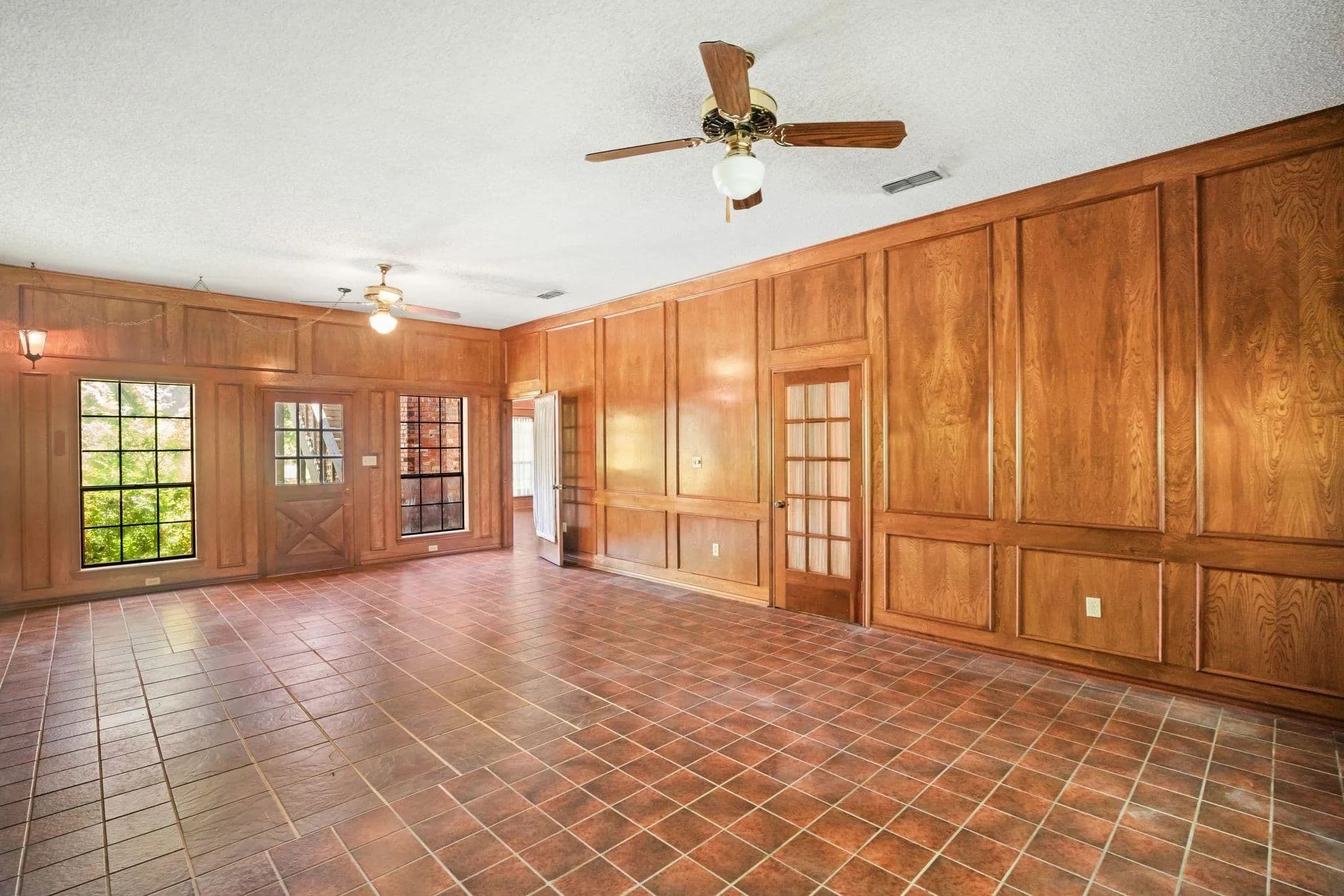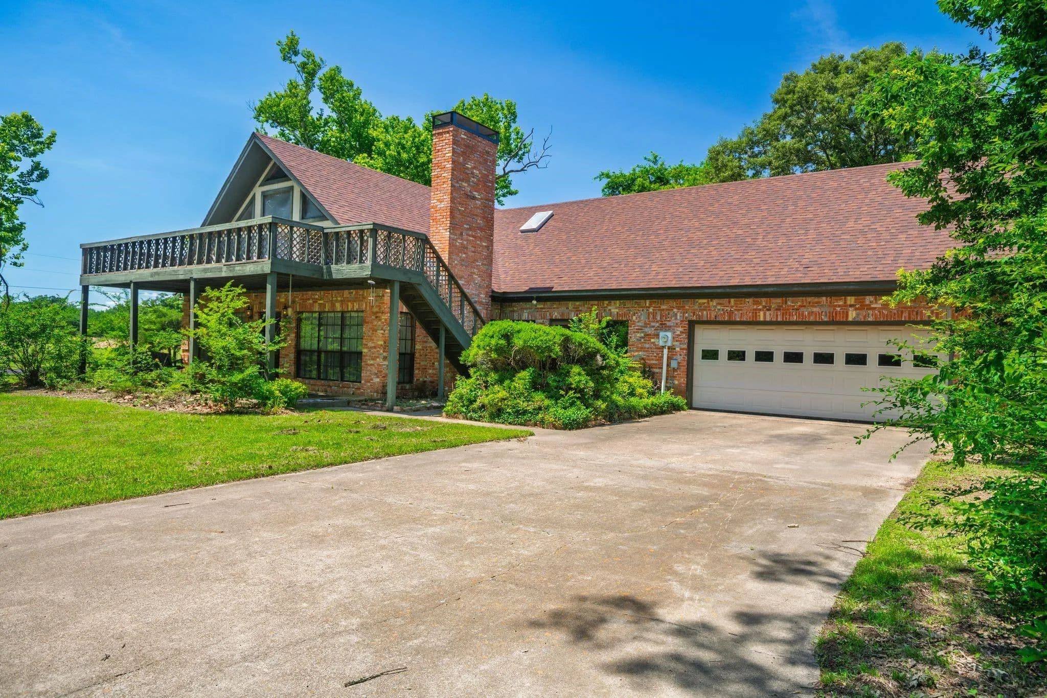 Don't miss this one-owner brick chalet-style home with character and charm on a mostly wooded 49 acres with AG-exemption in Southern Hopkins County! In addition, you'll also find a second home that you can keep as a rental or use it for hosting family or guests. A concrete drive allows easy access to this delightful property. Inside the main house, a 20x20 great room features brick paver flooring, cathedral ceilings, a nice built-in bookcase, brick fireplace, and tons of windows. A second 16x28 living room, with brick paver flooring, could be converted into a third bedroom. An open floor plan provides an easy flow from dining room to the great room. The kitchen includes lots of cabinet storage, a cooktop stove, and double wall oven. Downstairs is the large 14x19 primary ensuite with double sinks, garden tub, 2 separate walk-in closets, and separate shower. Guests also have access to a half-bath downstairs. Upstairs, you'll find a loft, 2nd bedroom with a walk-in closet, and full bathroom. Enjoy a bird's eye view from the 2nd story front deck, accessed from outside. Additional bonuses are high-grade wood panel walls in both living areas and dining room, covered front porch with swing, 2-car attached garage, and storage shed. A smaller house, currently with a tenant, also comes with this property. Retreat to this quiet country setting with a private yard and enchanting outdoor space!