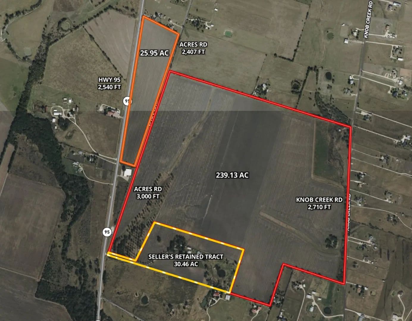 Presenting Academy Acres, located just north of Little River-Academy featuring two prime parcels totaling approximately 267 acres, just 3.5 miles from the Temple City Limits. The 27-acre tract has optimal frontage of 2,540 feet on TX Hwy 95 near the newly-opened Academy High School. The large 240-acre parcel of prime agricultural acreage on Acres Road is currently a working farm and is ideal to keep in agricultural production while waiting for future opportunities. May be sold in smaller parcels. Academy Acres is partially in Little River-Academy City Limits, and partially in the Temple ETJ. Knob Creek winds its way down the east perimeter creating a natural wildlife habitat. With 2,540 feet of frontage on Hwy 95, 5,400 feet of frontage on Acres Road, 2,700 feet of frontage on Knob Creek Road, and flat to gently sloping topography, this property is ideally shaped and positioned for optimal access and development. Take advantage of the small-town charm coupled with regional growth. Three CCNs border the property. Seller-imposed restrictions to be drafted. Buyer/Buyer’s Rep to verify all information deemed important prior to submitting an offer.