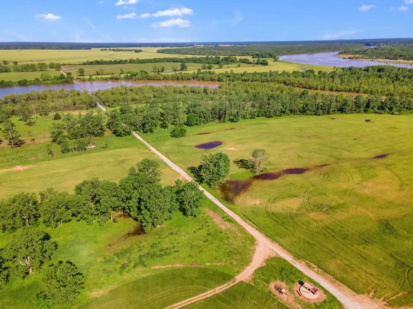 Recreation Duck Island’s location on the Red River, surrounded by water, and the fact that it has only one way in or out makes it a natural haven for migratory birds, deer, turkey and amazing fishing opportunities. The size of this property vastly expands it’s recreational value and the location is a rare combination of seclusion and easy access to services. The lake is deep and wide enough for nearly any water sport and the land offers everything from marshes and river bottoms to open fields then dense woods. The pivot irrigation sprinkler is perfectly suited to grow food stands for dove, quail and deer habitat and the beauty is beyond belief.