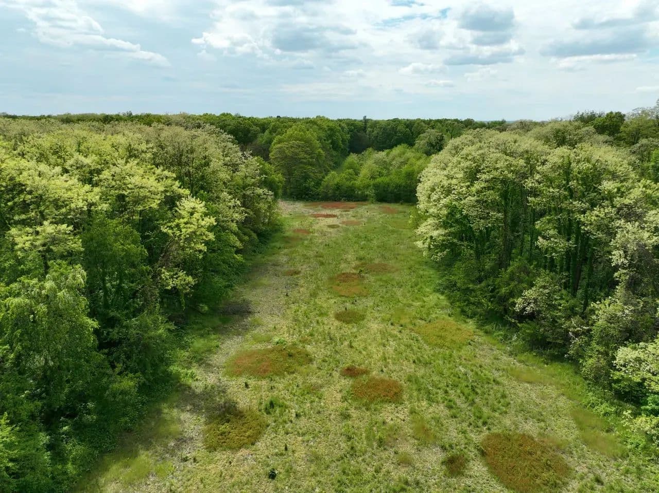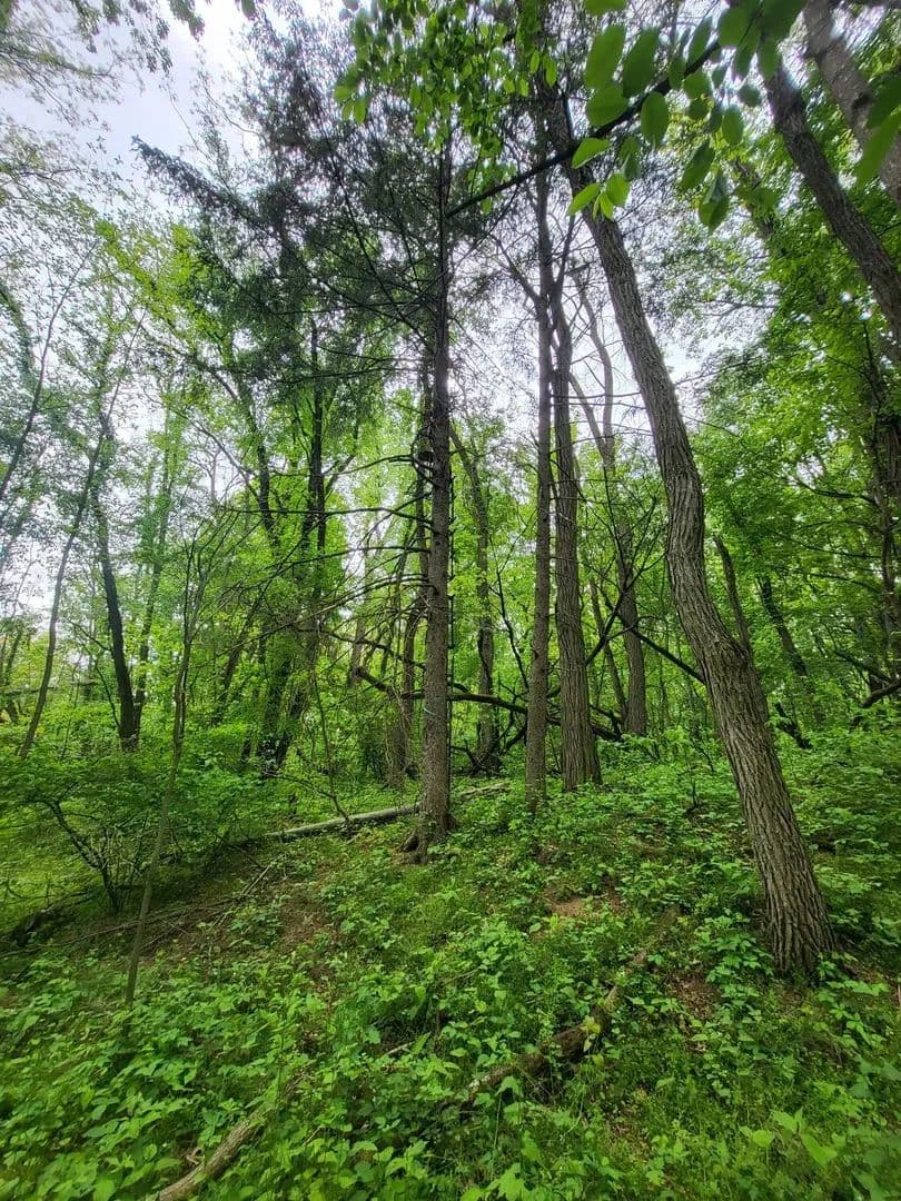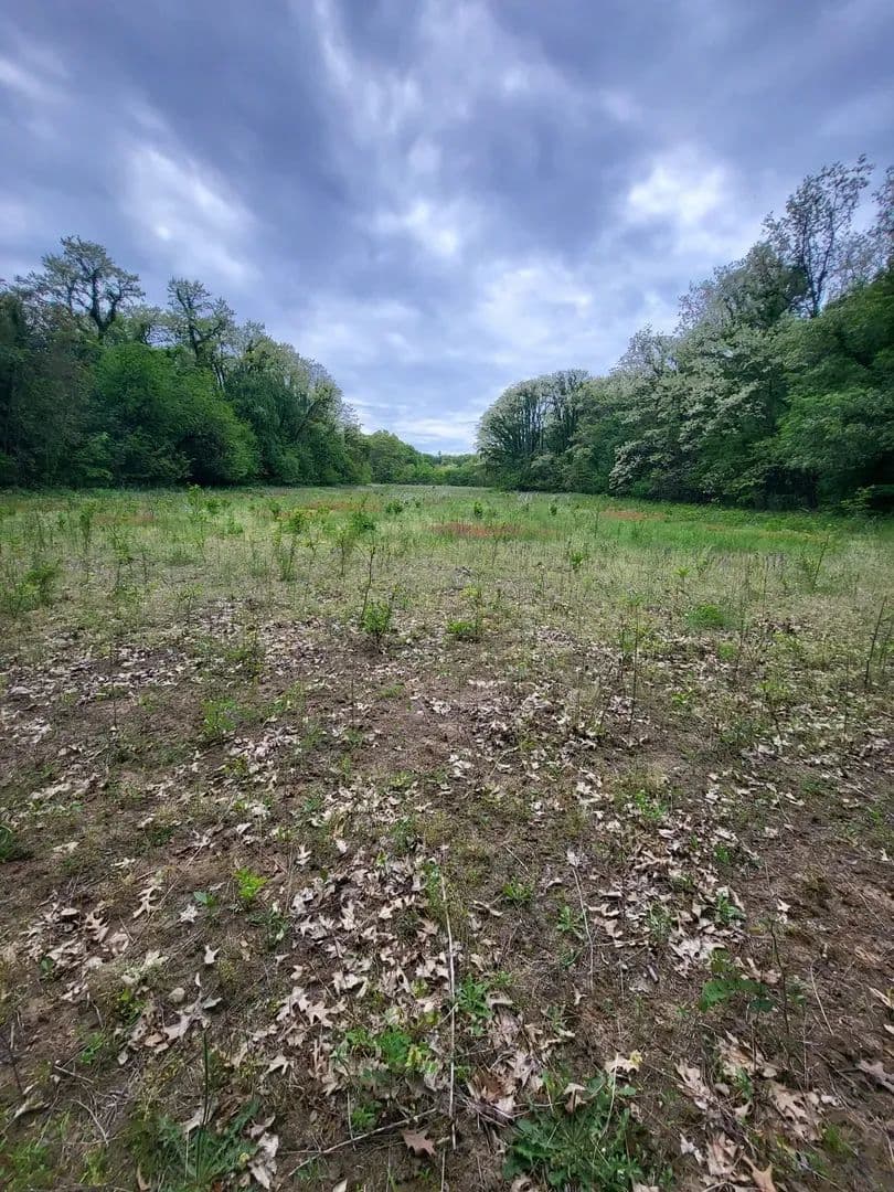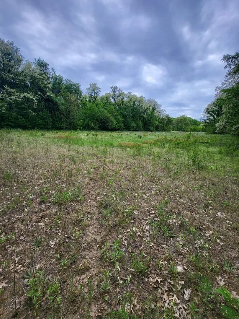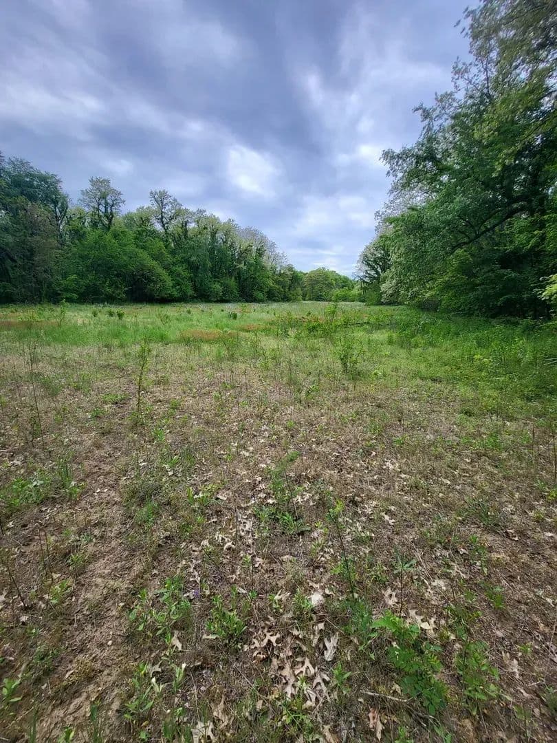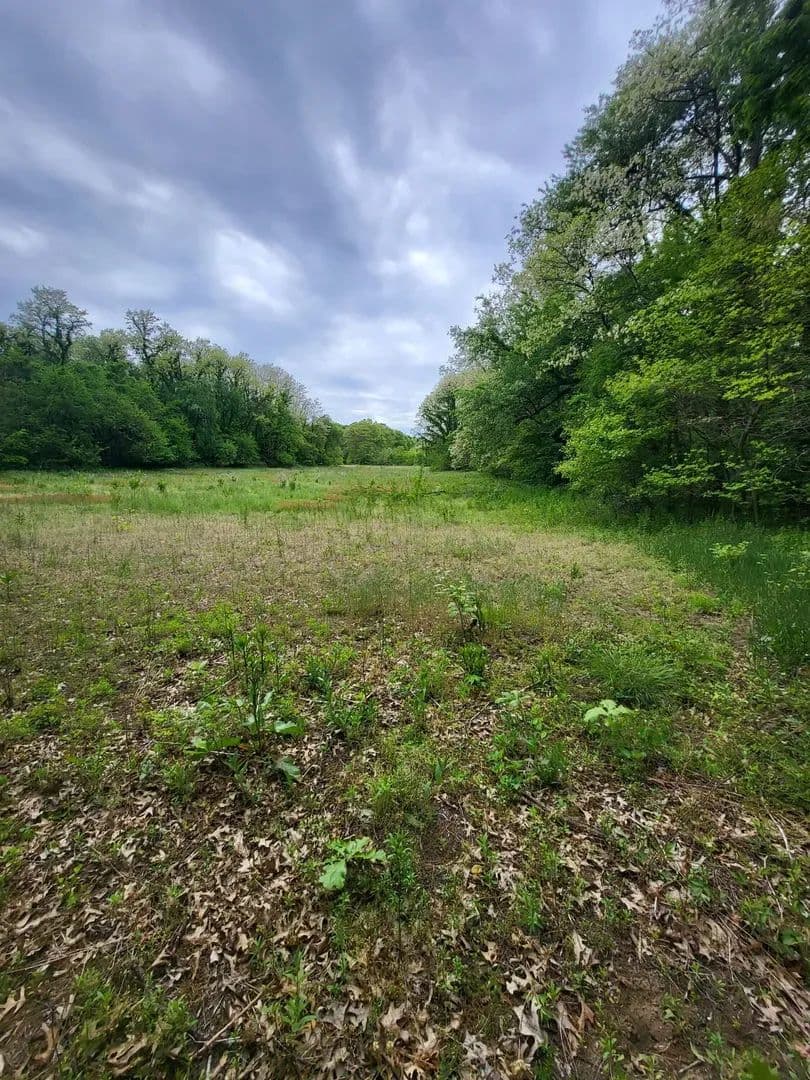 A relaxing setting where open spaces, woods, and wonder sit down next to each other.