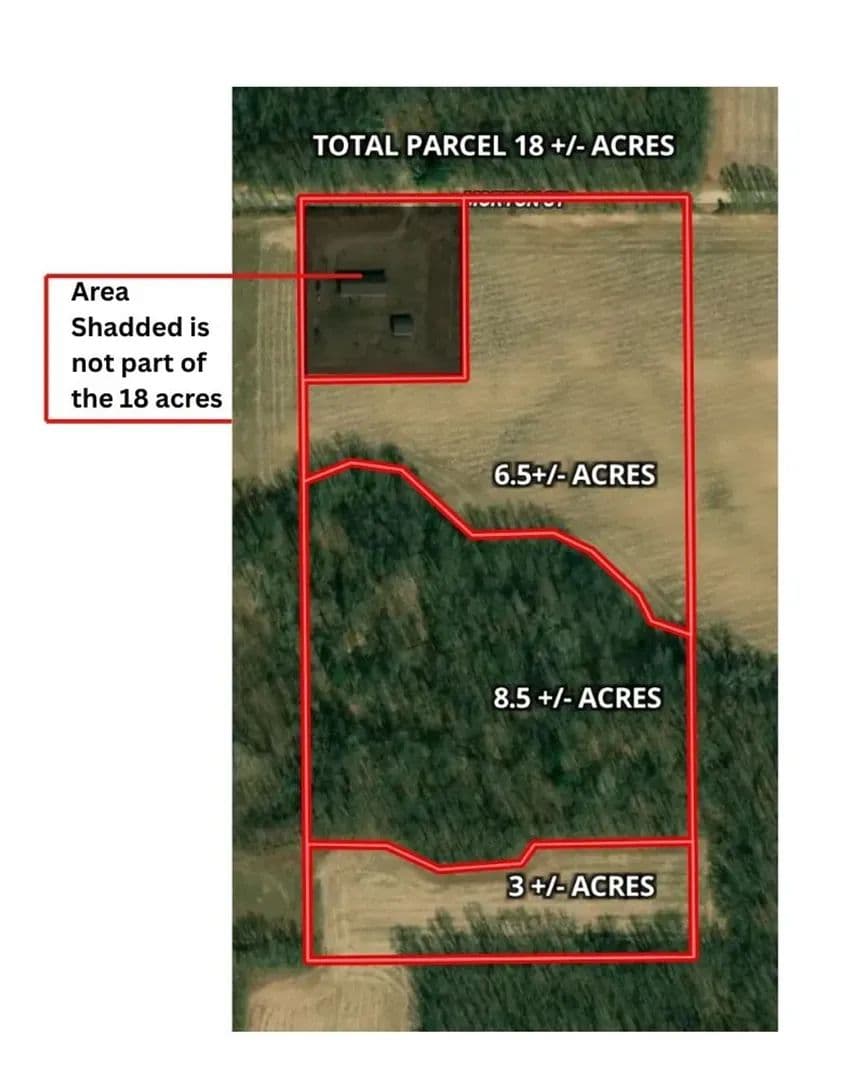 Here is a slice of a nice set up for a future build pending approval. This is an 18 acre split from a 20 acre parcel pending township approval process.