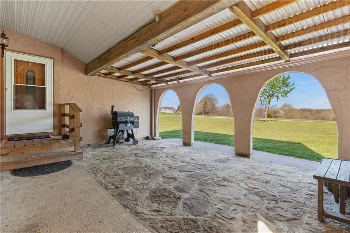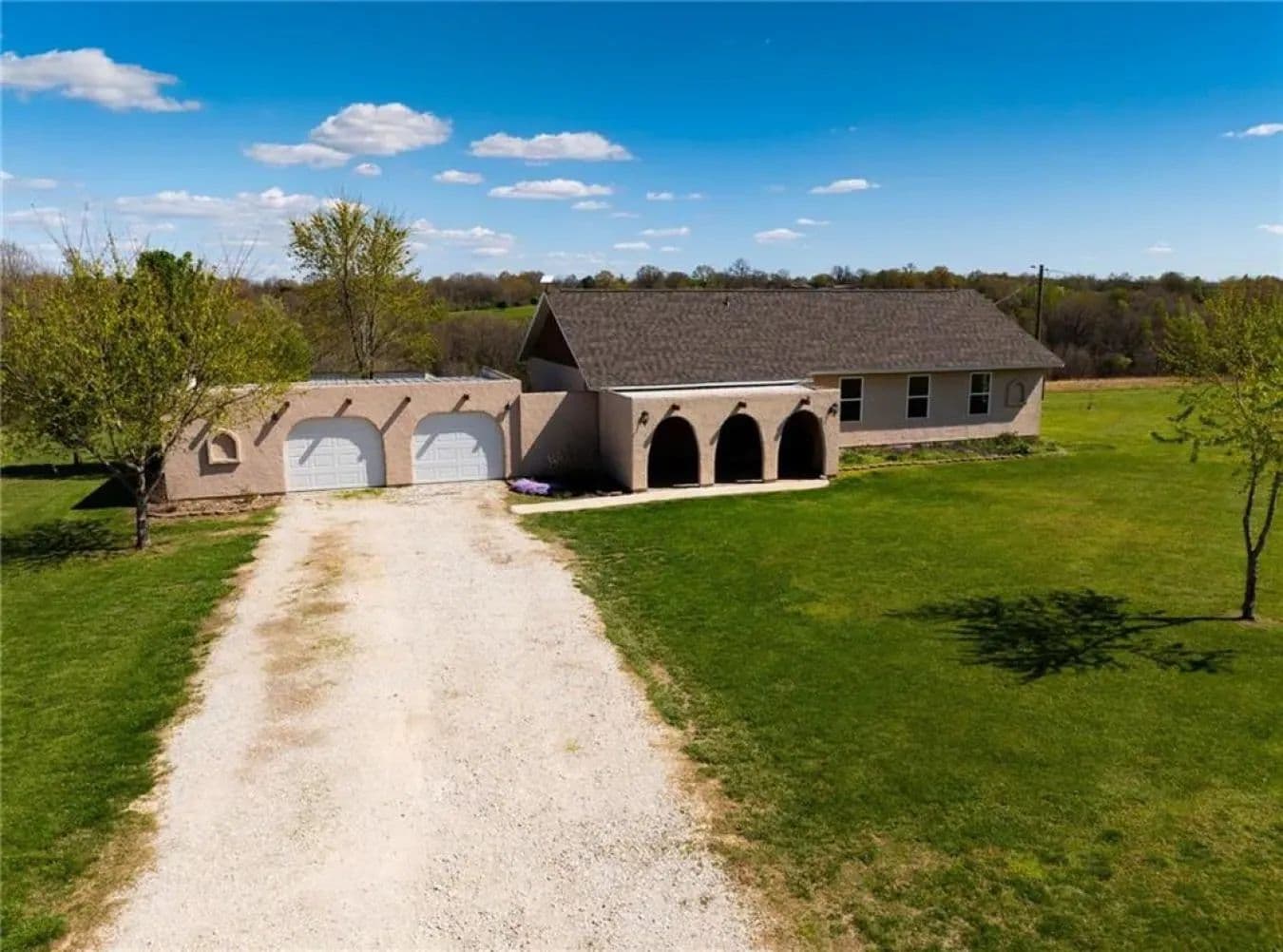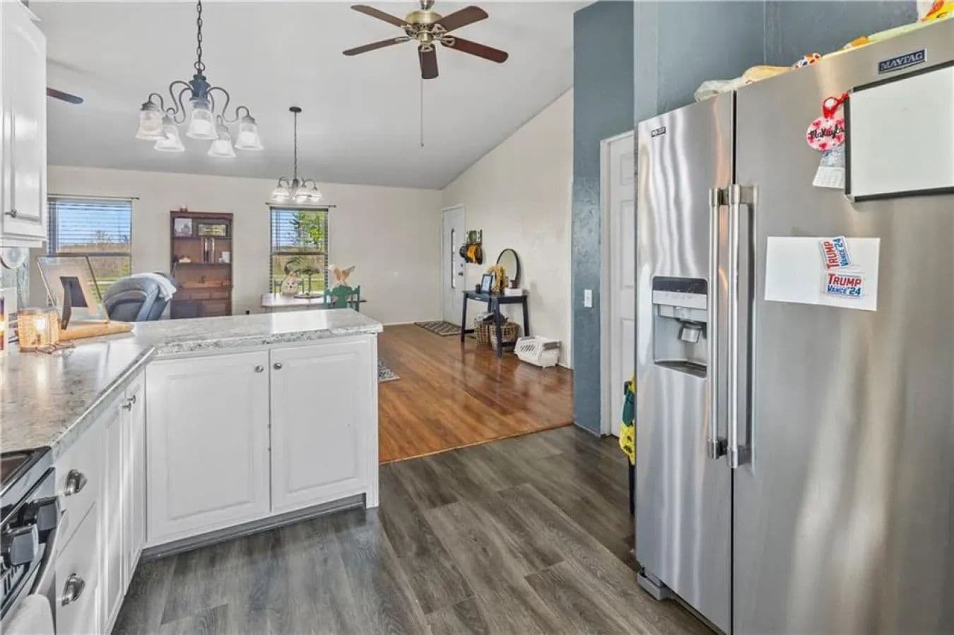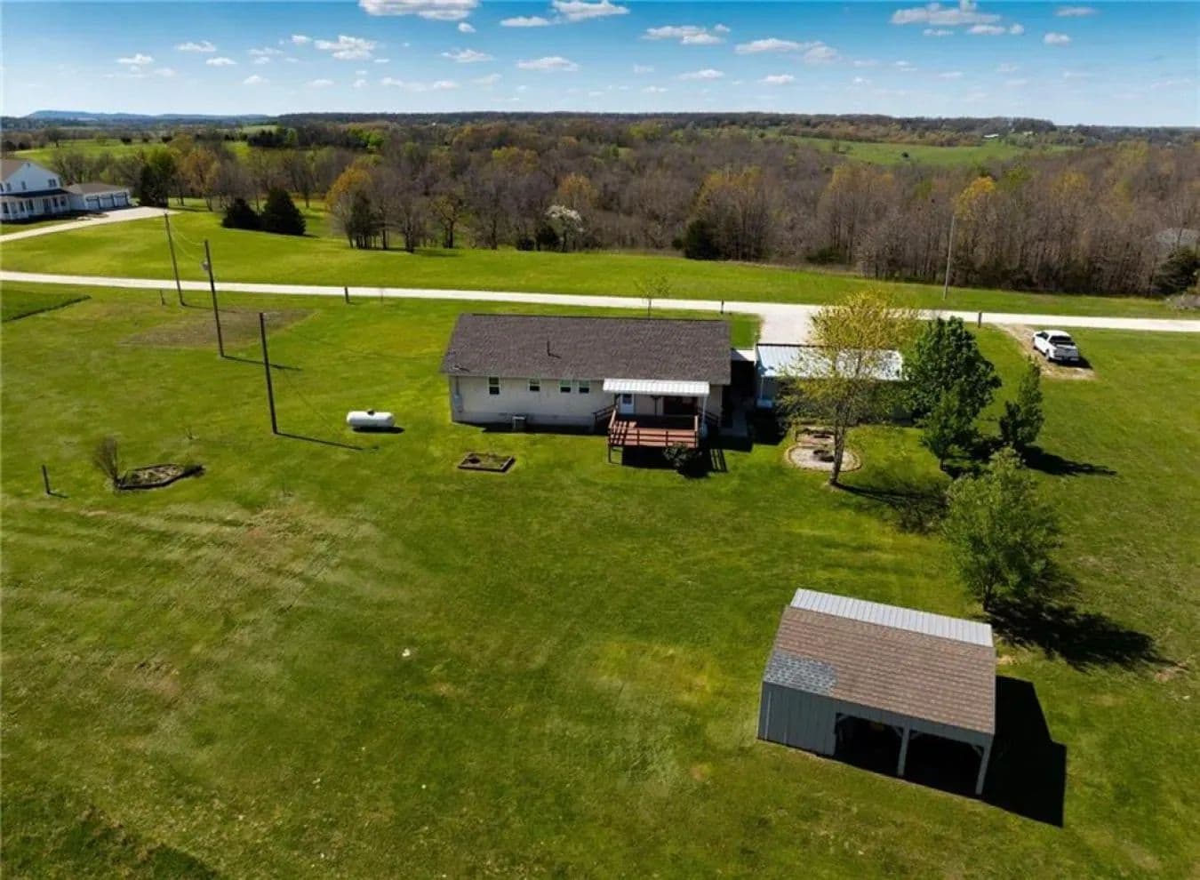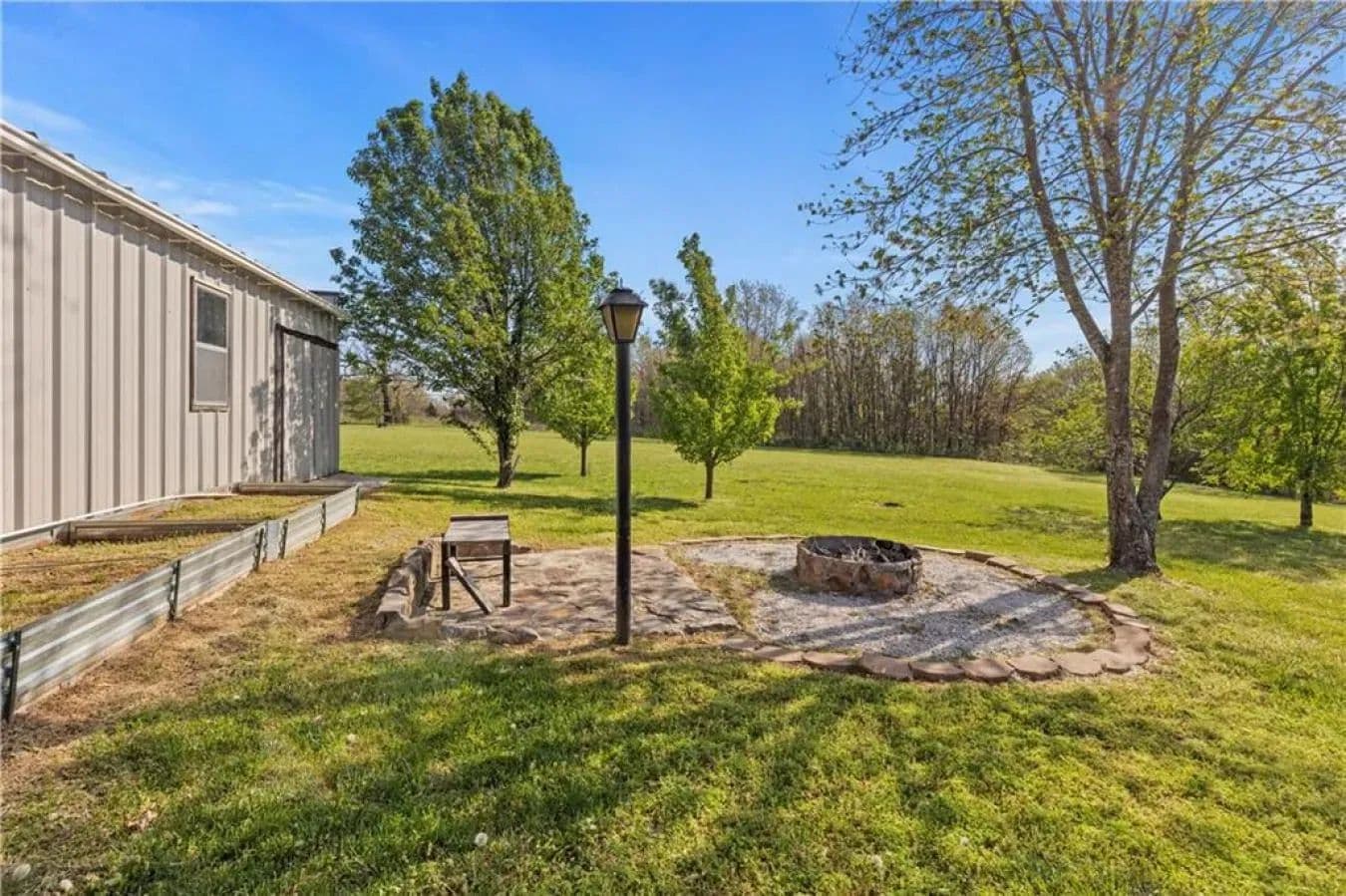 Discover peaceful country living on just over 10 acres at 68 County Road 8492 in Green Forest, Arkansas. Built in 2013, this well-maintained home offers 1,540 heated square feet of thoughtfully designed living space. The bright and open layout features two bedrooms and two full bathrooms, creating a comfortable and inviting environment with stunning sunrise and sunset views. The exterior is equally impressive, with raised garden beds ready for planting, multiple outbuildings for storage, and an 800-square-foot detached building. There's also potential to add a chicken coop, making this property ideal for those looking to begin a homesteading lifestyle. The spacious yard and open land offer plenty of room for outdoor activities, complete with a fire ring perfect for evening gatherings. Additional features include a gravel driveway, stucco exterior, asphalt shingle roof, and a four-car capacity carport/garage. Inside, the home is finished with a mix of carpet, ceramic tile, and laminate flooring, and includes a fireplace with gas logs for added warmth and charm. Conveniently located just minutes from Highways 65, 62, and 412, this property combines the tranquility of rural living with easy access to nearby towns and amenities. Utilities include central electric air conditioning, central propane heat, a propane water heater, and a septic system, offering both comfort and self-sufficiency in a serene Ozark setting.