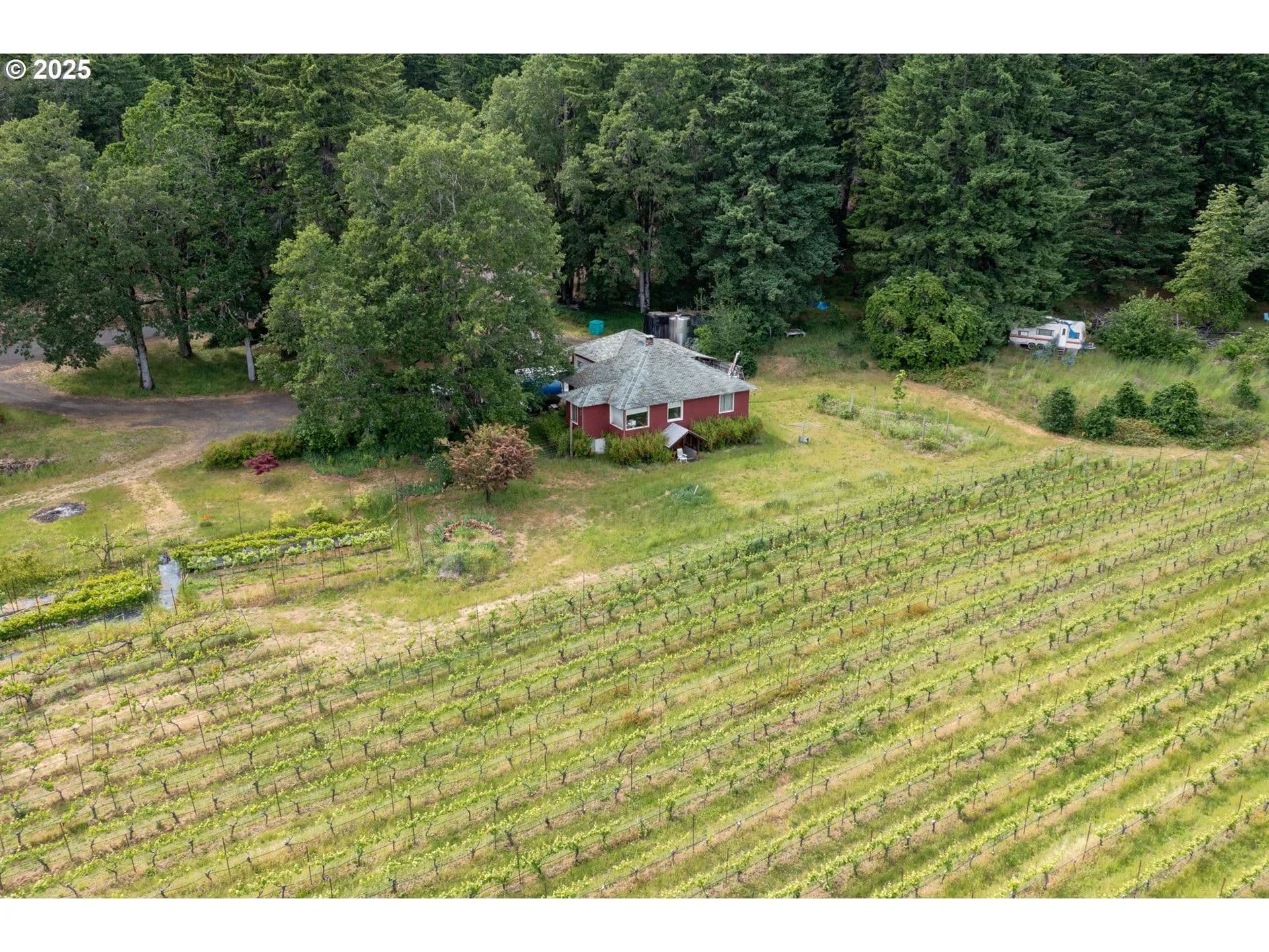 Just over 43 acres nestled in the heart of the breathtaking Columbia Gorge. This remarkable property features a mix of timber and a 17.5 acre vineyard. The property offers an exceptional opportunity for Agri-tourism, wine lovers, and those seeking a private escape. With stunning views overlooking the vineyard as well as showcasing Mt. Hood, this property is located just a short drive from the charming towns of White Salmon, and Hood River providing the perfect balance of tranquility and convenience. Planted in the 1990's, the vineyard boasts a diverse array of premium varietals including Pinot Noir, Riesling, Sauvignon Blanc, Chardonnay, Syrah, Malbec, and Maria Gomes. The vineyard is meticulously managed by the current owners, ensuring the vineyard continues to thrive in this ideal climate. Whether you're a seasoned wine maker, or simply looking to expand on the properties potential, the vineyard is primed for future success. The estate also includes a comfortable farmhouse residence offering the perfect home base for vineyard owners. With it's rustic charm, the farm house provides a peaceful retreat with easy access to the surrounding recreational opportunities and dining hot spots of the Columbia Gorge.