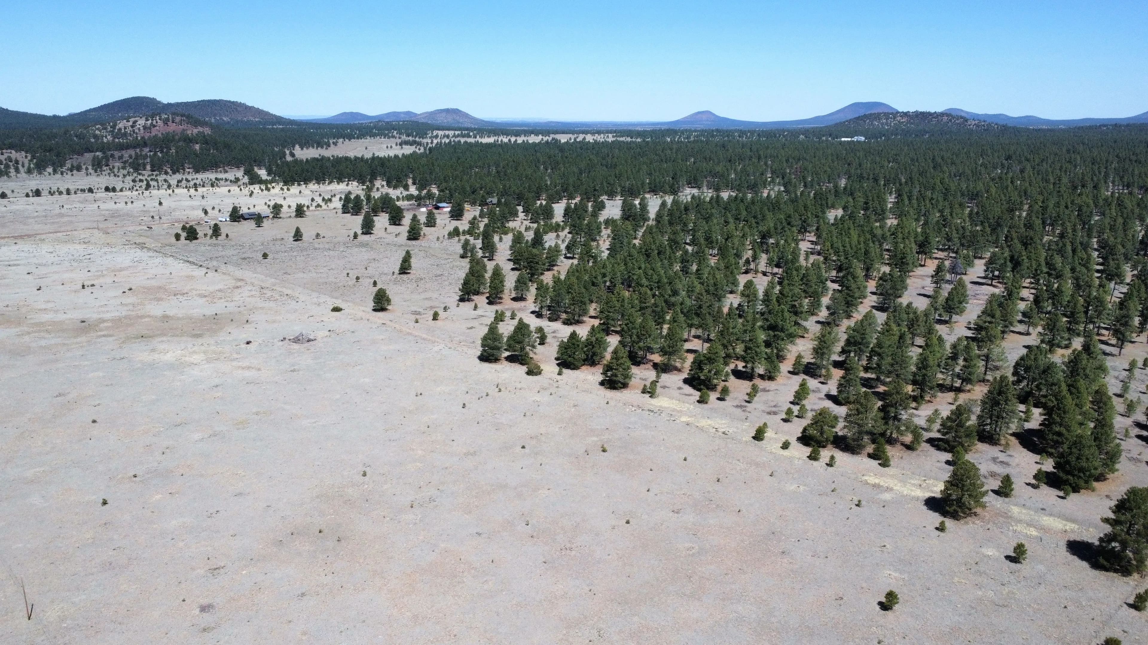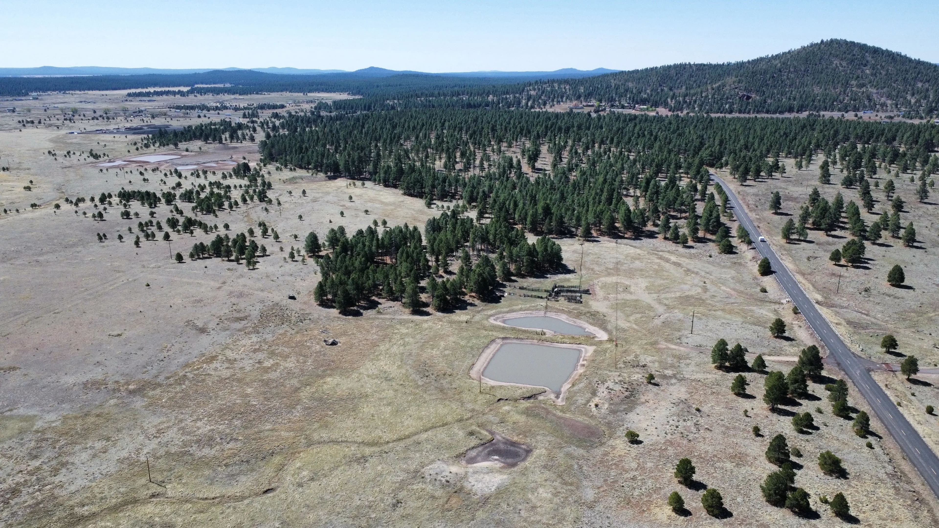 The Buggy Wheel Ranch is 22 miles west of Flagstaff and eight miles east of Williams. Access from I-40 is from the Pittman Valley Road Exit (Exit #171) and by taking paved Buggy Wheel Ranch Road (County Road #74) one mile to the property. The ranch's 446.8 acres borders Kaibab National Forest on three sides. Topography is level to gently rolling being in Pitman Valley with elevations of 6,926' to 6,995'. Vegetation consists of open meadow grassland with intermixed ponderosa pine.