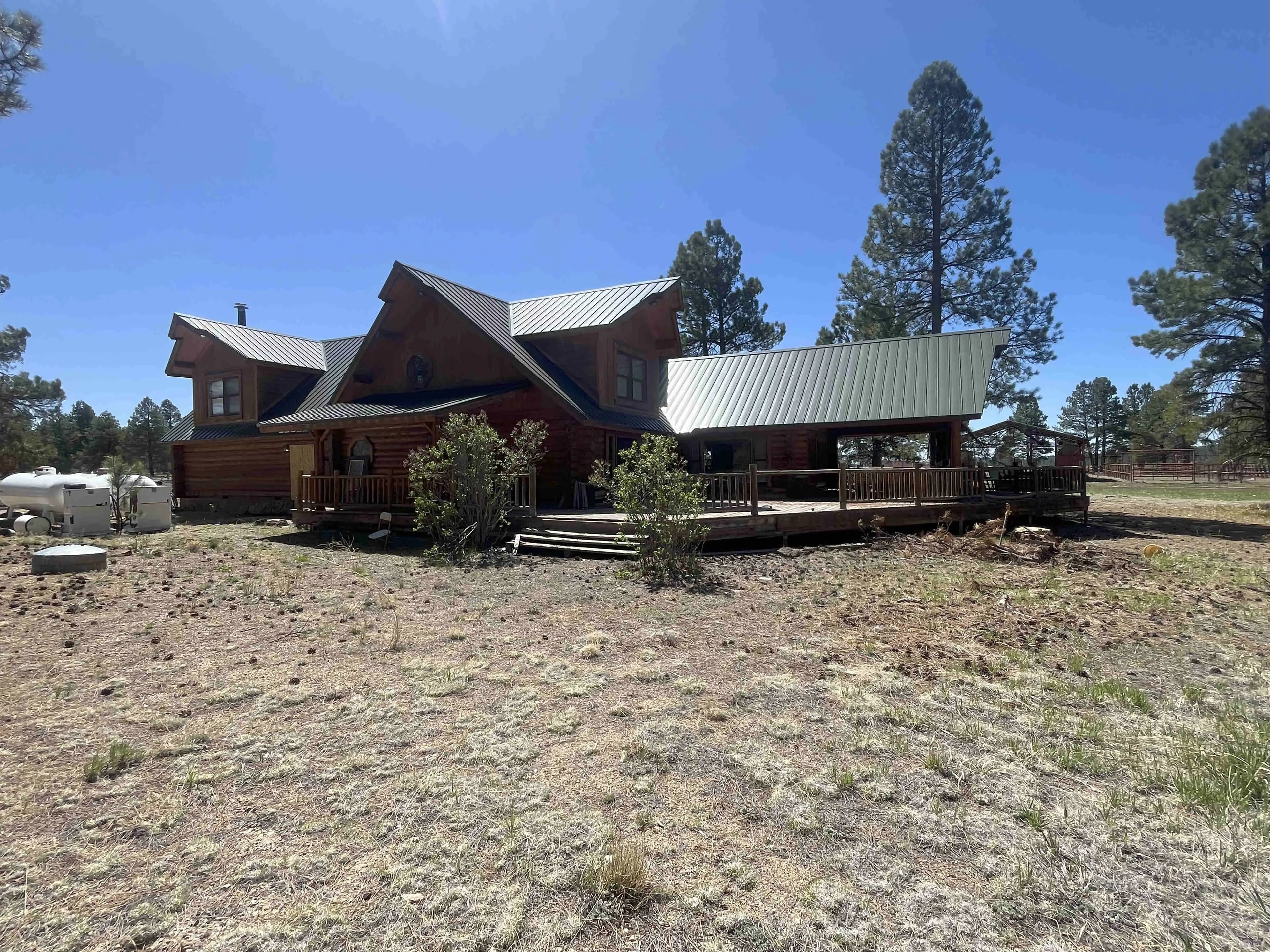 Barn & Corrals: 1,760 s.f. pipe pole construction and metal roof, two 40' shipping containers are on each side, one container was formerly a bunkhouse with a kitchen and bathroom. Corrals are log fencing on railroad ties, has a set of scales.