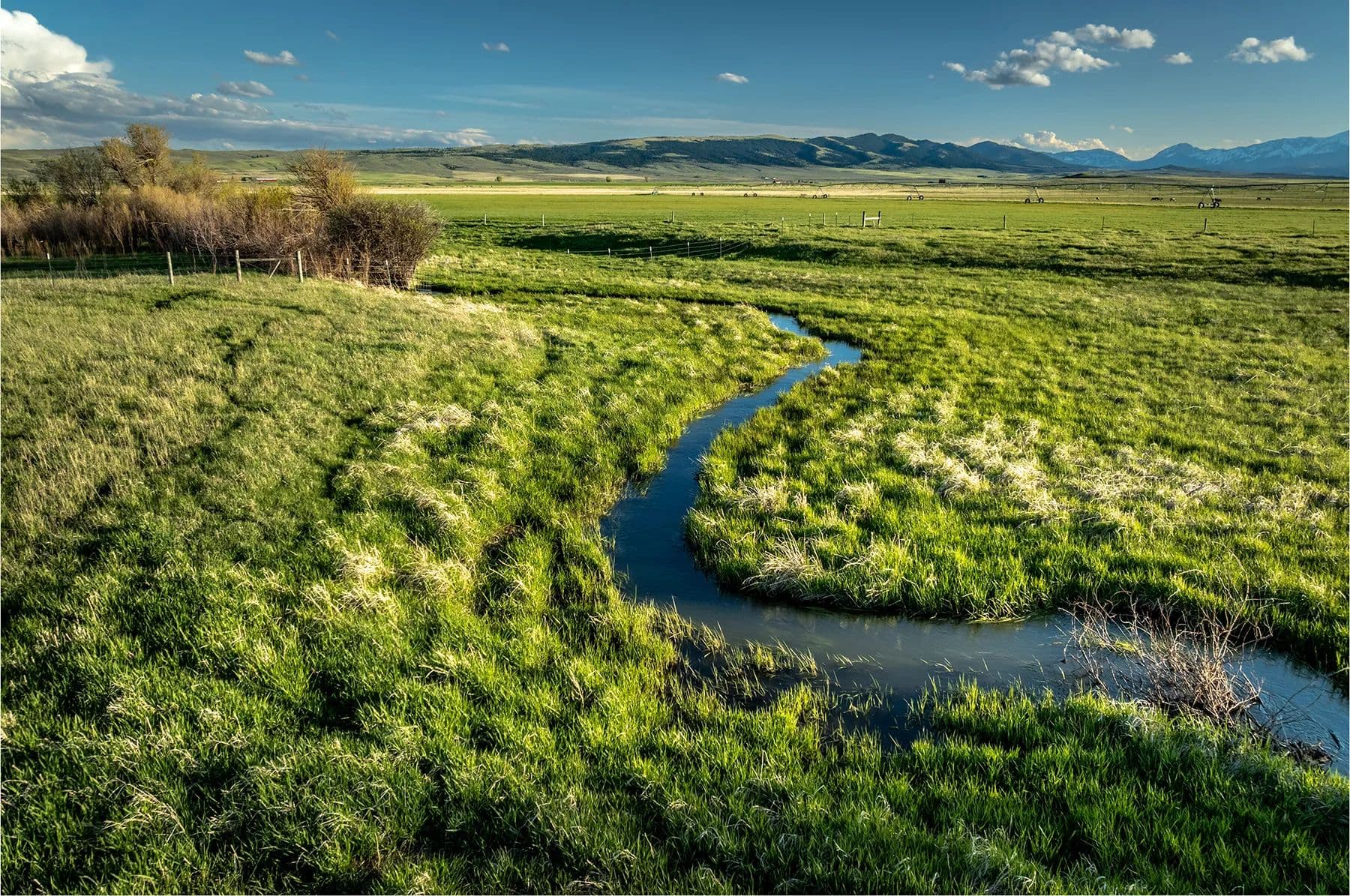 ~ Abundant irrigation rights supplying 570+/- acres under five pivots, plus additional flood irrigation and two ponds