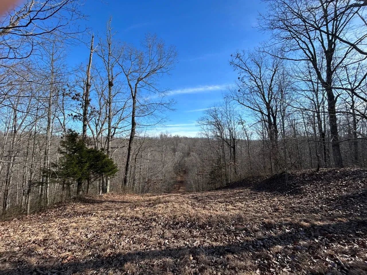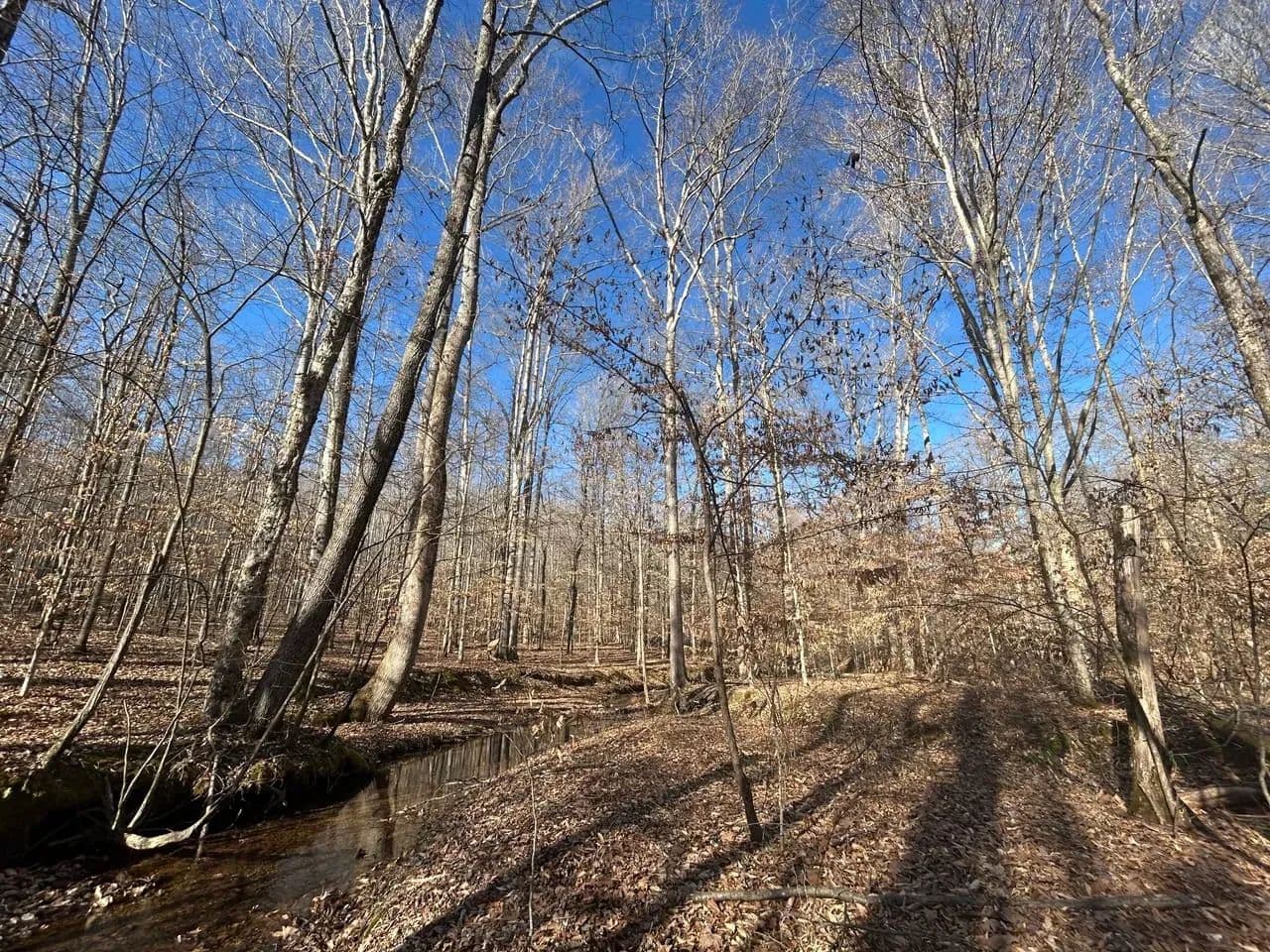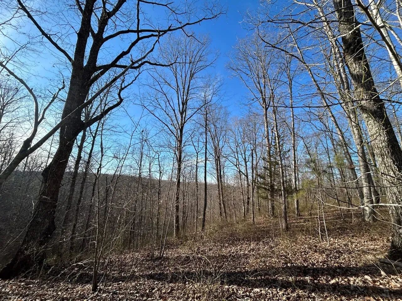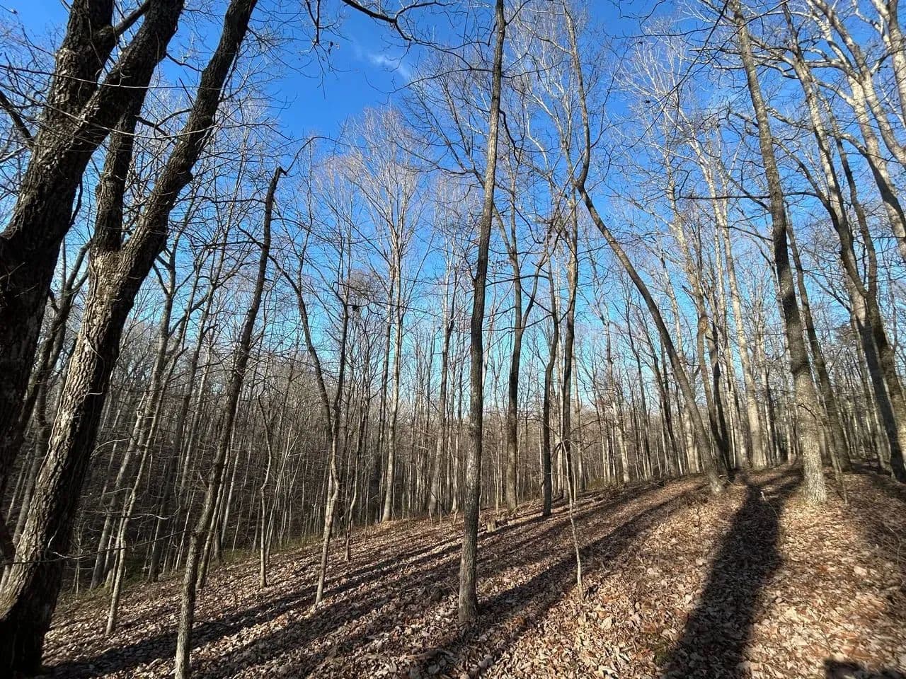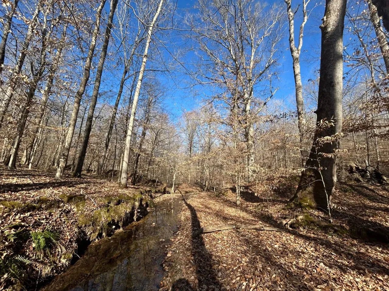 Recreationally, the property shines just as brightly. The area is known for its strong deer and turkey populations, with excellent habitat that consistently supports mature bucks. A tributary of Sulphur Creek creates the western boundary of the land, running year-round and even holding small fish. Expansive flat ridgetops across the tract make it easy to develop food plots, green fields, or future building sites.