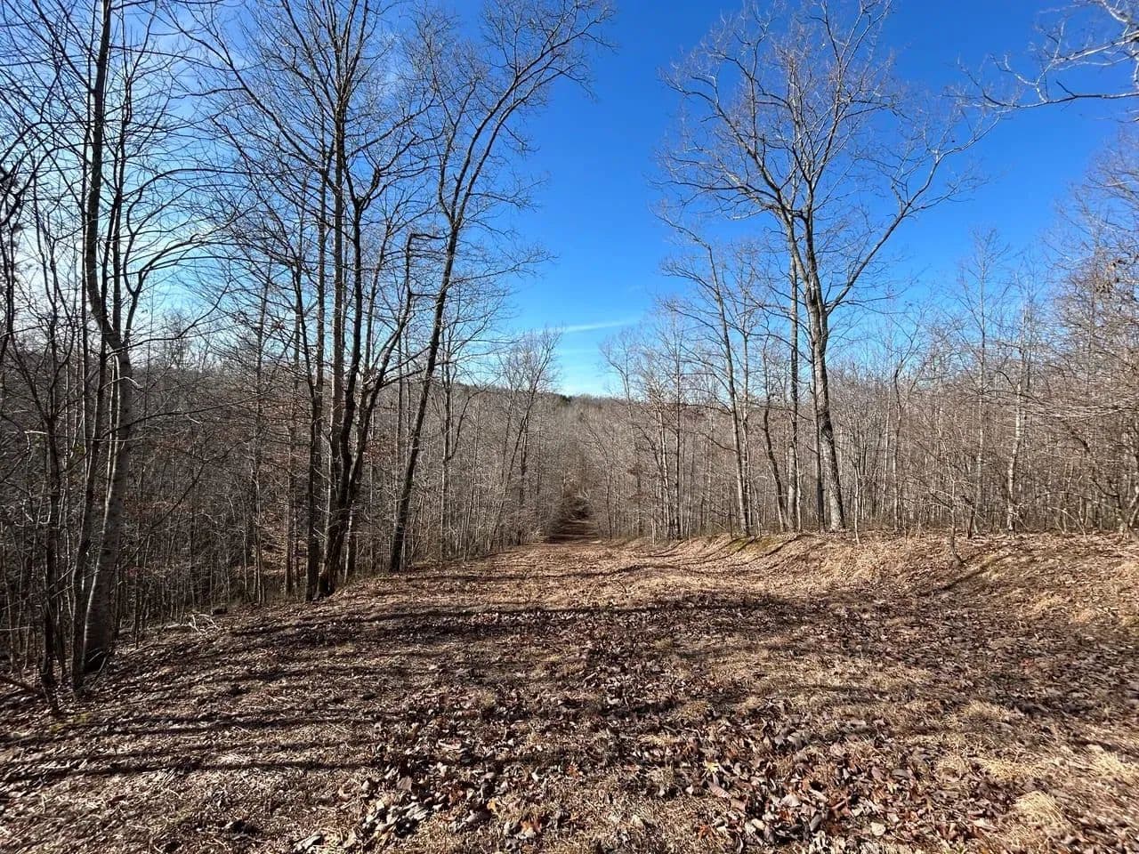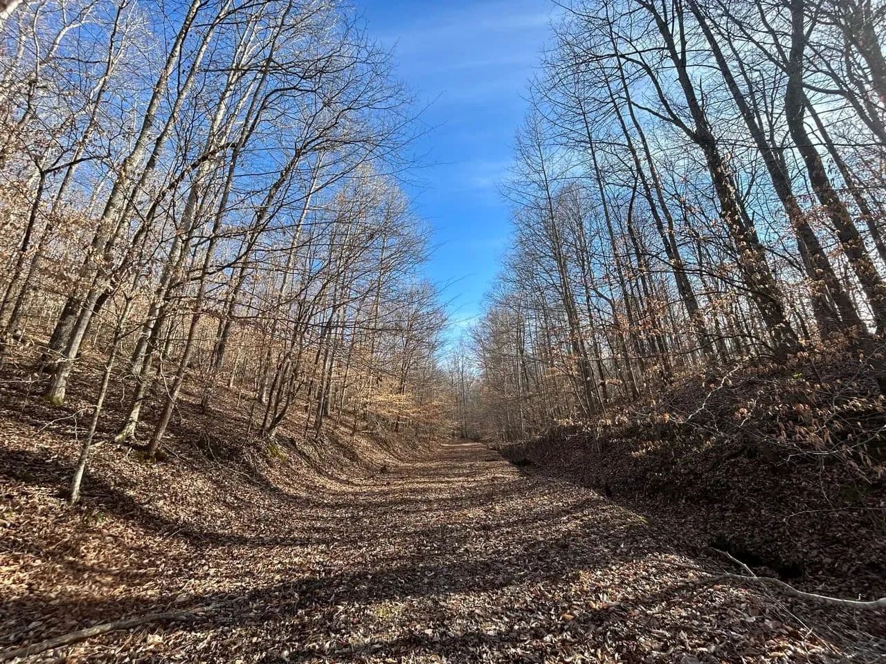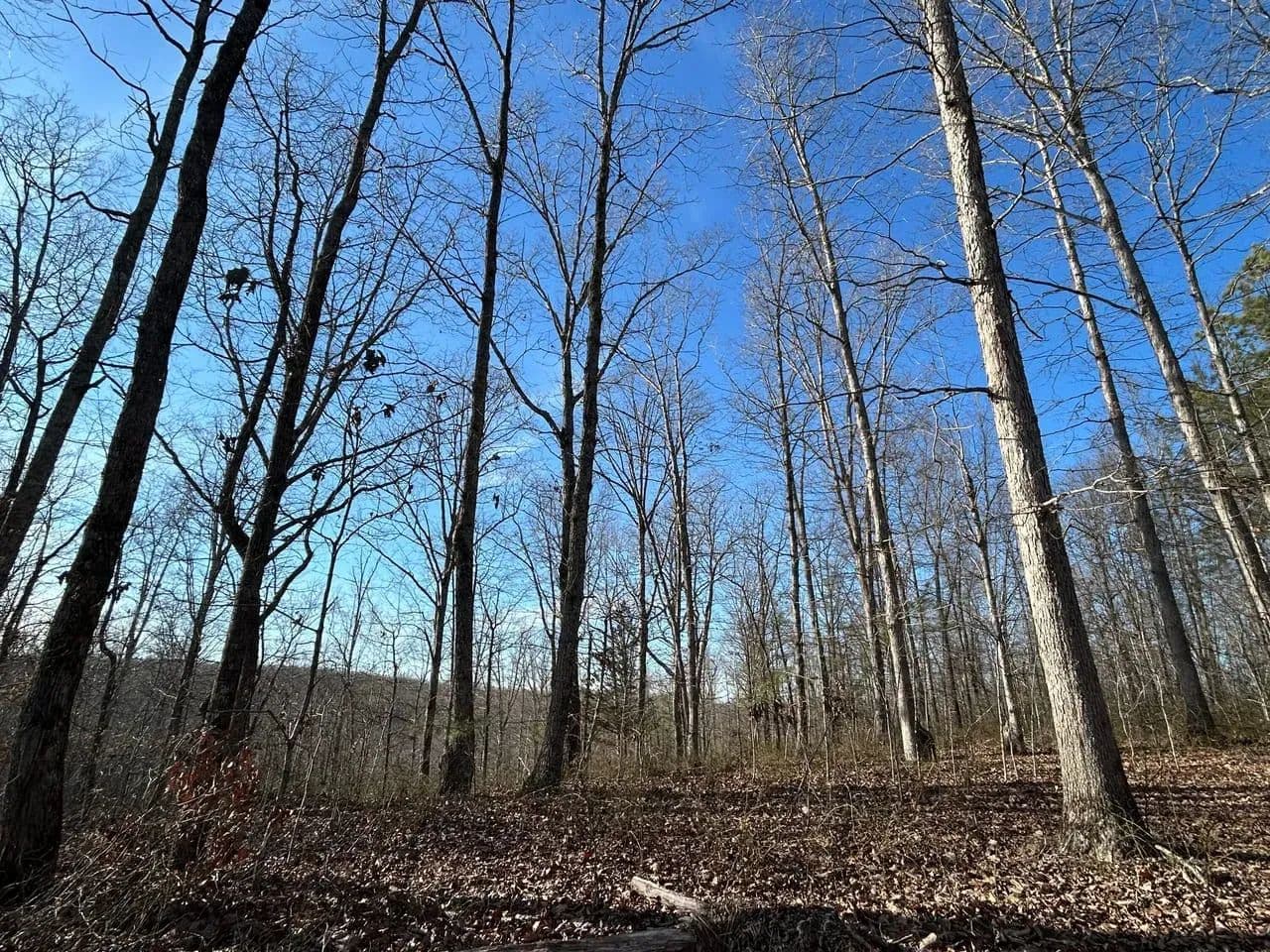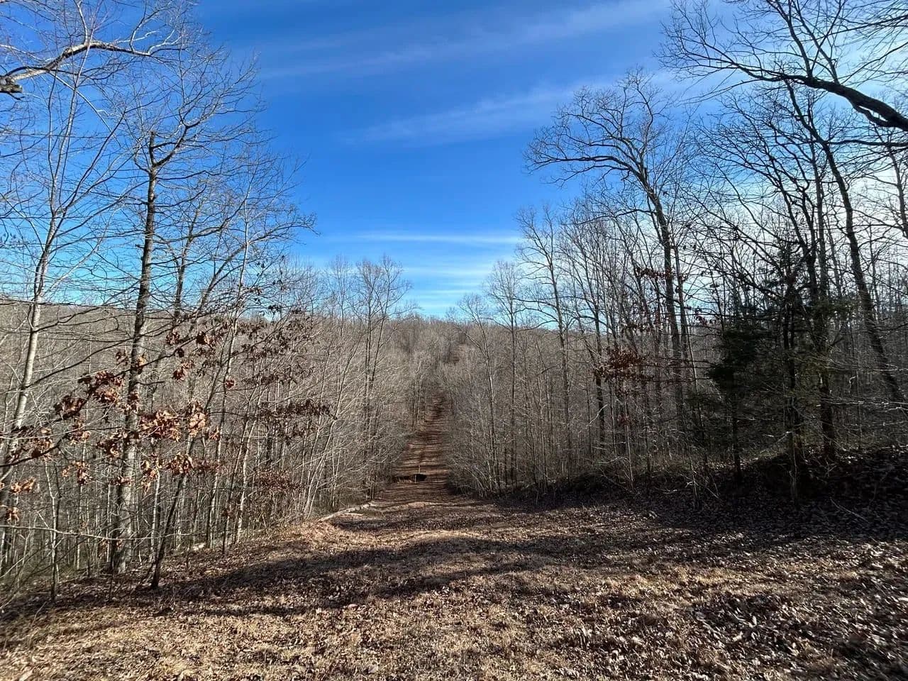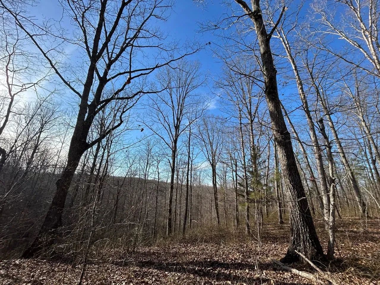 Recreationally, the property shines just as brightly. The area is known for its strong deer and turkey populations, with excellent habitat that consistently supports mature bucks. A tributary of Sulphur Creek creates the western boundary of the land, running year-round and even holding small fish. Expansive flat ridgetops across the tract make it easy to develop food plots, green fields, or future building sites.