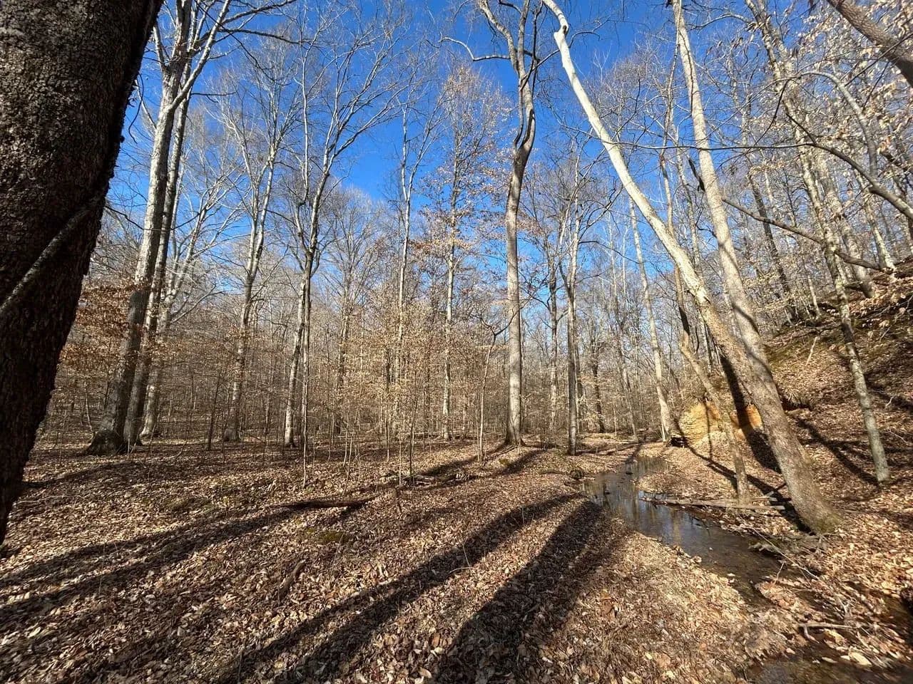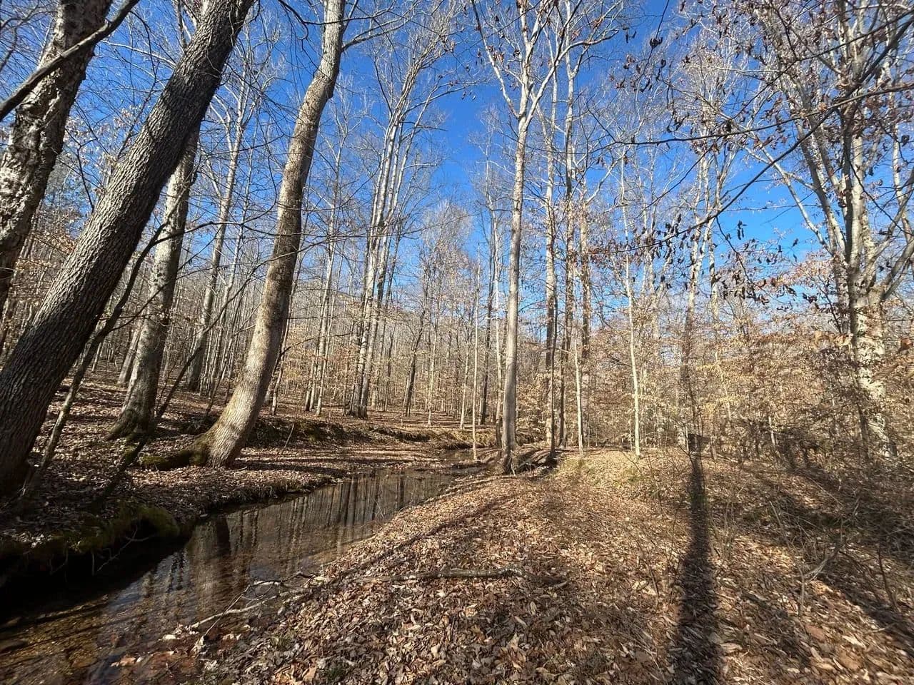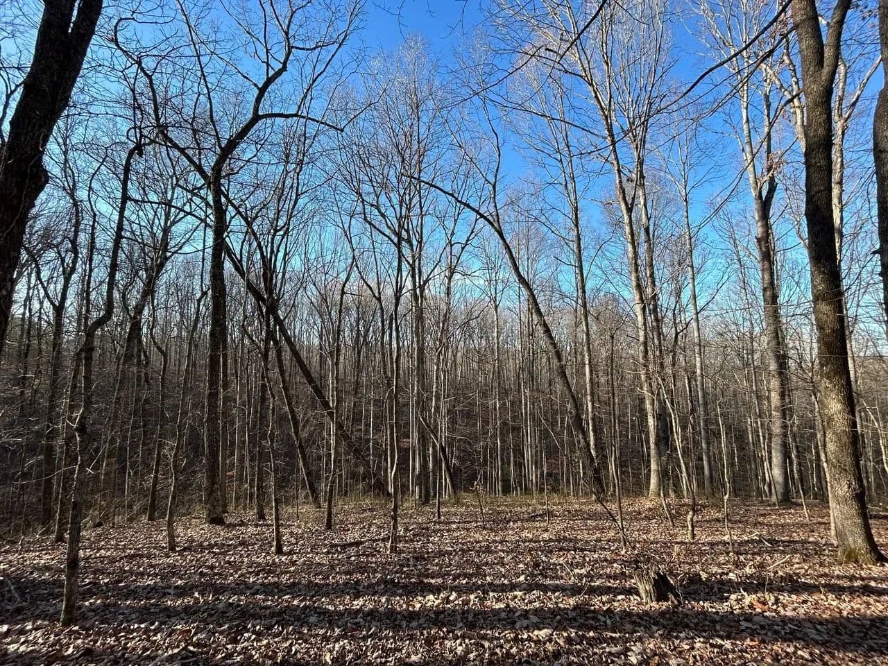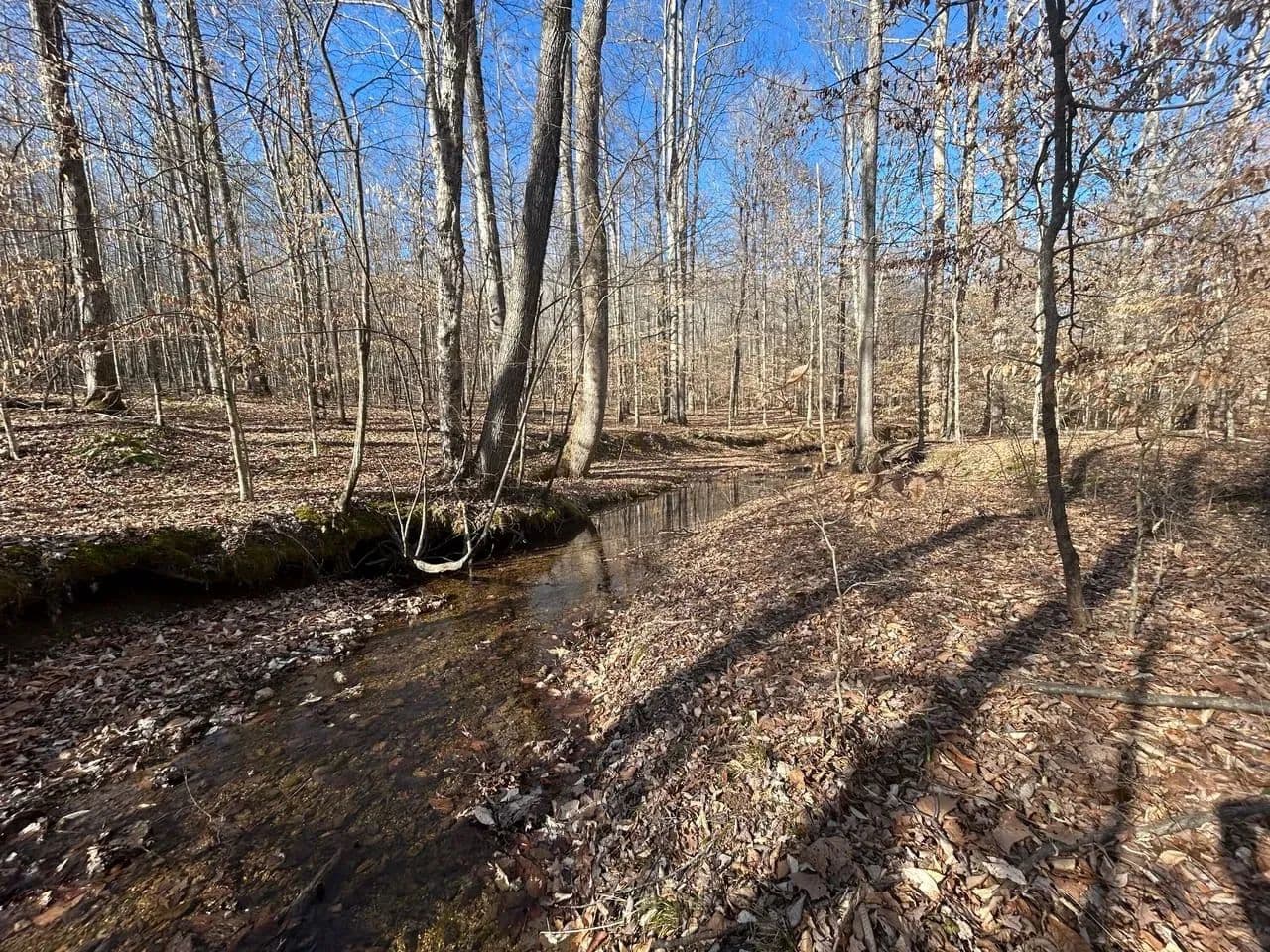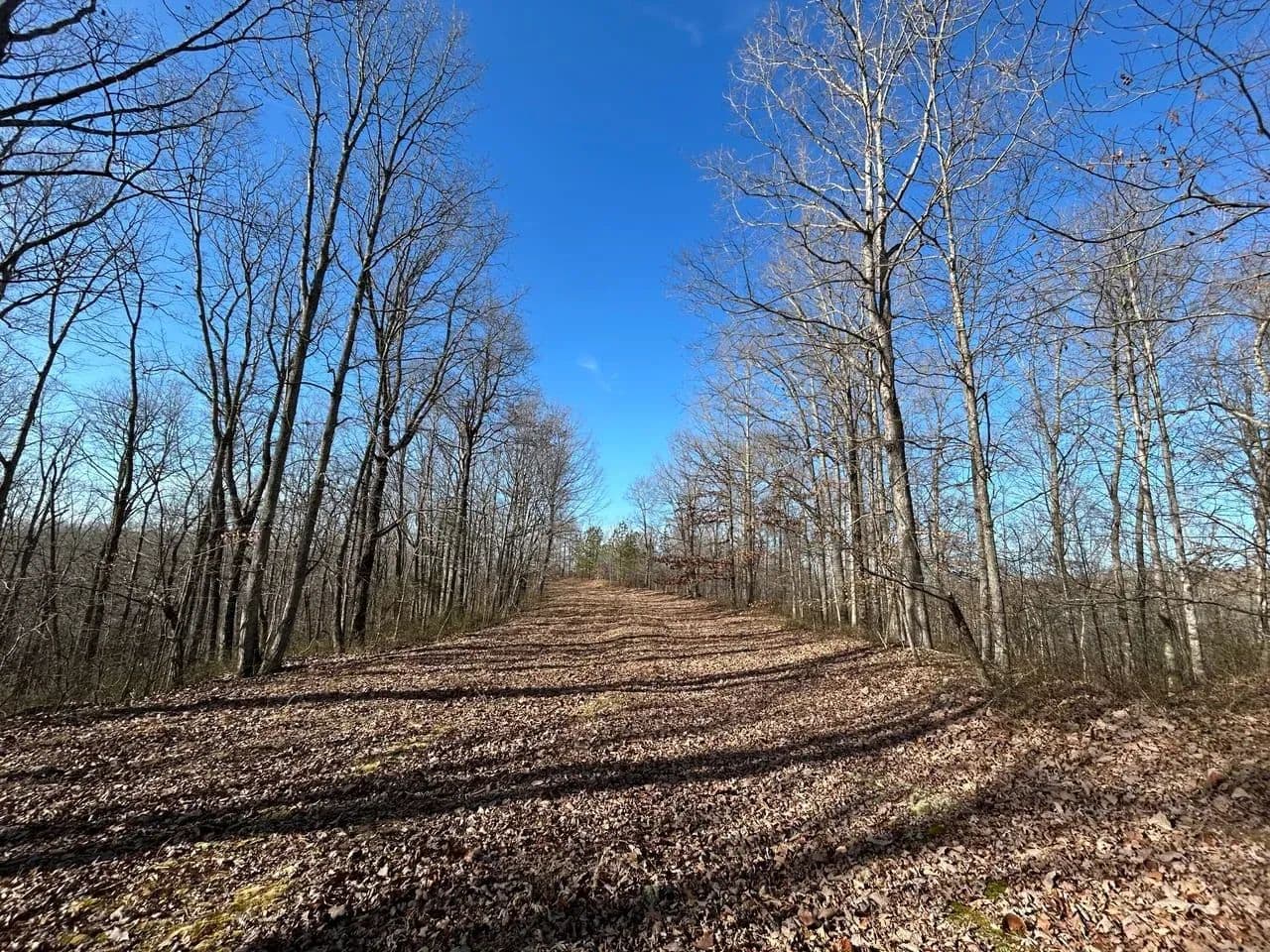 Recreationally, the property shines just as brightly. The area is known for its strong deer and turkey populations, with excellent habitat that consistently supports mature bucks. A tributary of Sulphur Creek creates the western boundary of the land, running year-round and even holding small fish. Expansive flat ridgetops across the tract make it easy to develop food plots, green fields, or future building sites.