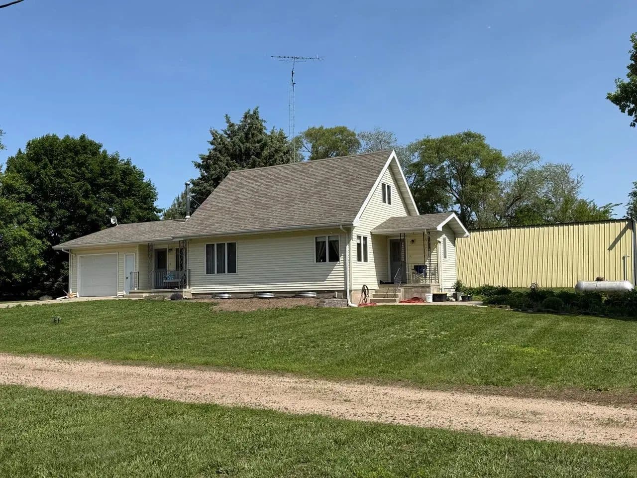 This is a very well kept rural acreage with great paved road access (only 1 3/4 miles north of Hwy. 20) and lots of privacy. The 1 1/2 story farmhouse offers one bedroom and one full bath on the main floor and two bedrooms upstairs.The home has main floor laundry, modern flooring, a propane furnace & central a/c, an unfinished basement, a covered front porch, and an attached garage. The current owner has invested in additional insulation throughout for maximum energy efficiency. Other improvements include several older wood framed outbuildings and a large 40'x70' metal shop/machine shed with 220 volt electrical service and full concrete floor. The property has a nicely landscaped lawn along with a variety of large mature shade trees and surrounding shelterbelts. The 10 acres surrounding the building site has well established grass and wind protection and would be very well suited to keep a horse or livestock. Acreages such as this with modern updates, a large machine shed, and convenient paved road access are difficult to find. This property has been extremely well cared for. Call to set up a showing today. Note: The home is currently occupied and will be shown by appointment only, to pre-qualified purchasers. Directions: From Brunswick, NE: Travel north of Hwy. 20 on 527 Avenue for approximately 1.75 miles. 2024 Taxes: $1,724.22 Parcel #000521600