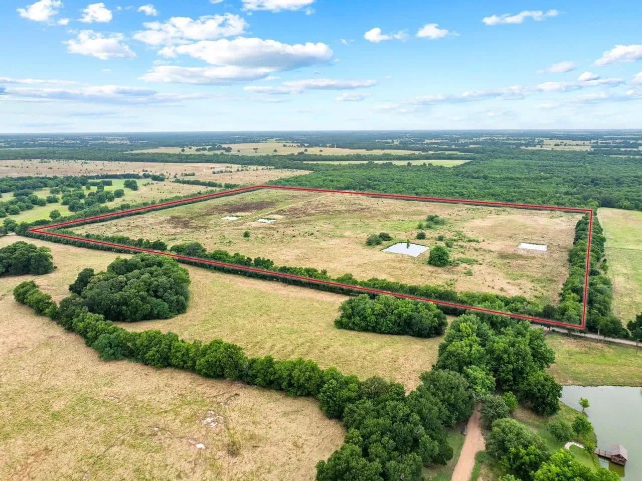 69+- Acre recreation and Ag parcel located in Klondike, Texas in Delta County. Situated just minutes West of Cooper Lake and bordering Cooper Lake WMA. This fully fenced property with ample country road frontage offers the perfect combination of recreation and agriculture. 3 stocked ponds, scattered trees, good grasses, fenced and ready to go. Good bottom ground with strong grasses for running cattle or potential for building duck impoundments for hunting. An abundance of white tail deer and hogs, coop electric and water available. With its proximity to Cooper Lake and its history of being a great duck hunting lake, there's potential for unbelievable waterfowl hunting! Buy, Dream, Build, and Hunt!