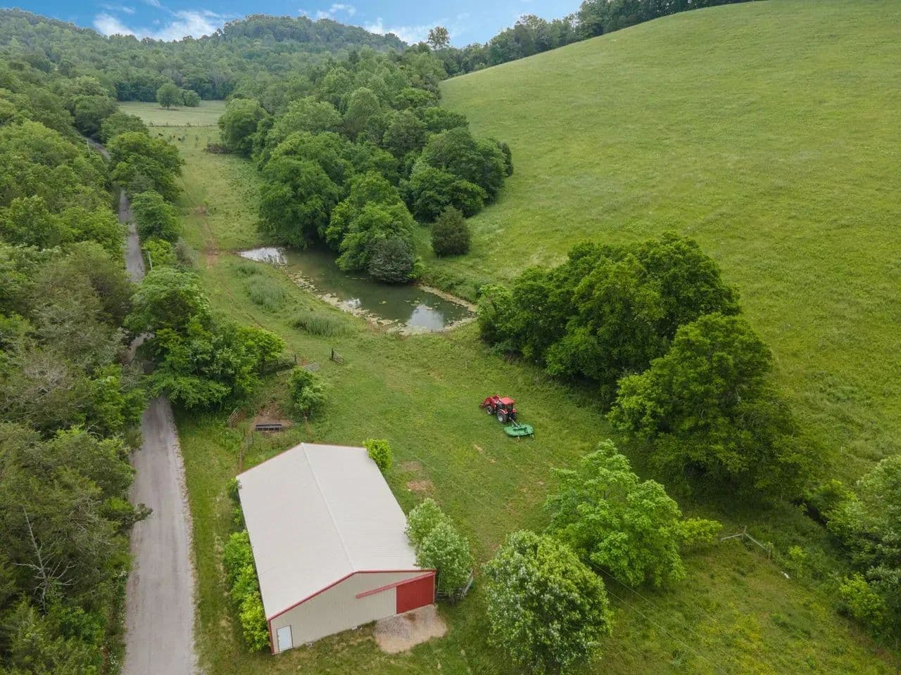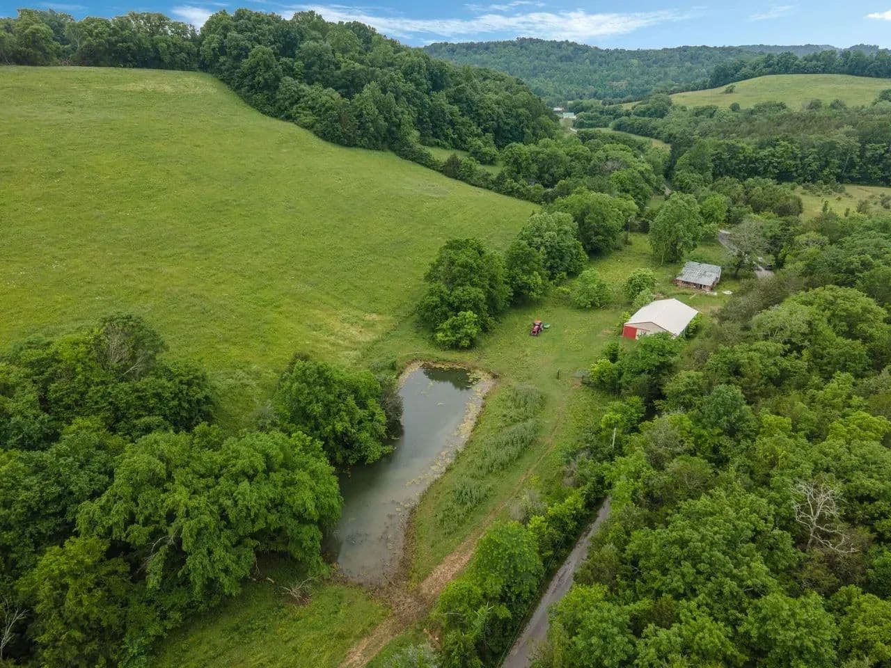 If you are ready to get back to the land and live more self-sufficiently, this 30.43 property offers the perfect foundation for your homestead dreams. Located along I-65 corridor between Nashville and Huntsville, it combines peaceful country living with easy access to nearby cities and services. You'll find 20 acres of fenced livestock ready pasture,10 acres of timber for deer, turkey, trails, foraging, firewood. Gently rolling hills that are both scenic and functional. Spring-fed pond and creek-ideal for watering animals, gardening or simply enjoying nature.2400SQFT building provides plenty of space for tools, storage, barn.