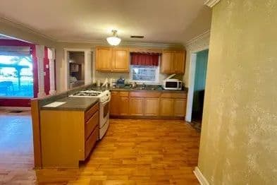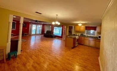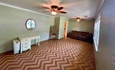 This 3-bedroom, 2-bathroom home is situated in Cleveland, MS, in Bolivar County. It features approximately 1,970 square feet of heated and cooled living space, along with a one-car carport. Entering from the carport, you'll find a convenient laundry/mud room. The kitchen and living room feature an open floor plan, creating a spacious and inviting layout. The master bedroom, located at the back of the house, offers plenty of space and includes a large walk-in closet. The master bathroom is well-appointed with double sinks, a walk-in shower, and a jetted tub. Additionally, there is a formal living room at the front of the house that could serve as a great playroom. The backyard is fully enclosed with a chain-link fence, providing plenty of space for pets and family gatherings.