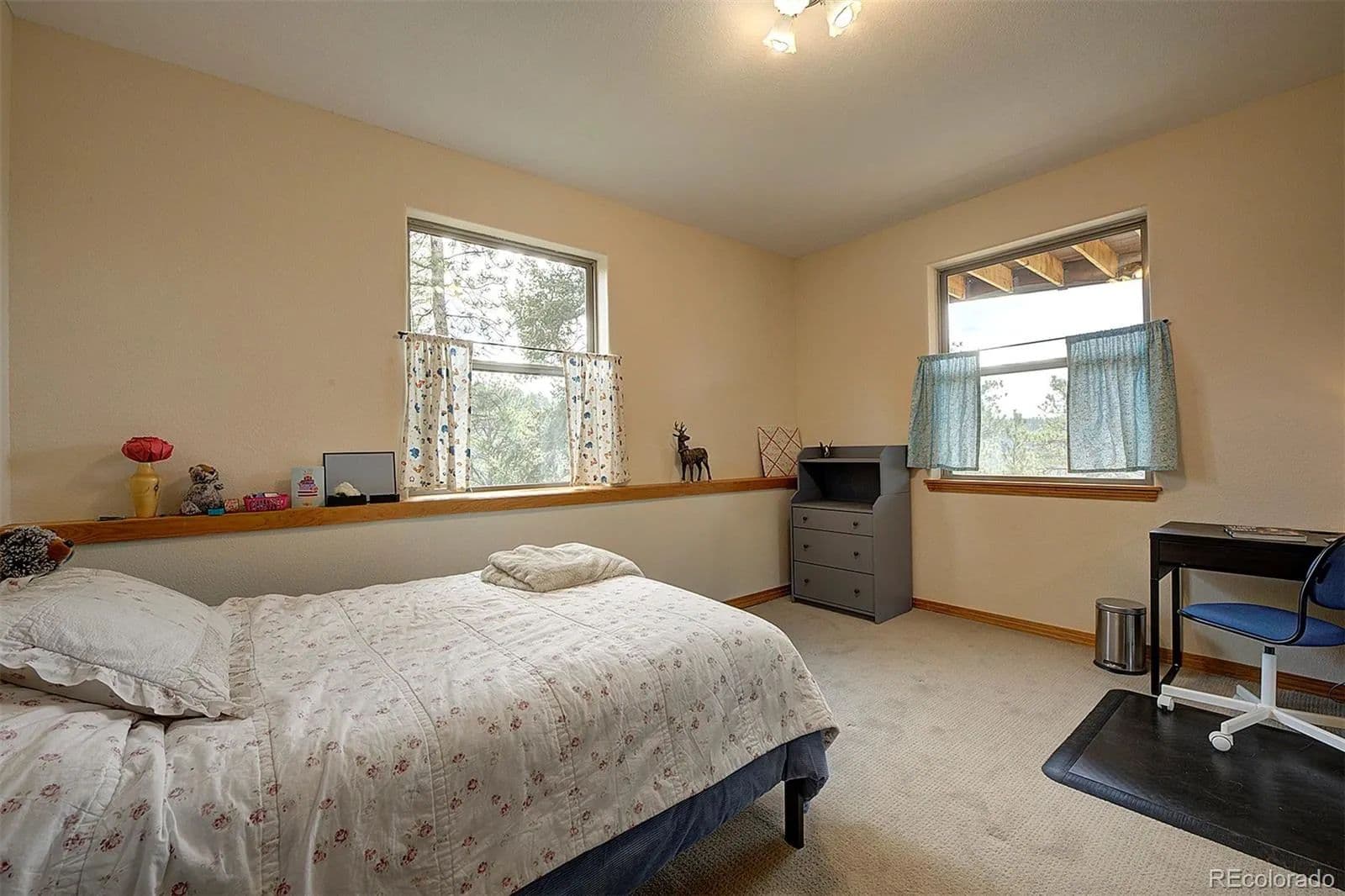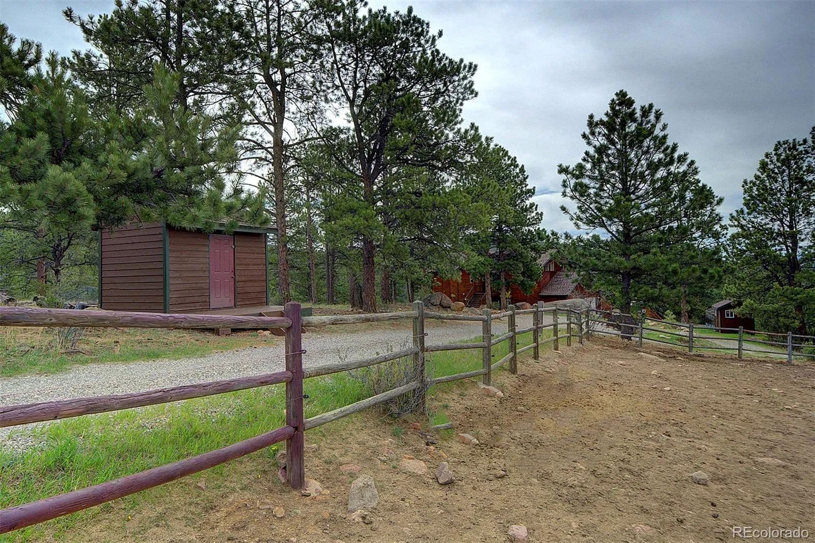 50 Mile Snowcap Views are just one of the highlights you’ll find in this beautifully maintained home and horse property, featuring Pike’s Peak views to the south and Mount Rosalie views to the north. Tucked in a tranquil cul-de-sac on 5 pristine acres is this rare blend of rustic charm and modern convenience. Entering the beautiful foyer, your eyes are drawn across the great room to the expansive windows and those breathtaking views. Throughout the home, tile and newly refinished wood floors seamlessly complement warm wood vaulted ceilings and trim. The kitchen is a dream with granite counters, stainless appliances, plenty of counter space and stunning custom cabinetry. This was a builder’s home and the details combined with a warm, enduring aesthetic show the care taken in design and quality of construction. On the practical side, a new energy-efficient 8 zone boiler provides in-floor radiant heat. In late 2024, all buildings received new roofs, with updated gutters and downspouts on the main home. Enjoy the large deck spaces and expansive outdoor living areas designed for both sun and shade—perfect for entertaining or quiet reflection. Beautifully landscaped with native plants, expertly crafted flagstone pathways, everything integrates seamlessly into the natural surroundings, featuring megalithic lichen-covered boulders and majestic Ponderosa pines. A new 3-rail cedar fence with integrated coated wire ensures security for pets while keeping wildlife out. Equestrian enthusiasts will appreciate the barn/run-in shed, large paddock, 60'x100' outdoor arena, and pasture. A charming, predator-proof chicken coop (The Chicken Palace) offers generous space for free-range birds. With easy 30 minute access to the western metro area, 60 minutes to downtown Denver, 70 minutes to Denver International Airport or just 90 minutes to world-class skiing, this peaceful retreat combines the best of mountain living with modern comfort.