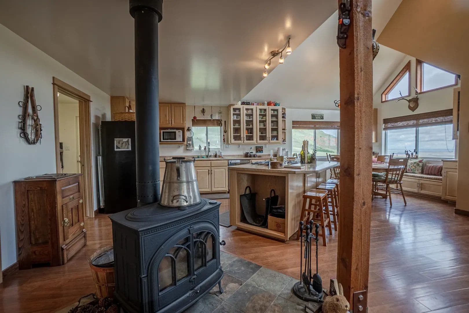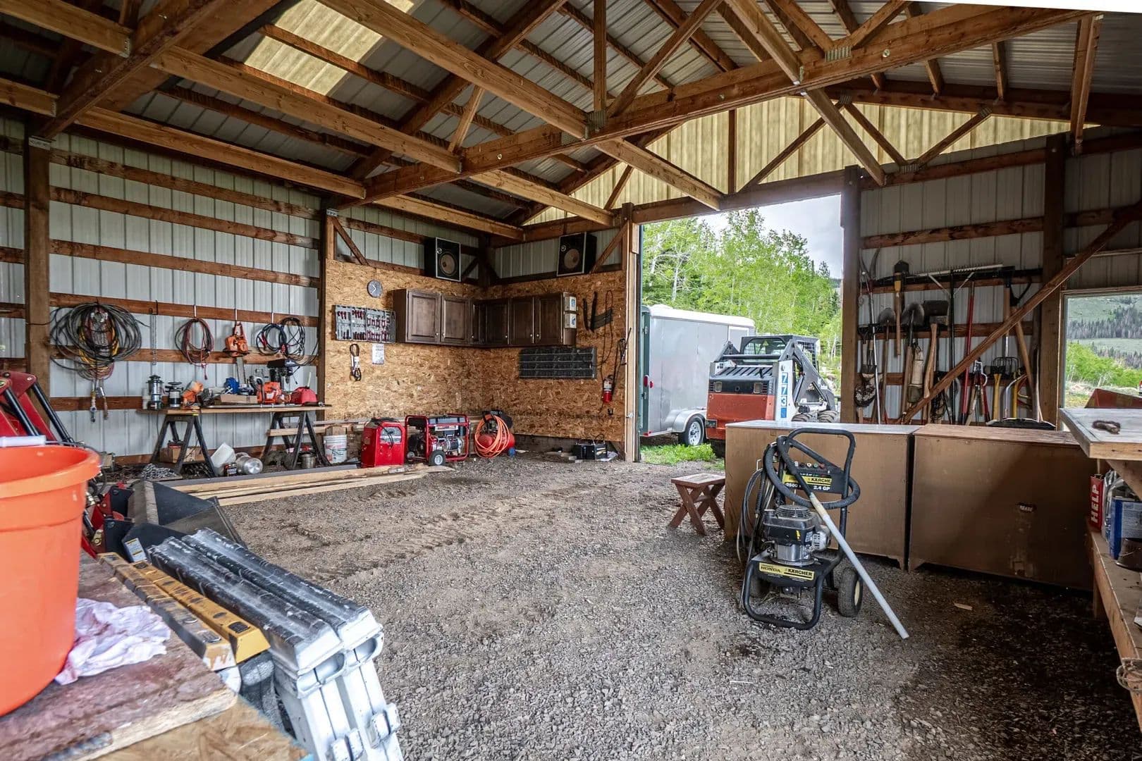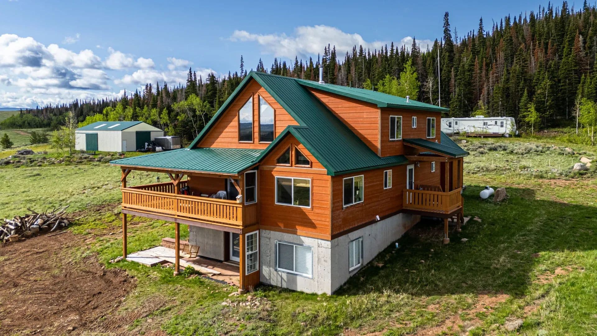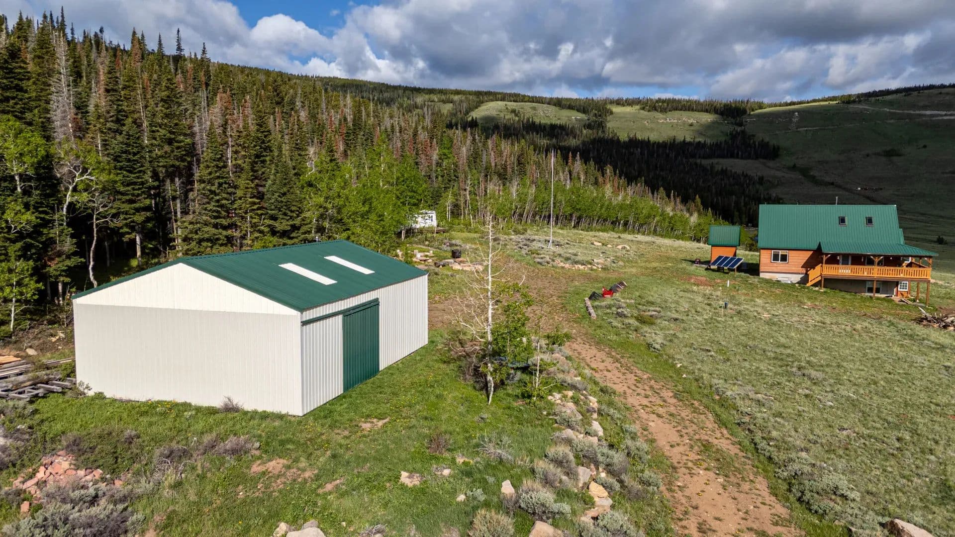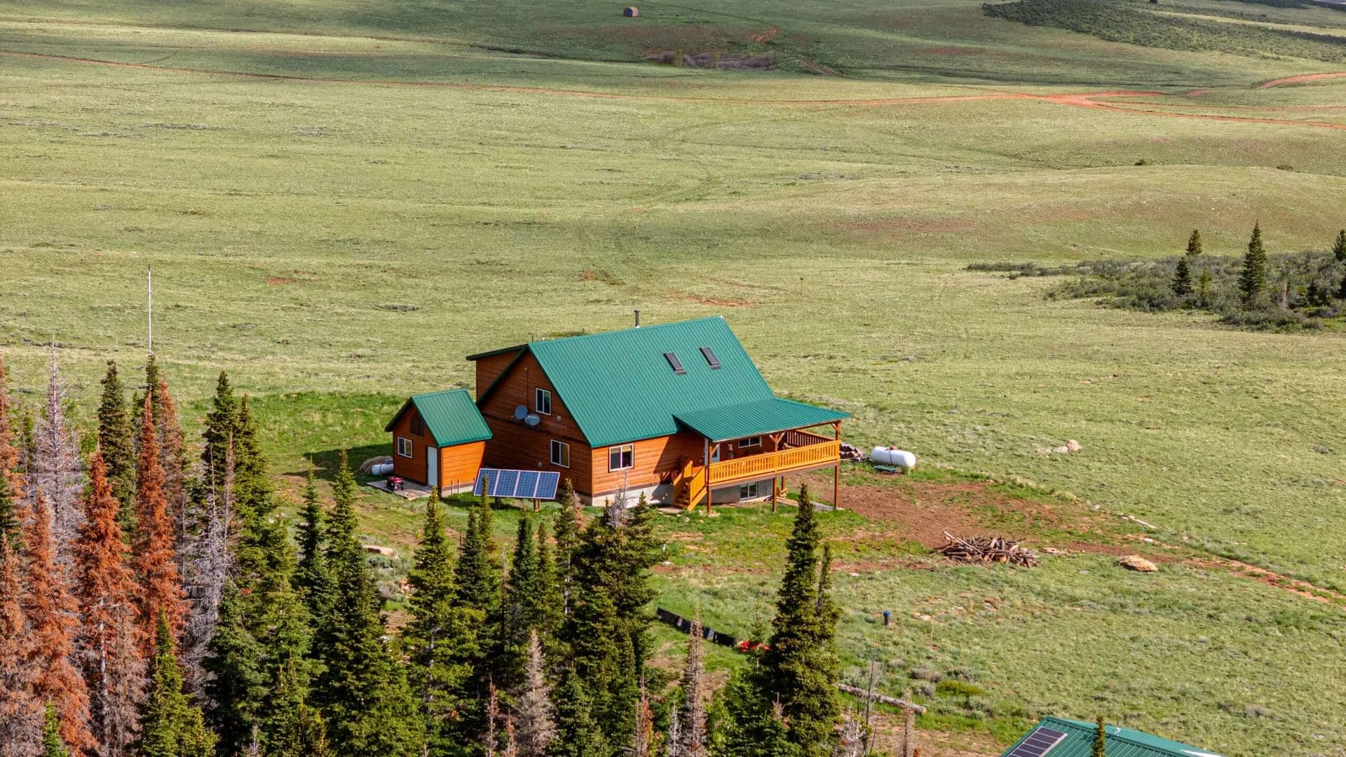 Improvements About 30 minutes south of Laramie, Wyoming at 8600′ in elevation, you’ll find a beautiful 3353 sqft off-grid yet fully utility-equipped home built in 2005. And this is not a rustic mountain cabin, notice custom cabinetry and 1 ¾” doors are commercial grade, solid alder and anything but ordinary. From the LVP flooring to the rounded drywall corners, the prewired speaker system and entertainment area, the nearly new LG washer dryer combo in the laundry/mud room, no expense was spared. This is over 2000sqft of finished space, and yet there is a full, unfinished, nearly 1300sqft additional, walkout basement for an expanded living area, storage, or just whatever else you want to use it for. There is even a high-end AMF pool table that will help add to the relaxation factor while you’re away from the hustle and bustle. The basement also houses the mechanical room, water system, additional stubbed in bathroom, and incredibly easy access to winterize the water lines. Fully off-grid yes. A very elaborate solar panel and batteries with a 15kw Generac backup generator with it’s own propane fuel tank, and plug in access for another generator and wind turbine capability, all in their own dedicated building make up the overbuilt power system. A deep water well, septic system and 500 gallon propane tank round out the complete utility setup that makes this self-contained property so unique. But that’s not all, there is also a 1200sqft metal building with 11’ door and power to it. How about a 32’ travel trailer and deck that comes with the property. There is also a nearly new skid steer and tractor with multiple attachments that you can purchase for an additional price. A greenhouse has been started and just waiting for new owners to finish.