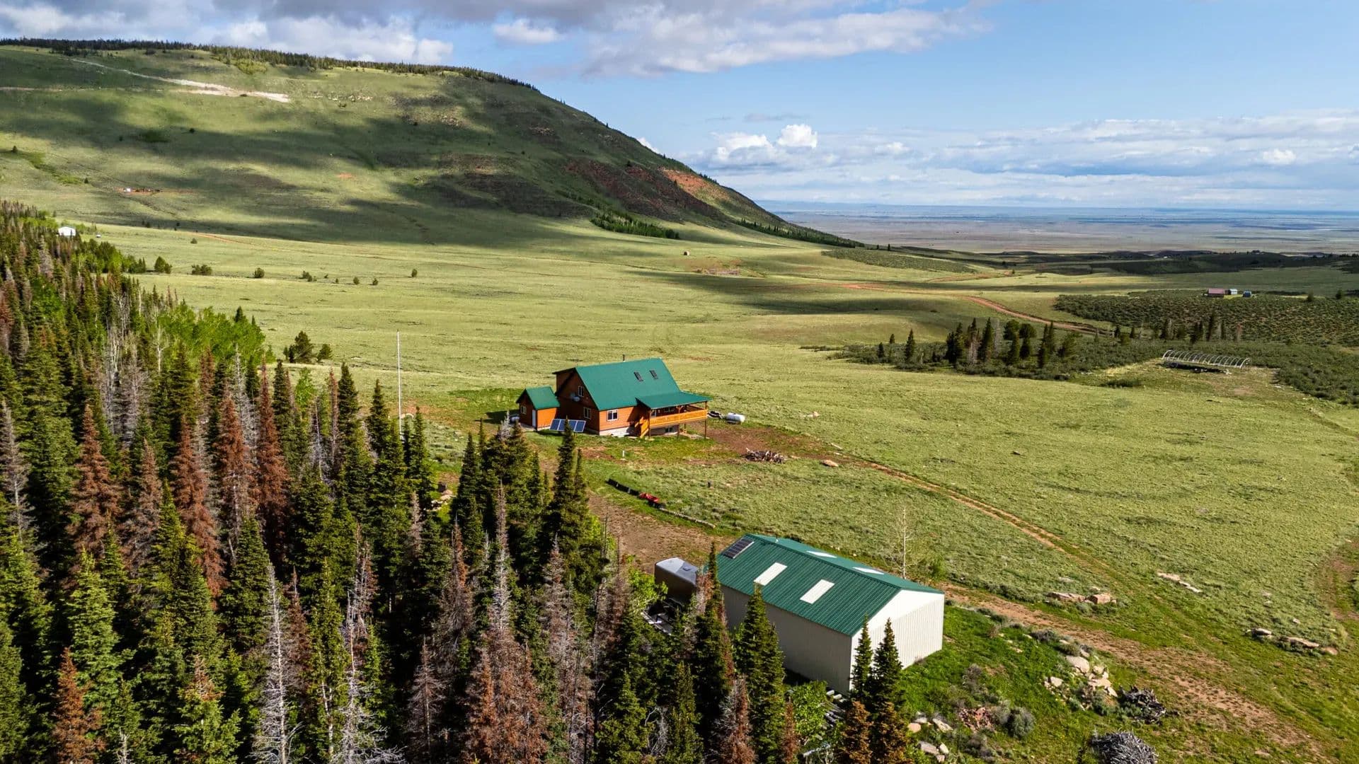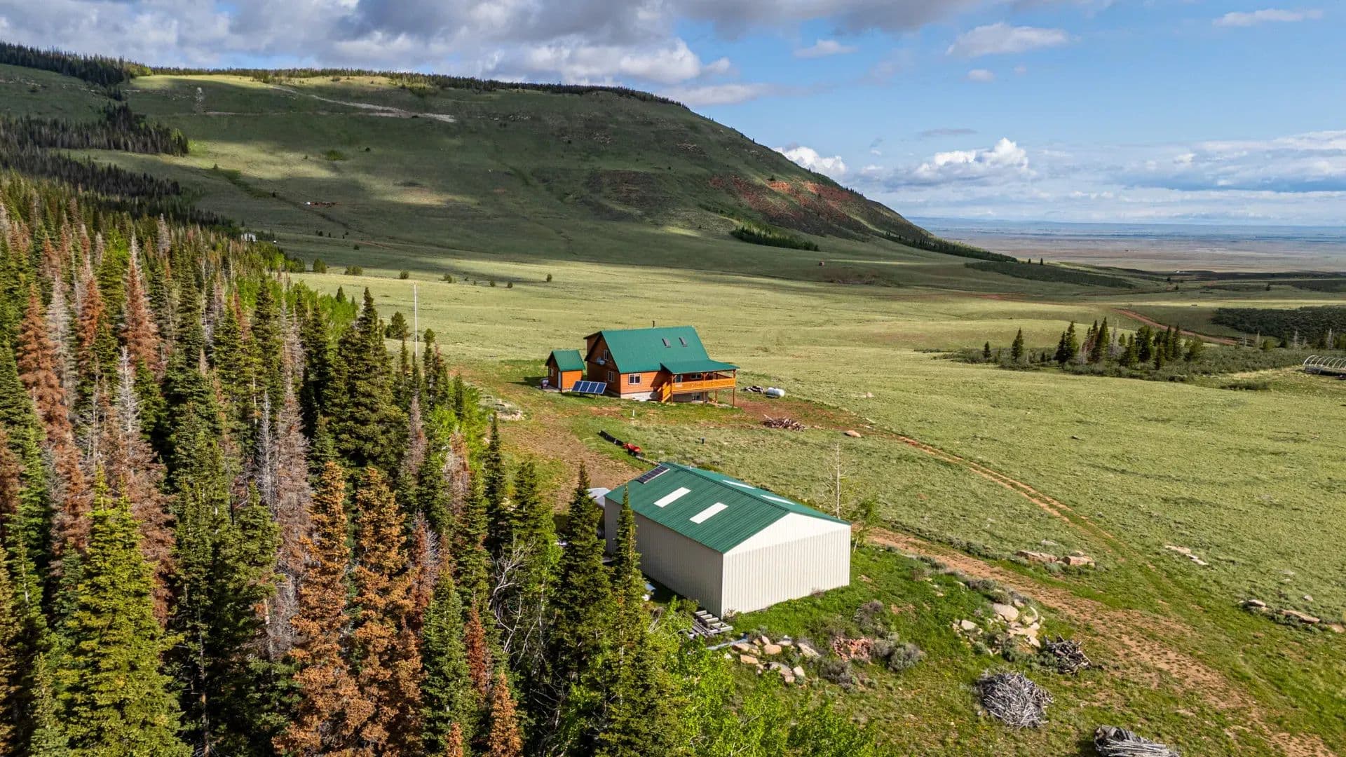 Nestled at the base of Bull Mountain in the Sand Creek region of north-central Colorado, this property offers unlimited potential. Enjoy year-round recreation, cool summer temperatures, and a thoughtfully designed off-grid home that sacrifices none of life’s comforts. Featuring high-end upgrades and finishes rarely found in off-grid living, it’s the ideal escape from everyday routines. Land At 72+ acres, this property sits on a high plateau near the base of Bull Mountain and has views for miles. It’s a combination of open prairie, pines, aspens and meadows. There is a wildfire buffer from the forested area for safety reasons