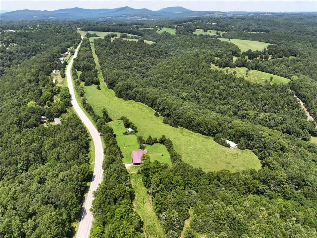 This 21.68-acre tract in Hasty, Arkansas offers a rare combination of natural beauty, usable land, and development potential in the heart of Newton County. With over 700 feet of frontage along Highway 123, the property is easily accessible and offers the flexibility to divide or build directly from the highway. Located just 9.5 miles from Western Grove, it's close enough for convenience while still offering the peace and quiet of a rural setting. The land is a mix of open pasture and wooded areas, with a variety of topography that includes gently rolling hills, steeper slopes, and flat sections ideal for building. Scenic views overlook a creek bottom, stream, and a small pond-making it a great choice for nature lovers, homesteaders, or anyone seeking a retreat in the Ozarks. A rustic cabin(no utilities, glamping only) and a good-sized barn are already on-site, adding to the property's charm and utility. Interior roads lead to the creek bottom, though some clearing may be required for full access. Public water is available at the road, and with no deed restrictions, the possibilities are wide open. Mobile homes are allowed, and the mix of cleared pasture and mature hardwoods make it suitable for livestock, agriculture, or timber. Whether you're looking to build, farm, hunt, or simply enjoy the beauty of Newton County, this property offers a strong foundation for your vision.
