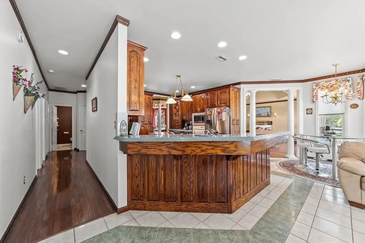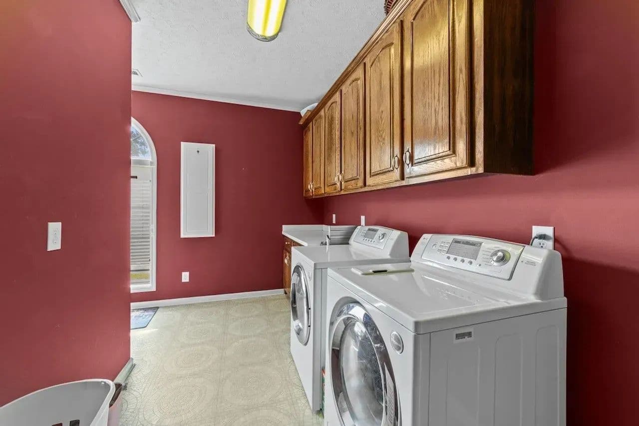 One of the standout features of this home is the large formal dining room, perfect for holiday gatherings, dinner parties, orfamily meals. Just off the main living area, the kitchen includes granite countertops, ample cabinet space, and a layout that’s as functional as it is inviting. A spacious laundry room adds convenience, with room for storage, folding, and organization.