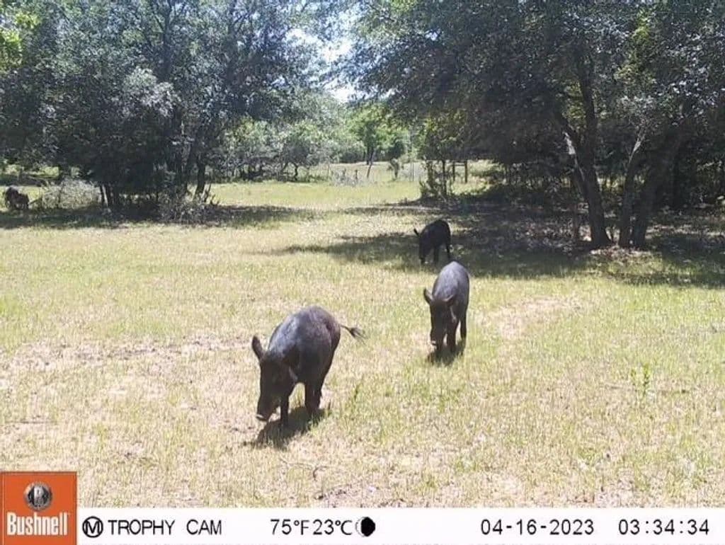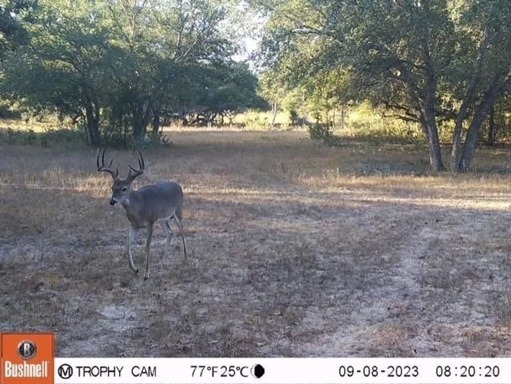 The property is highlighted by a rich natural landscape, including mature Live Oak trees, dense woodlands, and abundant native wildlife. Seasonal Miller Creek meanders through the land, complemented by two ponds, adding to the ranch's beauty.