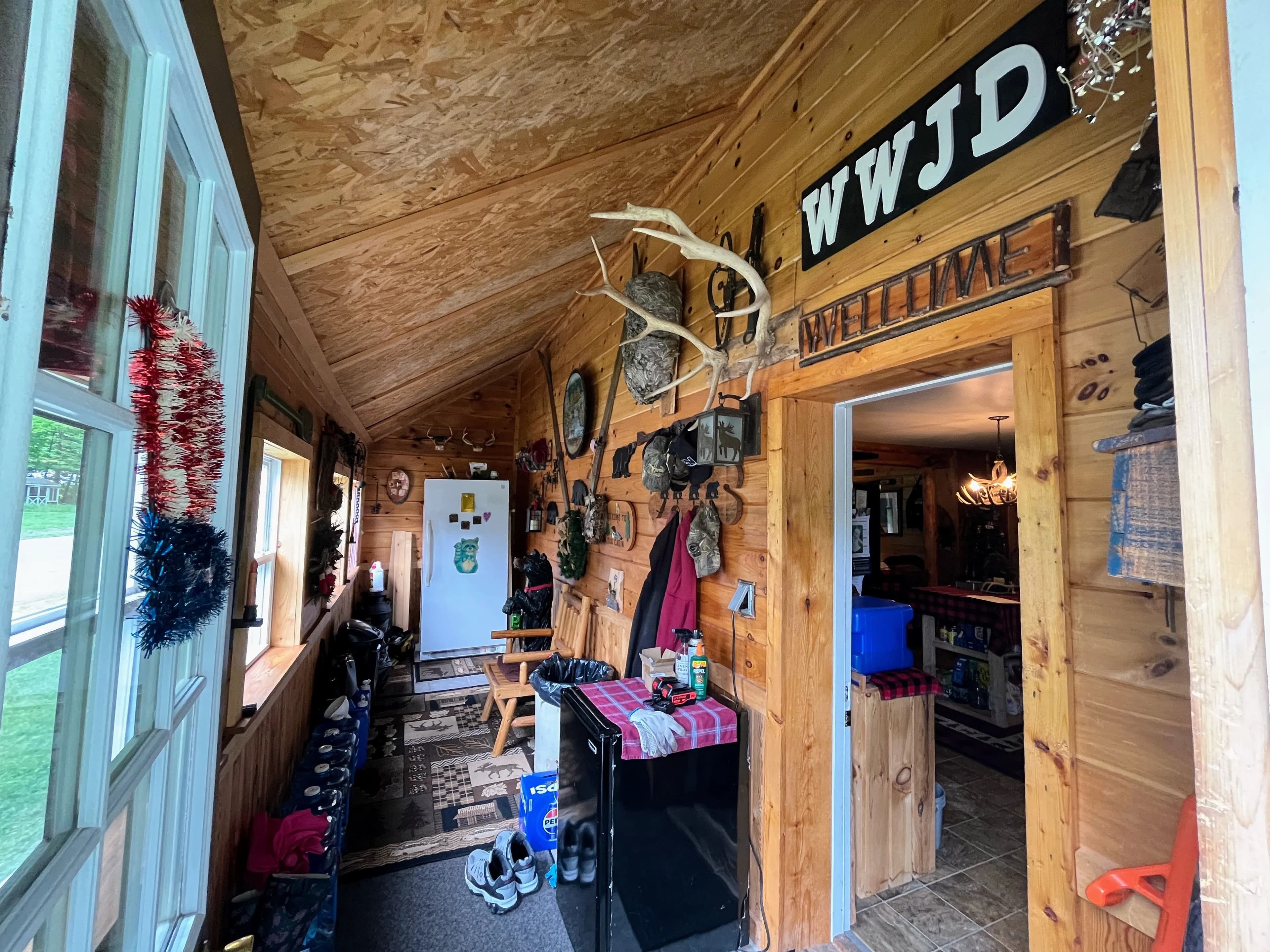 The interior of the home has been thoughtfully finished with warm knotty pine walls and charming Adirondack décor, creating an inviting and cozy atmosphere from the moment you step inside. The living area is equipped with a woodstove, perfect for staying warm and comfortable throughout the winter. There is also a Rinnai propane heater to supplement the woodstove.