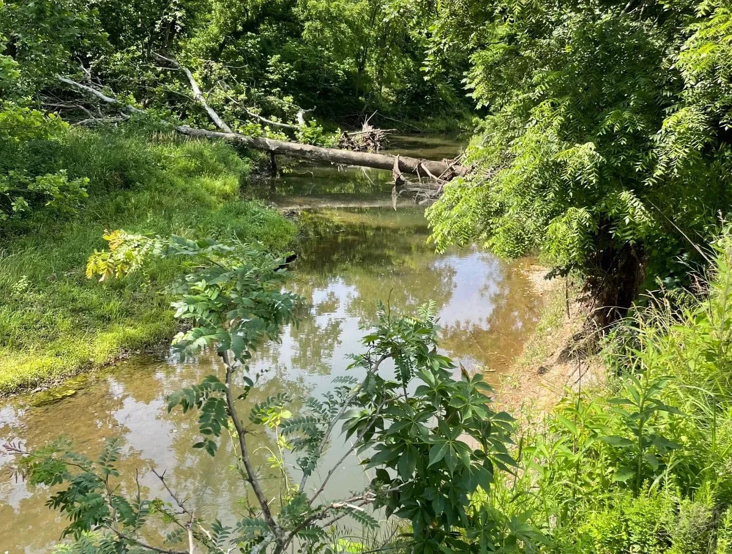 South Wea Creek winds through the property from west to east, adding both beauty and wildlife value. A newly rebuilt lake—27 feet deep and ready to be stocked—offers great potential for a future fishing spot. The property has excellent access, with full road frontage along the north side and an additional access point from a road ending at the southwest corner.