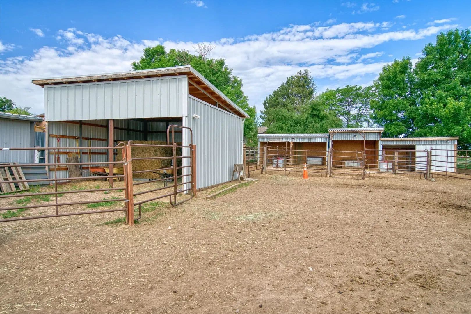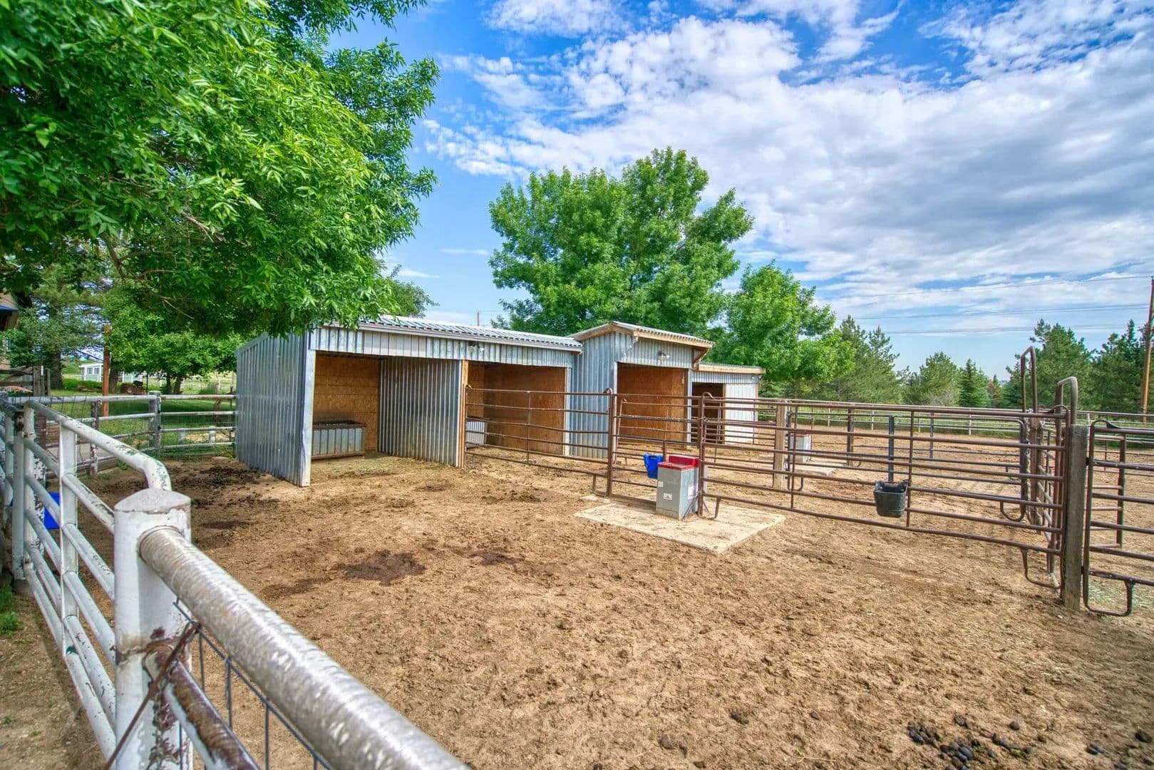 Check out this 2.3 acre horse property conveniently located off of CR 18 just 1 mile east of I-25. The property boasts an updated cozy ranch style home with a two car attached garage and paved driveway. It also includes a separate shop, an open ended hay barn and covered horse stalls with automatic waterers. You will love the mature trees that offer ample privacy and shade for a relaxed rural setting. Note: Seller is related to Seller's Broker. Land The property is 2.3 acres set up turnkey ready for horses with covered stalls and connecting runs with automatic waterers. There is also a paneled round pen and the east side of the property is separately fenced for pasture. Around the house is a nice yard with mature trees and a fenced garden area.