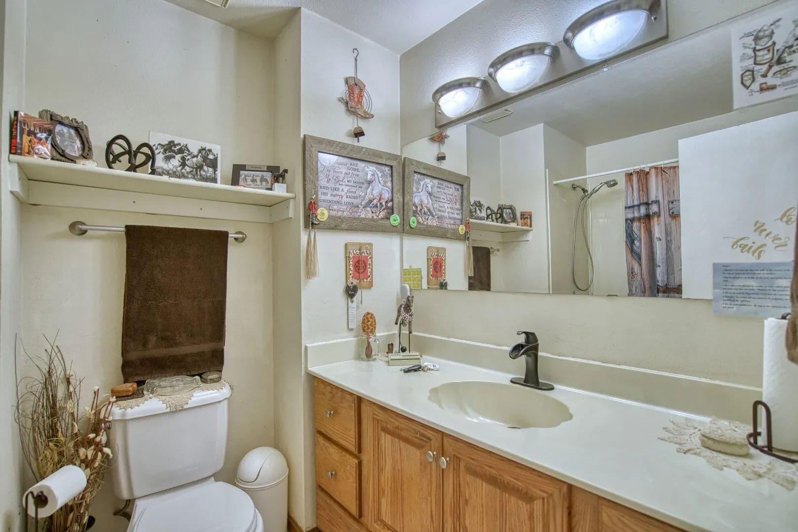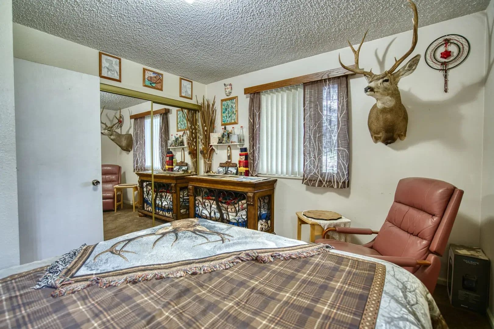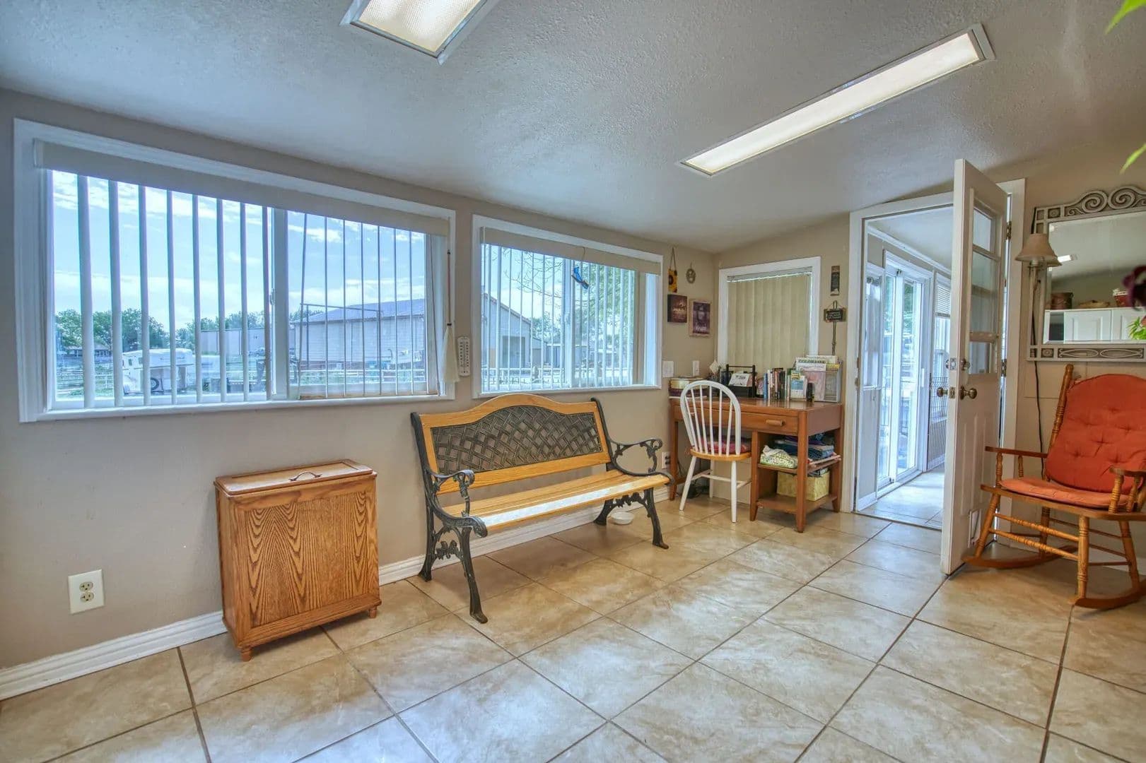 Improvements The updated ranch style home includes two bedrooms, two bathrooms and an office. It includes a front porch sitting area as well as a newer back deck with an adjacent fire pit. Encompassed in the back yard sits a gazebo previously used for a hot tub. In addition to the 2 car attached garage there is also a shop with a covered parking stall. Next to the horse stalls sits a small designated tack building.