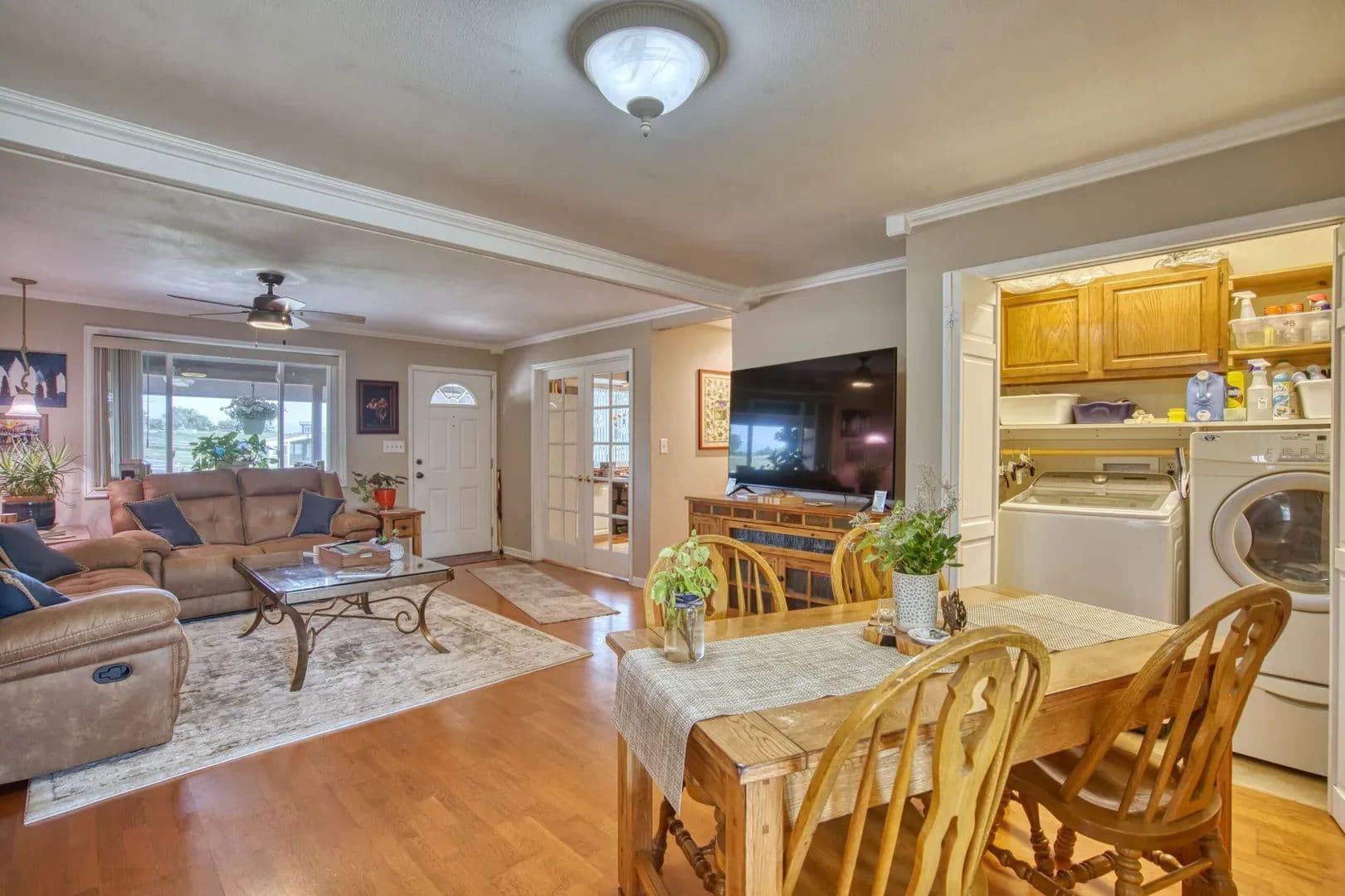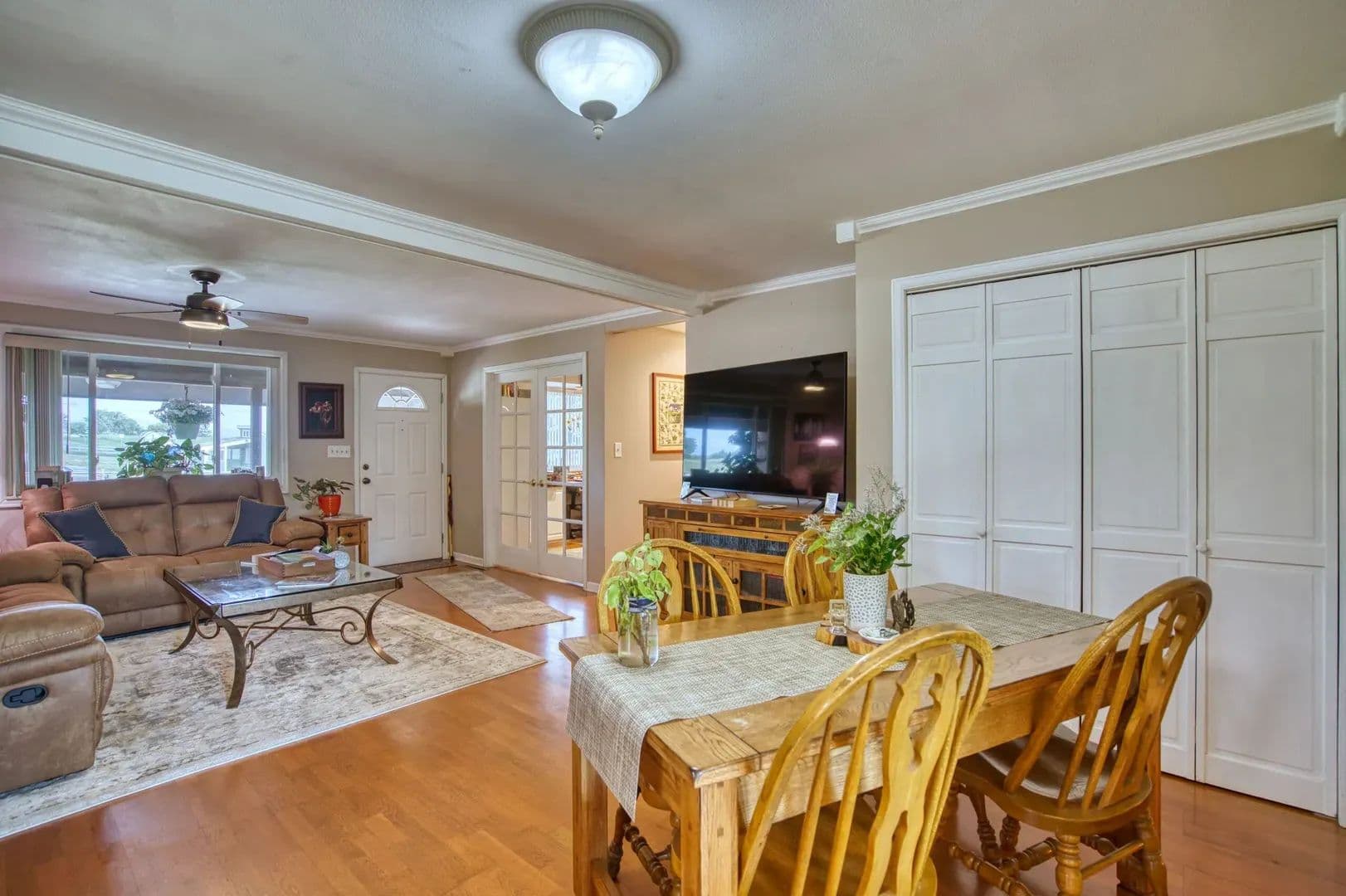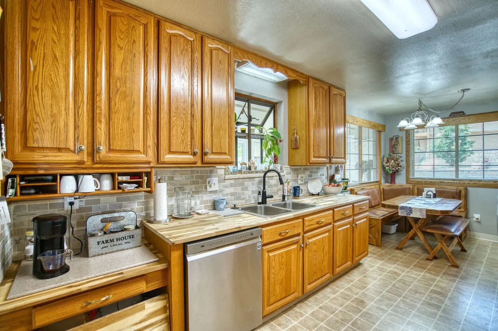 Improvements The updated ranch style home includes two bedrooms, two bathrooms and an office. It includes a front porch sitting area as well as a newer back deck with an adjacent fire pit. Encompassed in the back yard sits a gazebo previously used for a hot tub. In addition to the 2 car attached garage there is also a shop with a covered parking stall. Next to the horse stalls sits a small designated tack building.