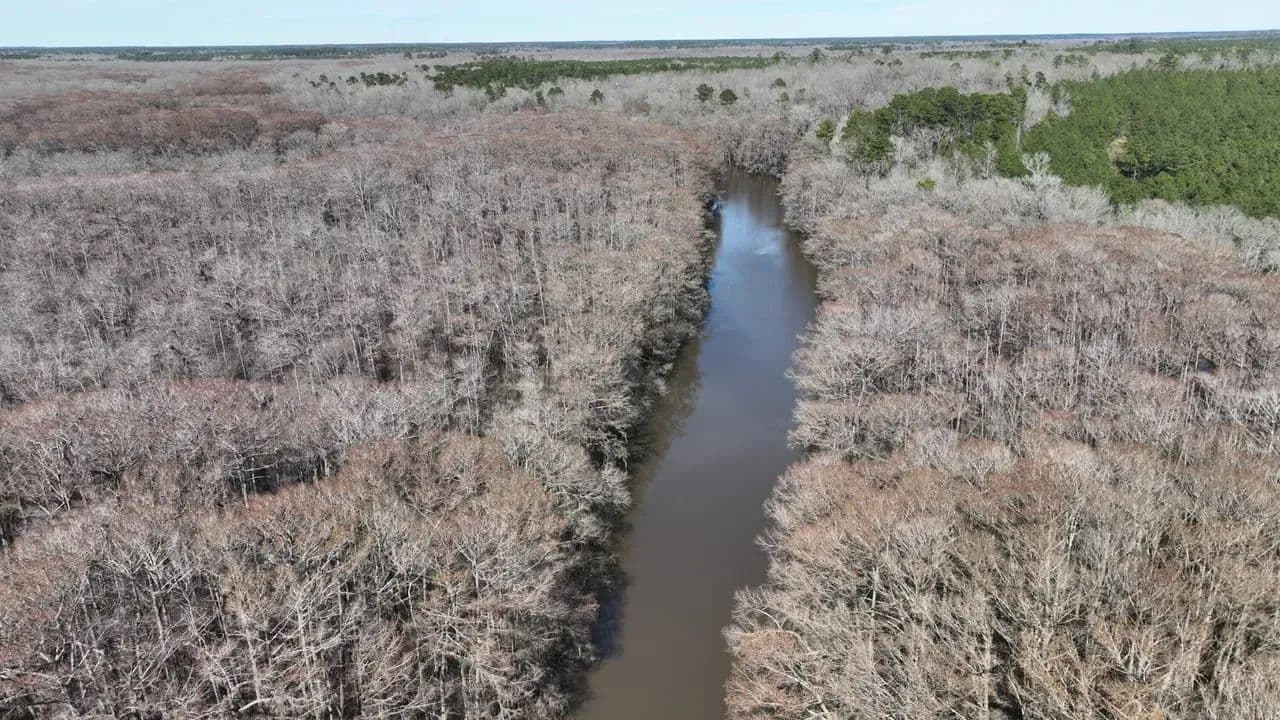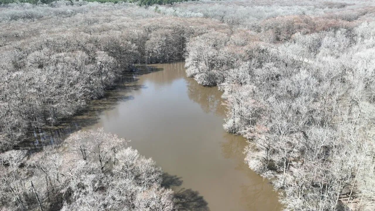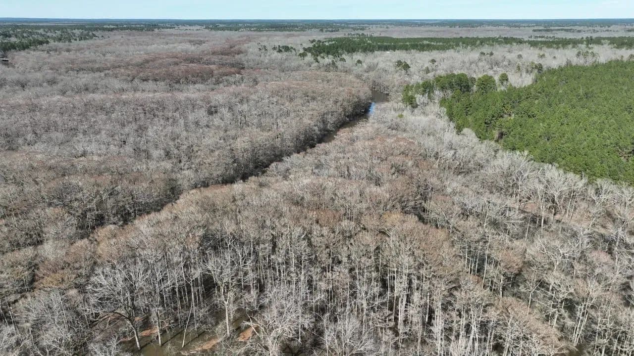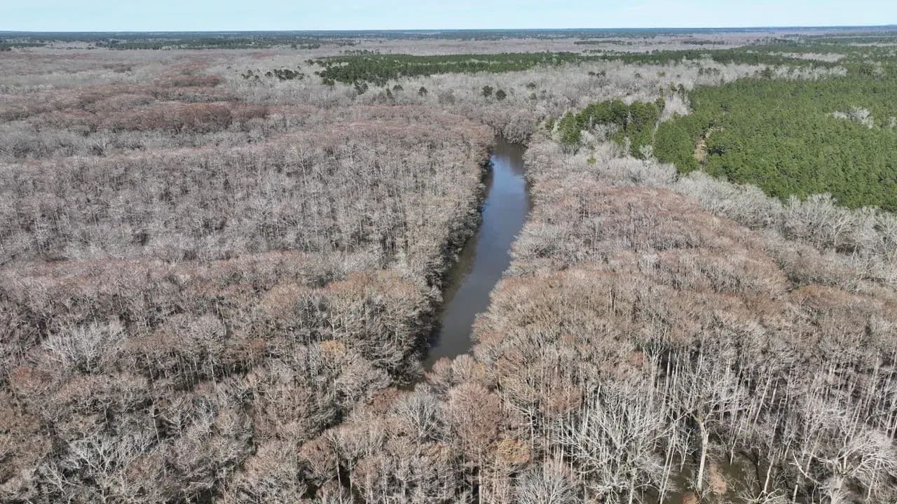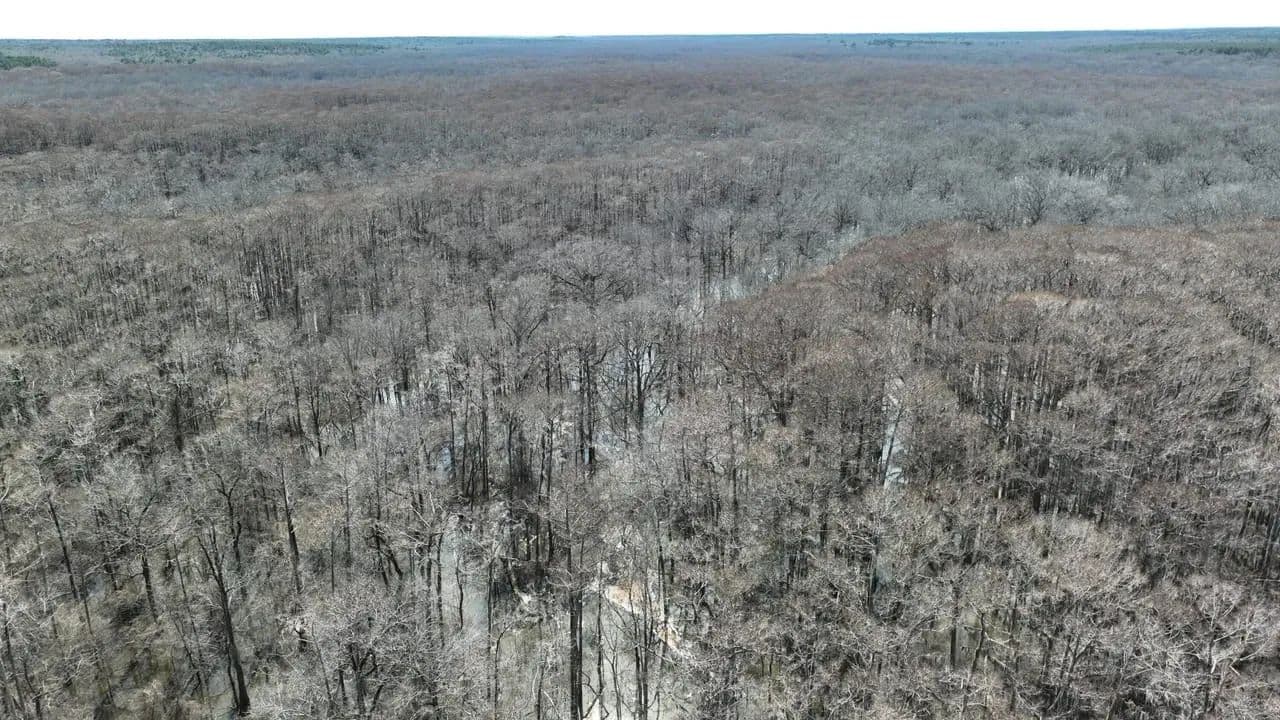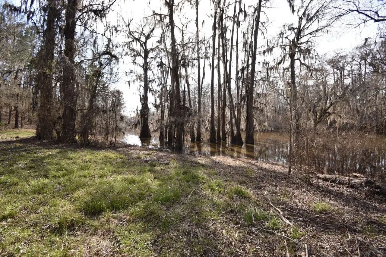 From a 90-foot elevation, you can watch migrating waterfowl settle into seasonally flooded sloughs and hear gobbling turkeys echoing for miles through the bottomlands and ridges. The property blends stunning views with a wide range of ecosystems — from cypress swamps and beaver ponds to rolling pine uplands and mature hardwood bottomland.