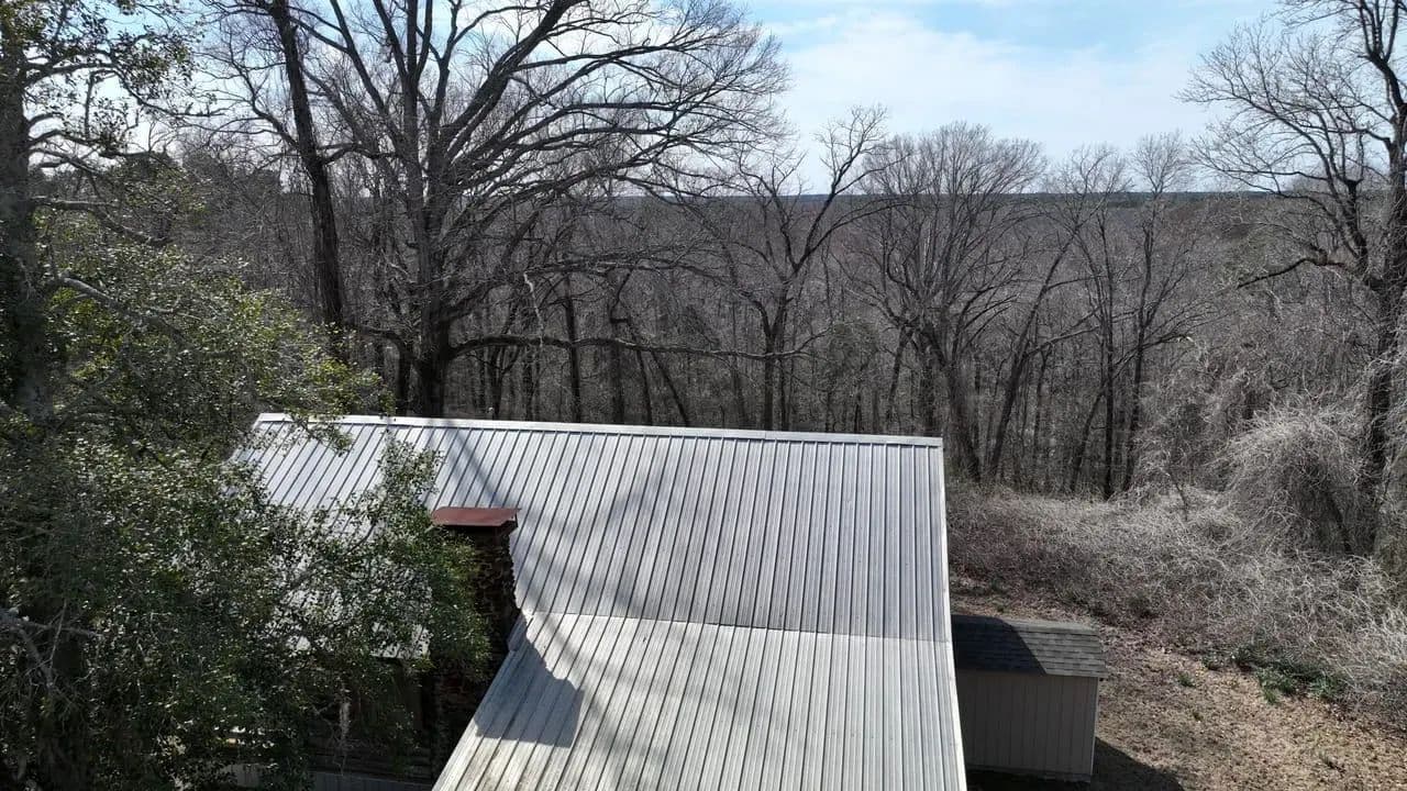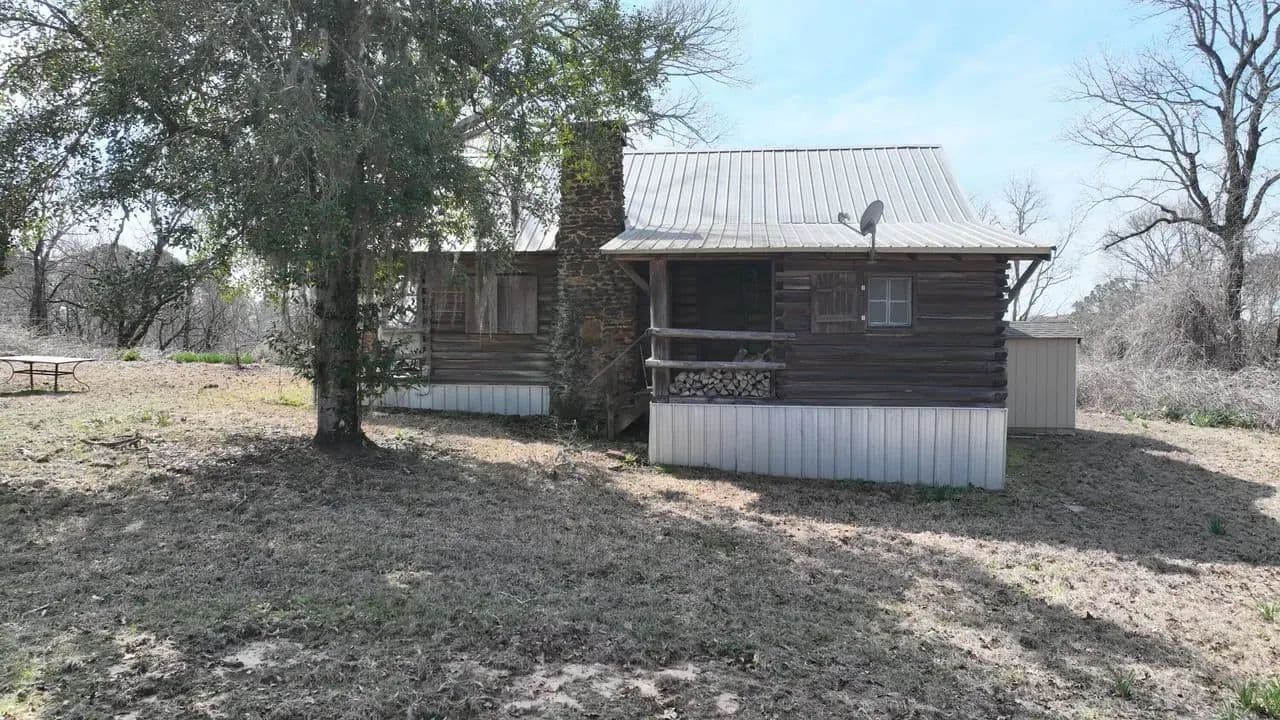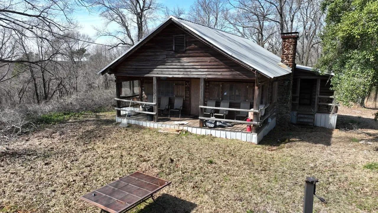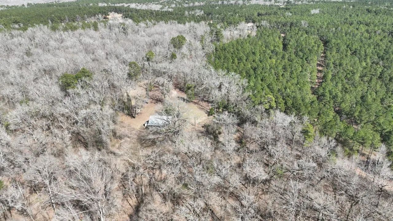Atop one of the ridgelines sits a rustic cabin with a stone chimney, electricity, and water wells, offering a perfect basecamp for hunting, fishing, or quiet seclusion.