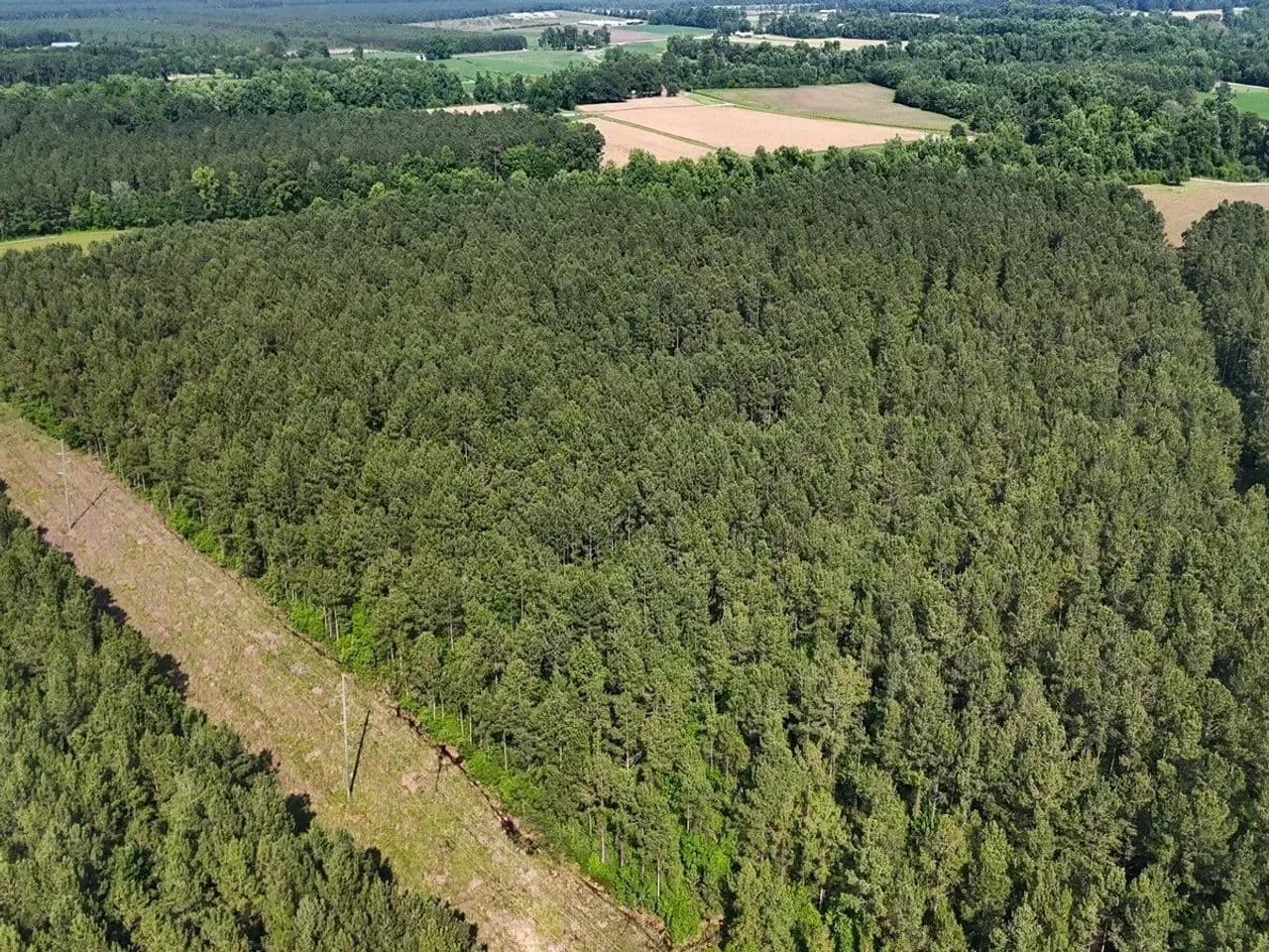 This 96.96 acre property has 2 major sections, divided by a utility easement. Area 1 at the front of the property has approximately 34 acres with 5+ acres of cleared land, 29 acres of 25 year old pine timber, and very little wetlands. There is a Creek along the southern border of the property that serves as a water source for local wildlife like deer and turkey.