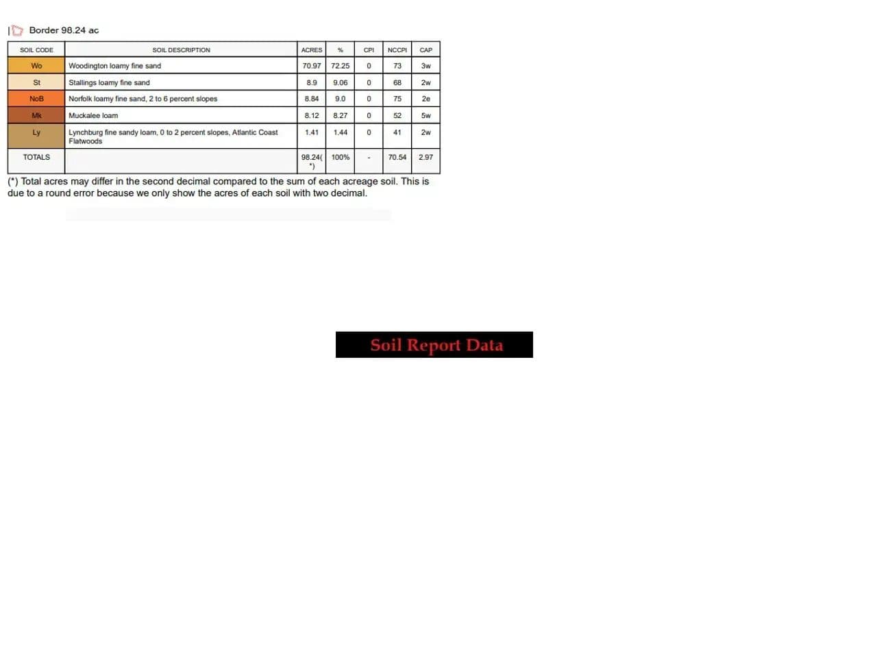 Access to this tract is a breeze with a 20 foot deeded easement for ingress, egress regress and new utilities over an existing farm road. A recent survey was performed in the summer of 2023. The plat map and deed are on file. While no perk test is on file, The 5 plus acres of cleared land in Area 1 are “NoB soils” (Norfolk Loamy fine sand), which is a well-drained and permeable soil. The topography is mostly flat except for the picturesque hill at the front of the cleared acreage. None of the property is within the FEMA floodplain. There is an old family cemetery on site.