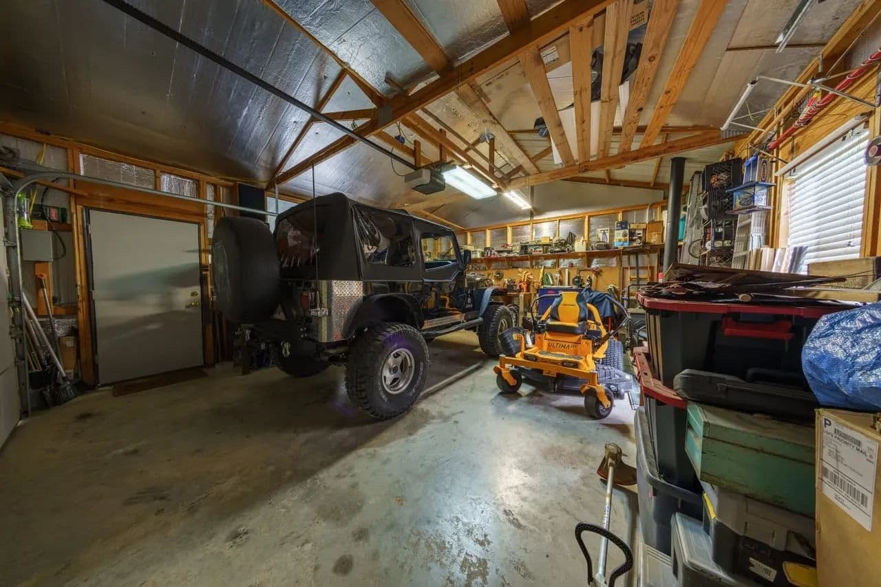 Large shop perfect for woodworking, vehicles, or equipment storage, with electricity, wood heat, and an air conditioner
