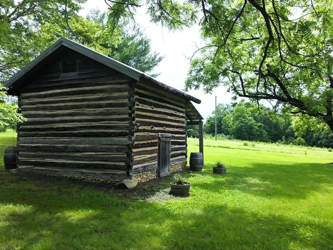 Historic Tobacco Barn: A restored 100+-year-old tobacco barn, relocated with new foundation logs and a cedar log gutter, adds historical charm.