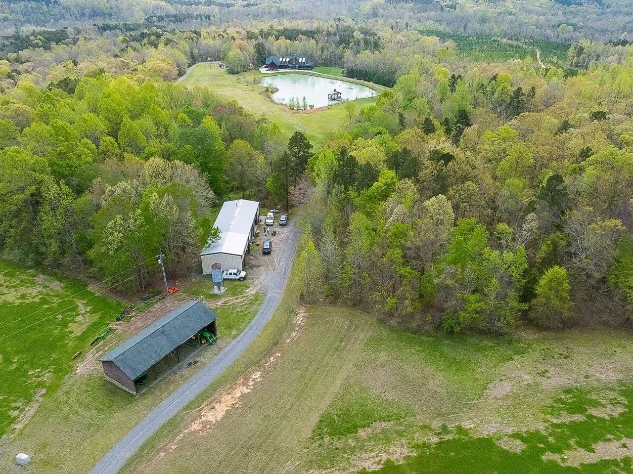 The 2-Acre Pond: Thoughtfully constructed with an overflow pipe, aeration system, and a dock, the pond is stocked with brim, catfish, and largemouth bass. Fish attractors and brush piles enhance the fishing experience for family and guests alike.