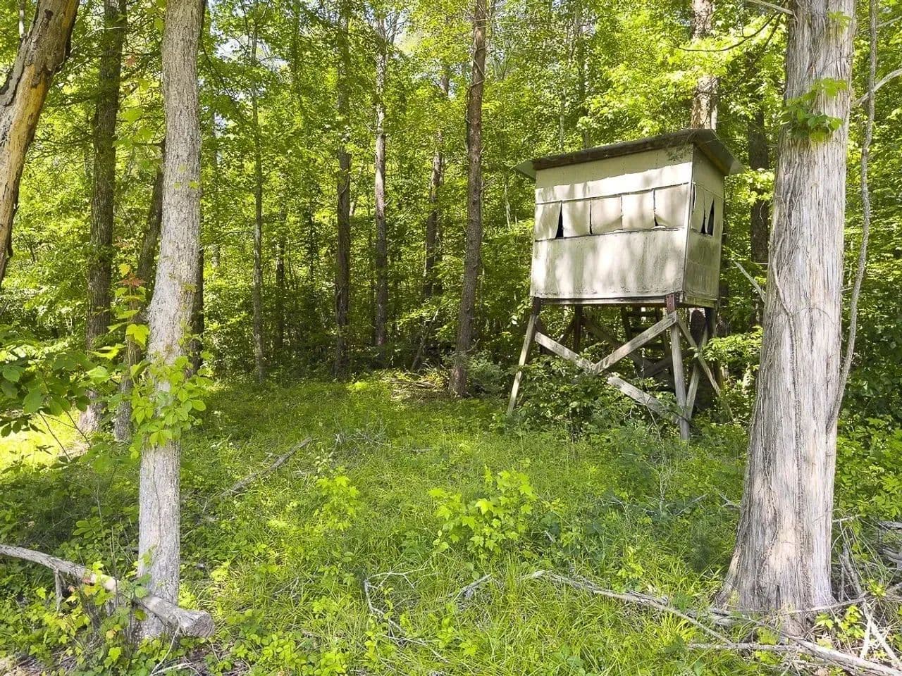 Duck Impoundment: A carefully designed 1.45-acre impoundment attracts wood ducks with planted millet or rice, featuring a wooden riser for water management and a small hide for hunting. A gas-powered trash pump for water management is also included in the sale.
