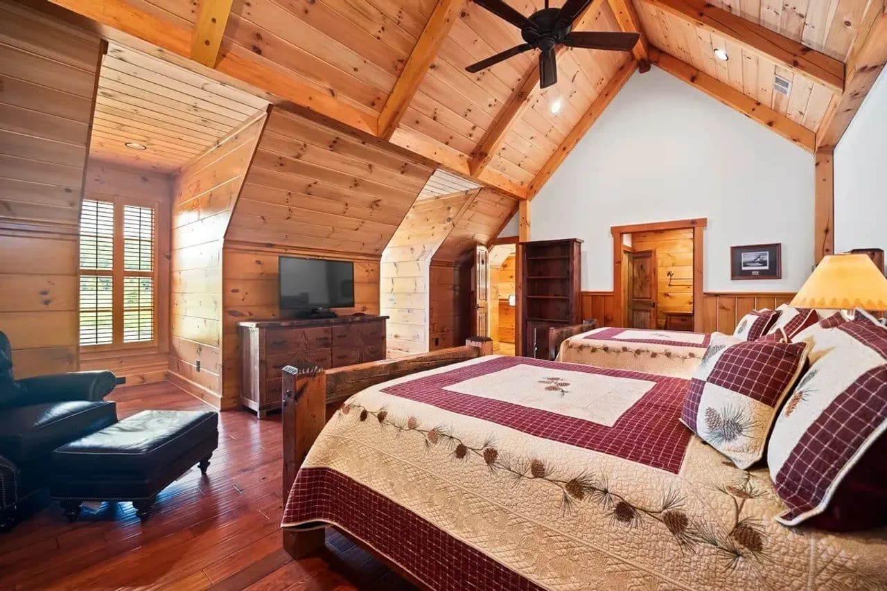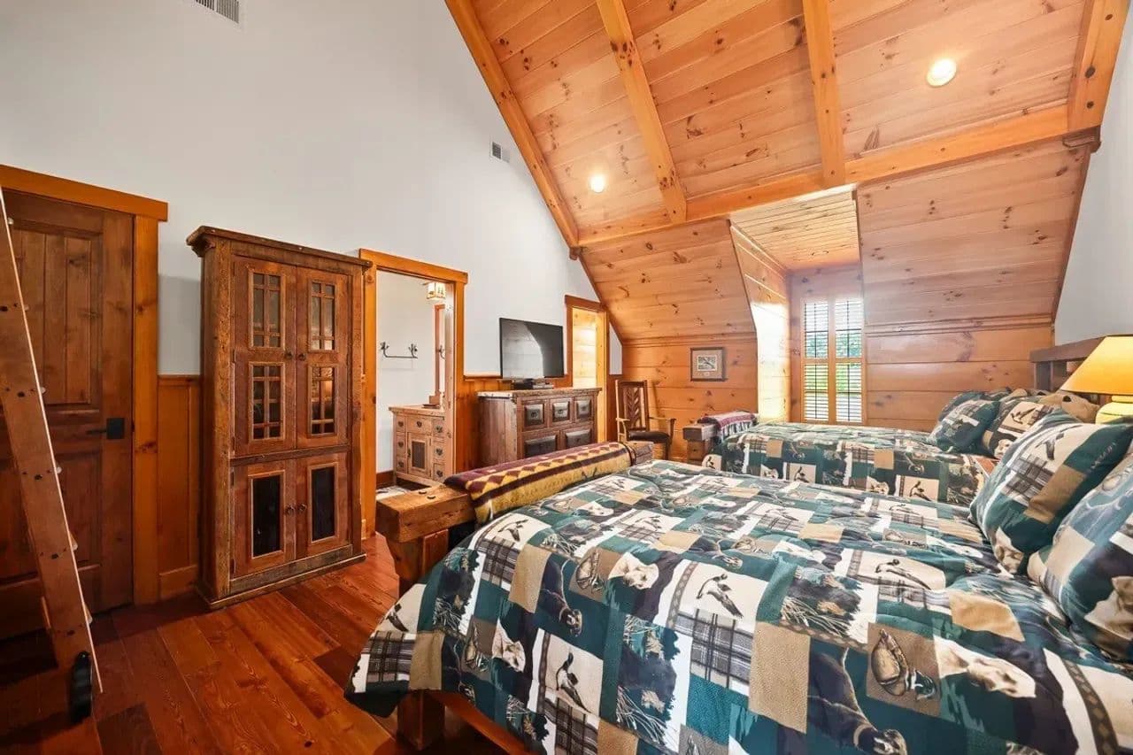 Room for All: The lodge has approximately 4,092-heated square feet and can sleep up to seventeen guests with its owner’s suite on the main floor, three bedrooms upstairs each with twin queen beds, and a bunkroom with multiple single beds and a kitchenette. The bunkroom has been a favorite area for visiting friends and grandchildren. In total, there are six full-baths and one half-bath for guest use.
